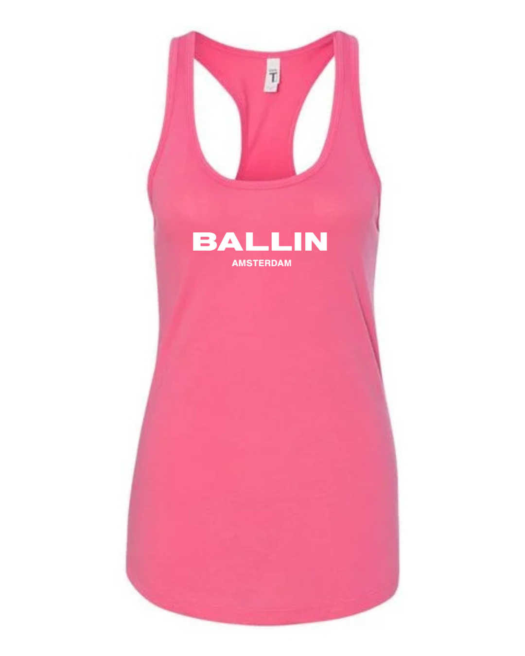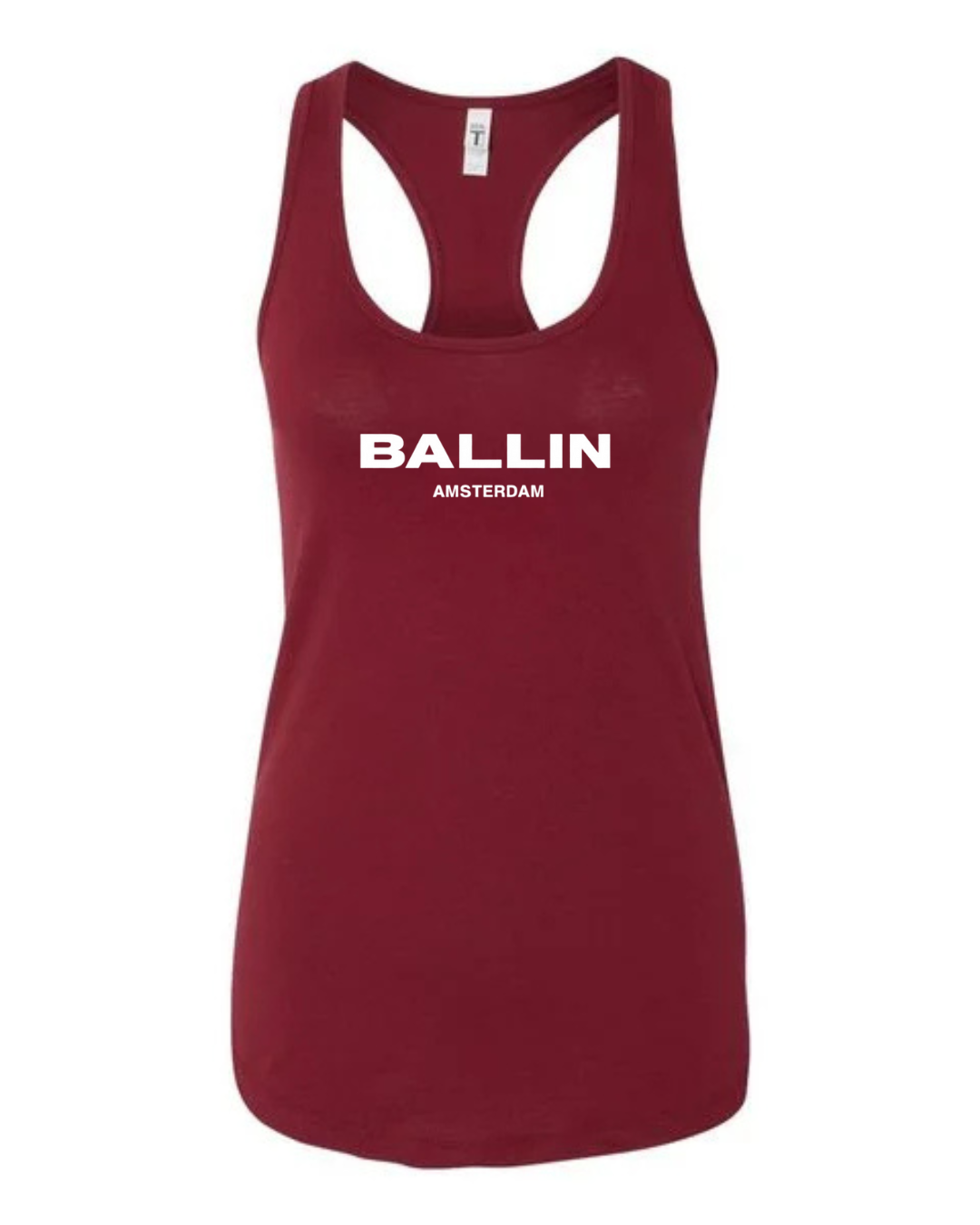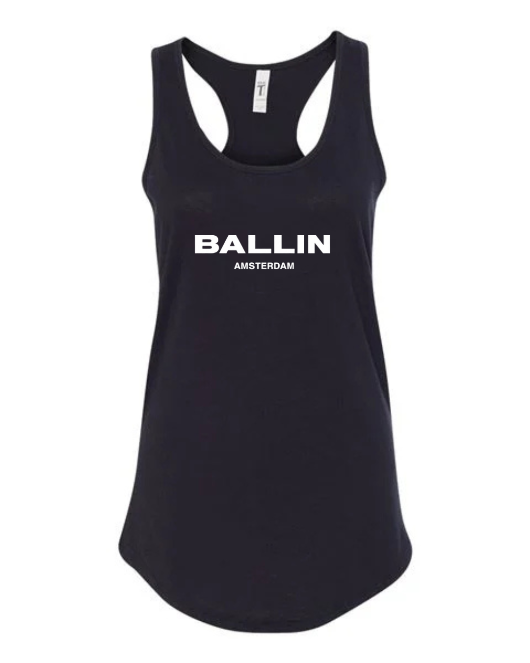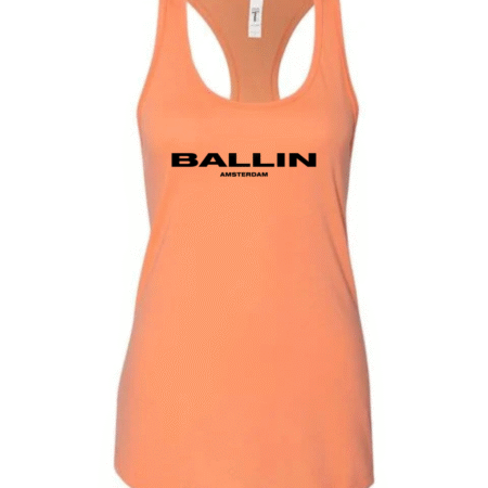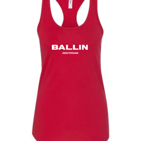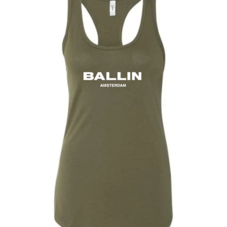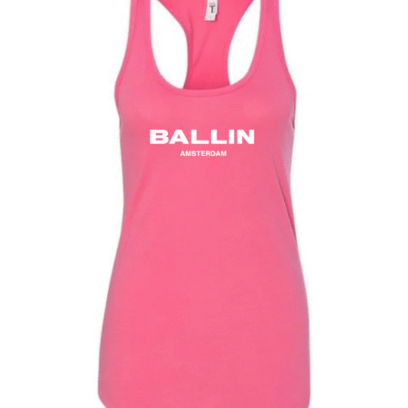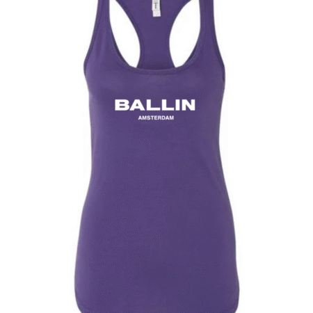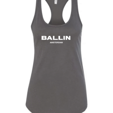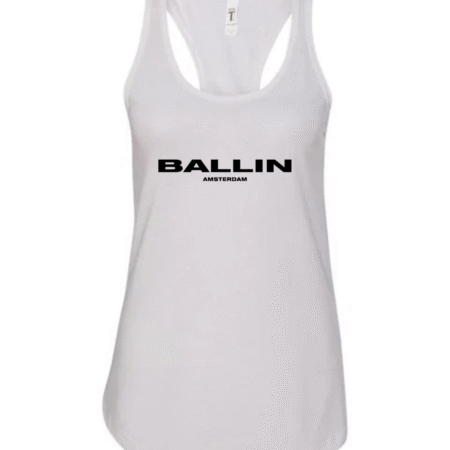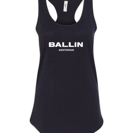 Add bold streetwear style to your wardrobe with this Ballin Amsterdam Logo Women’s Racerback Tank Top. Featuring the strong “BALLIN” wordmark with “AMSTERDAM” printed beneath, this tank delivers a clean, modern, urban-fashion look. The racerback cut provides a flattering athletic fit, while the soft, breathable fabric keeps you comfortable during workouts, casual outings, or everyday wear.
