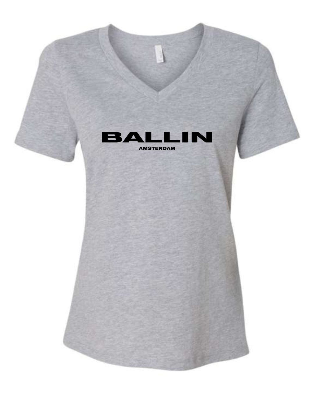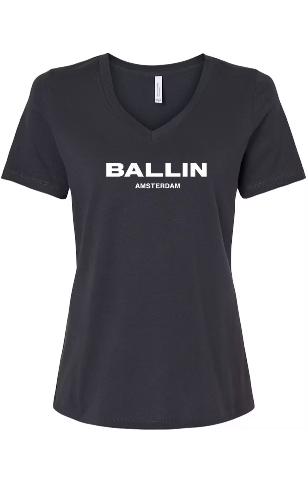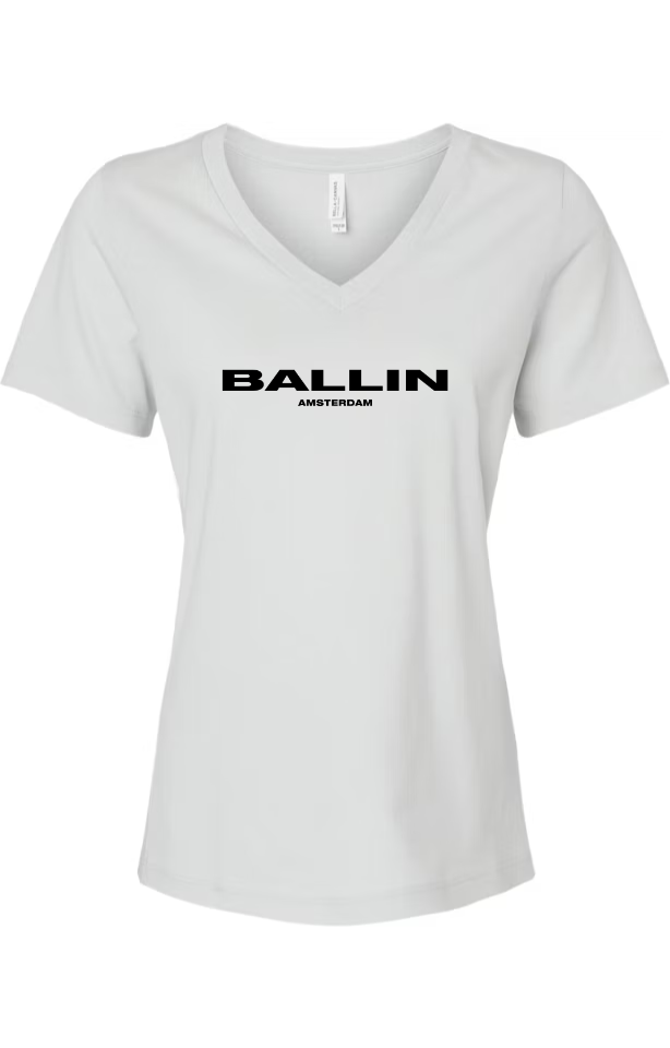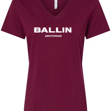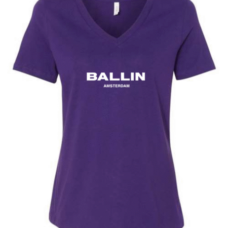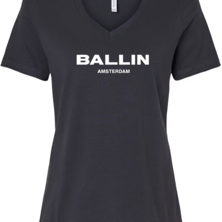 Step up your street style with this Ballin Amsterdam inspired women’s v-neck t-shirt featuring the bold minimalist logo. Perfect for fashion-forward individuals who love sleek, urban-inspired designs.