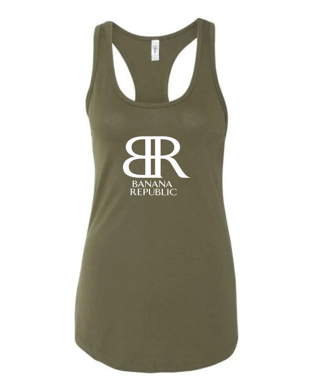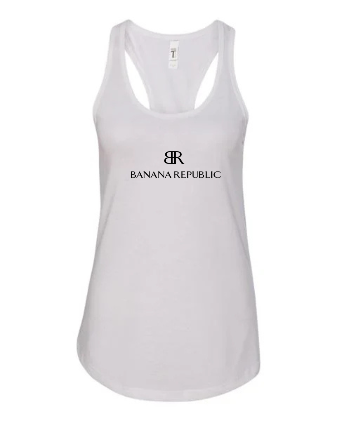Keep your look classy and modern with this Banana Republic BR Logo Women’s Racerback Tank Top. Featuring the elegant BR monogram paired with the “Banana Republic” wordmark printed on the chest, this tank delivers a clean, stylish, and timeless fashion aesthetic. The racerback cut provides a flattering athletic silhouette, while the soft, breathable fabric ensures all-day comfort — perfect for casual wear, workouts, or pairing with your favorite everyday outfits.