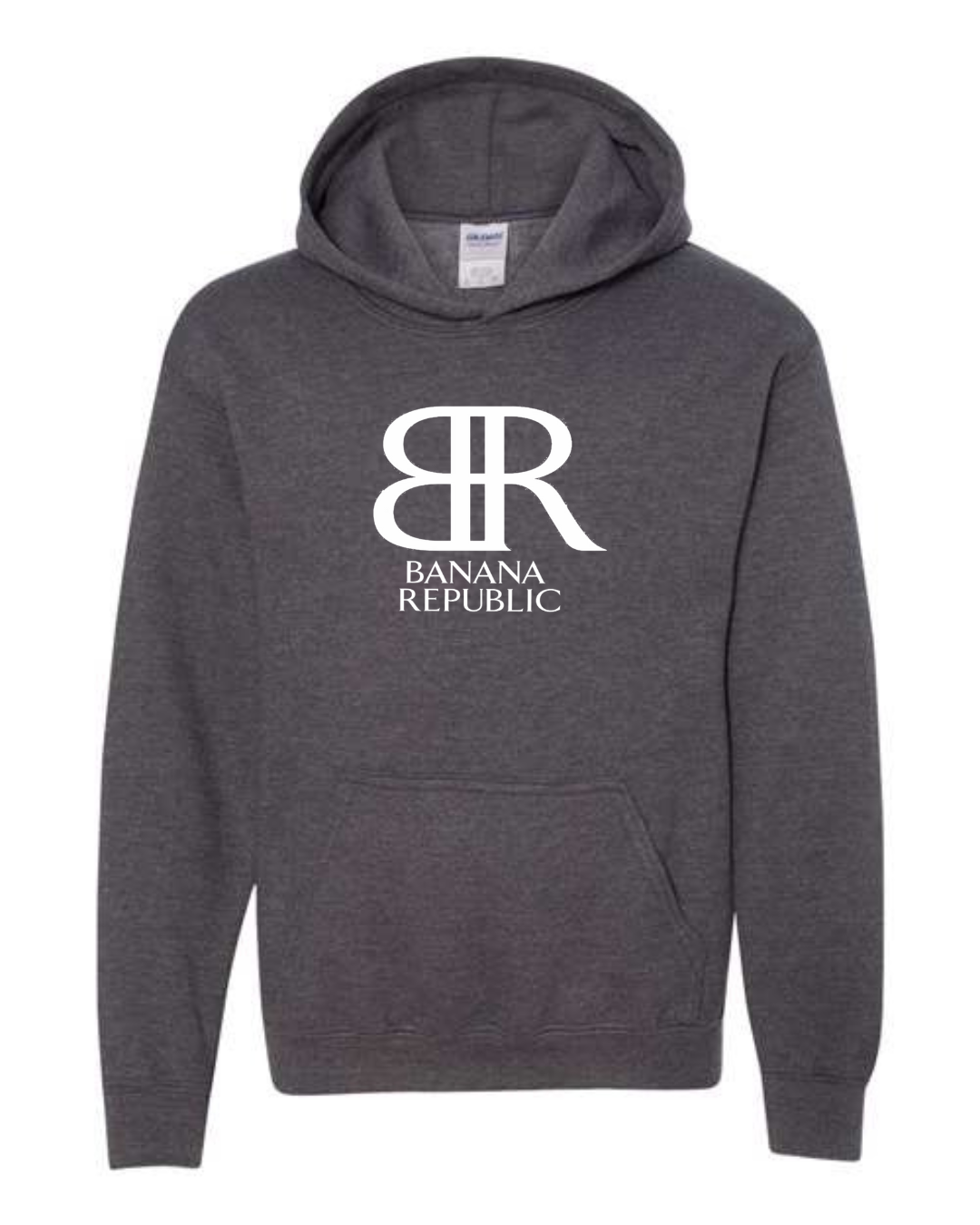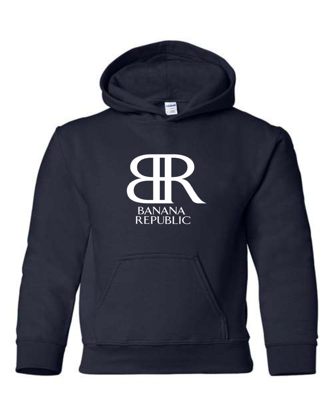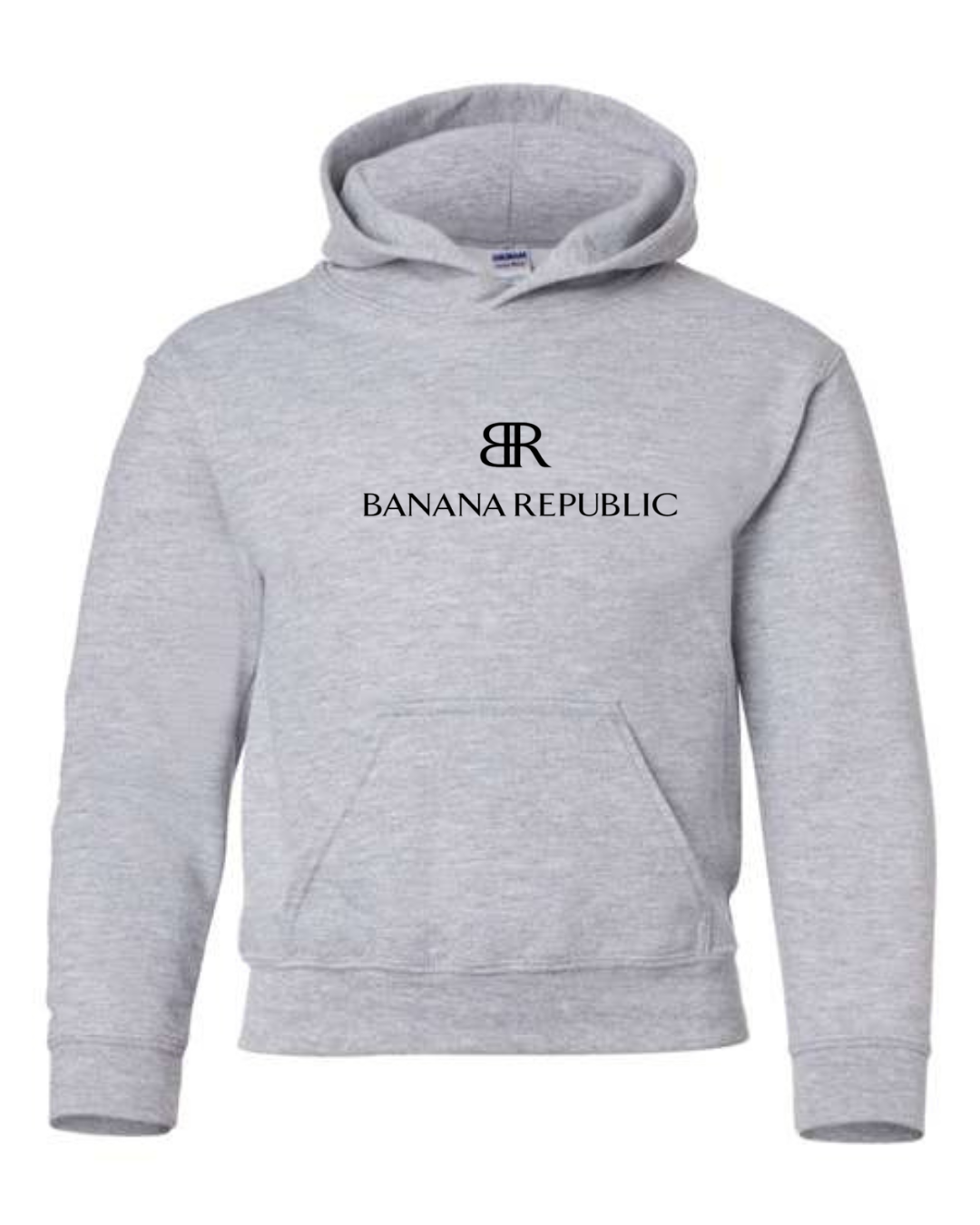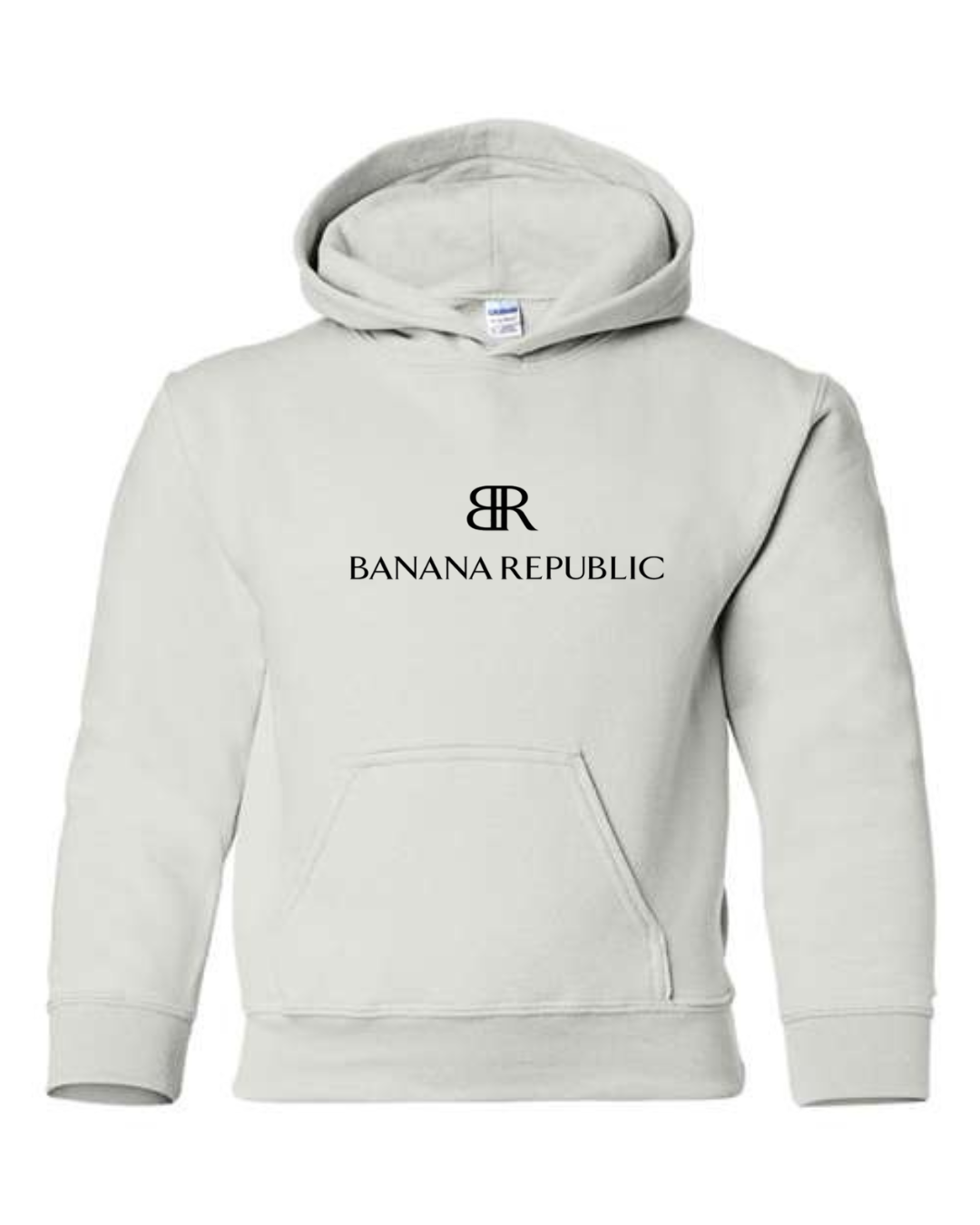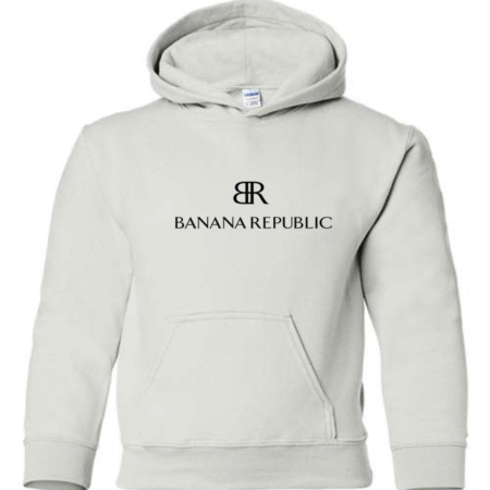 Modern, stylish, and clean—the Banana Republic BR Logo Youth Hoodie features the signature intertwined “BR” monogram with the Banana Republic name beneath it. Perfect for kids who love simple, upscale fashion vibes, this hoodie provides cozy comfort for school, casual outings, or everyday wear.