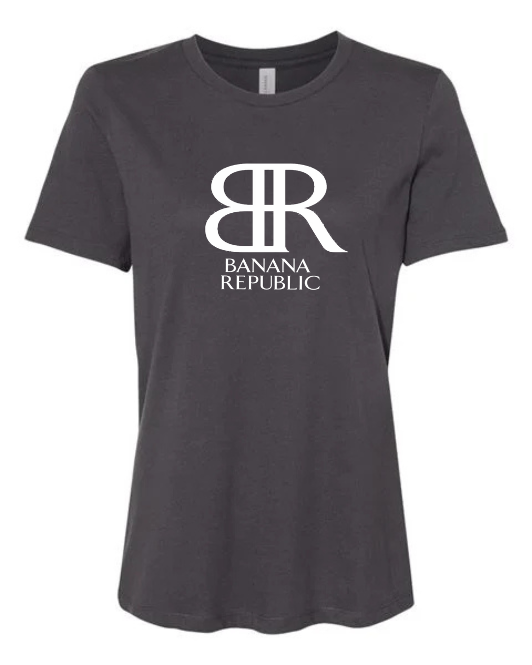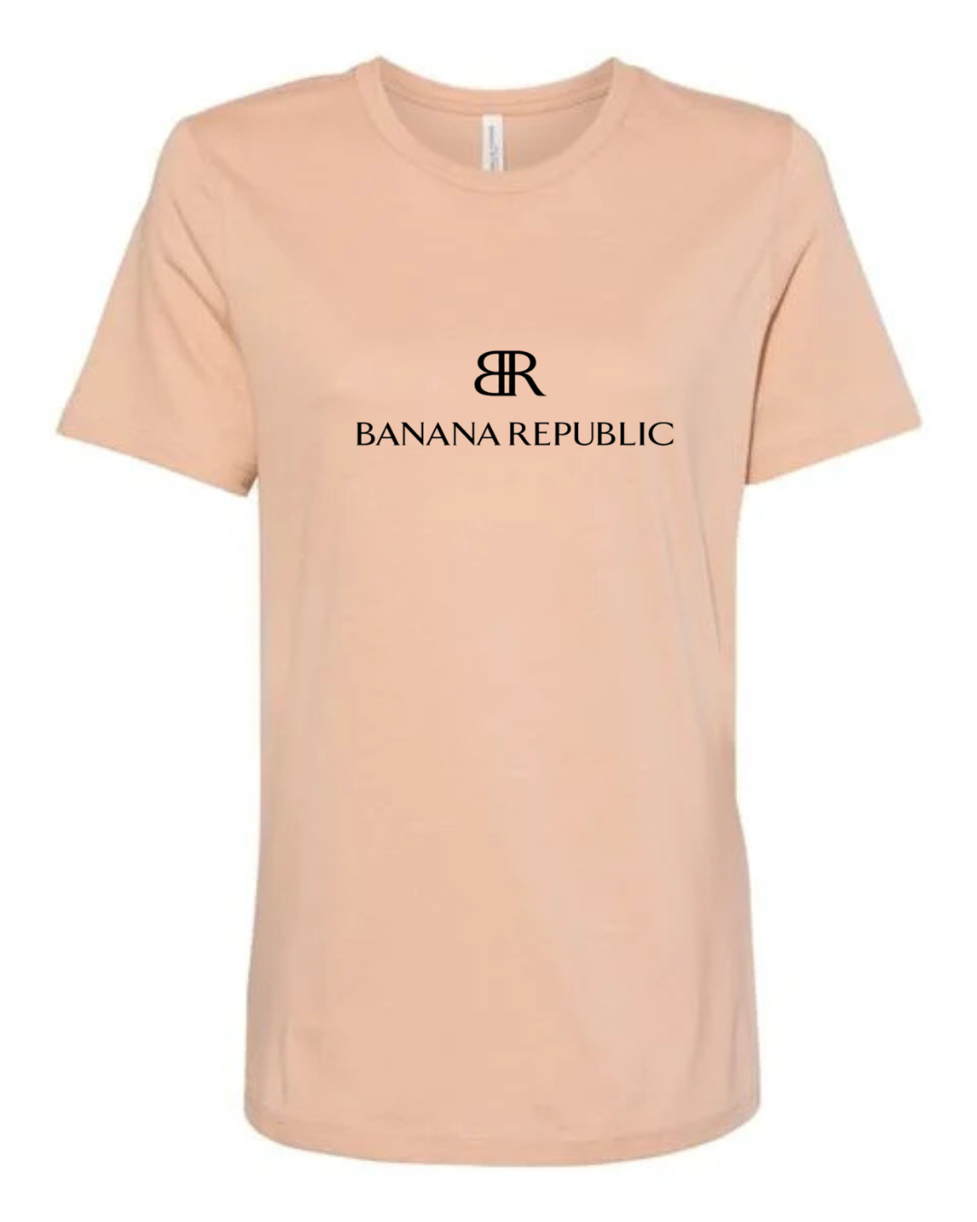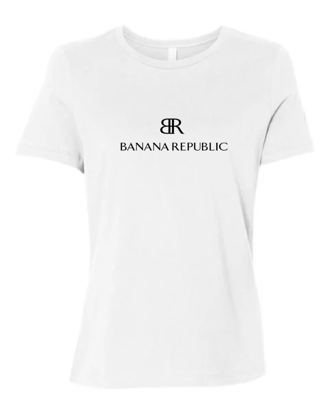 Step into timeless sophistication with this Bella+Canvas women’s t-shirt featuring the iconic Banana Republic monogram logo. Designed for everyday elegance, this tee blends minimalist fashion with premium comfort—perfect for fans of classic American style.