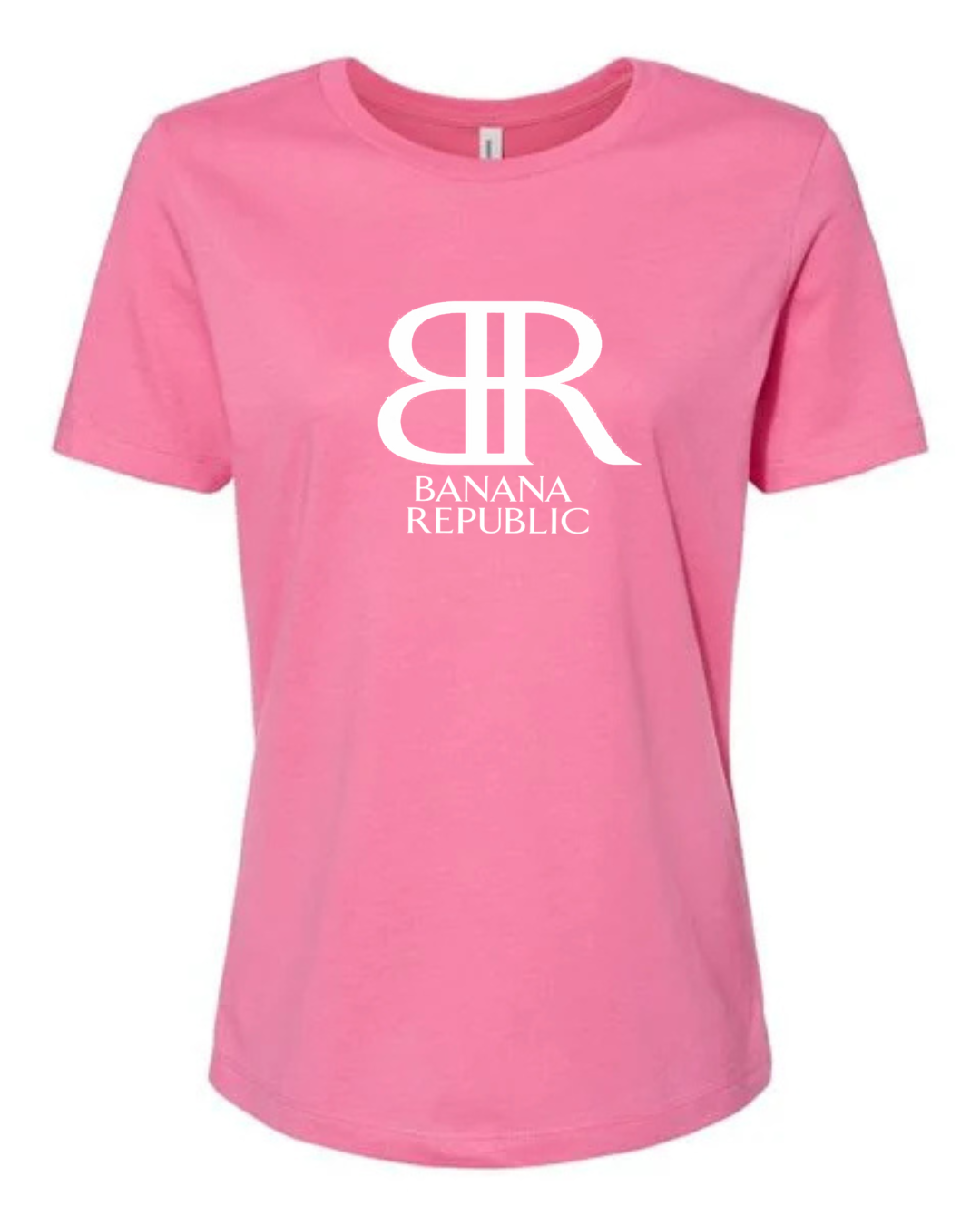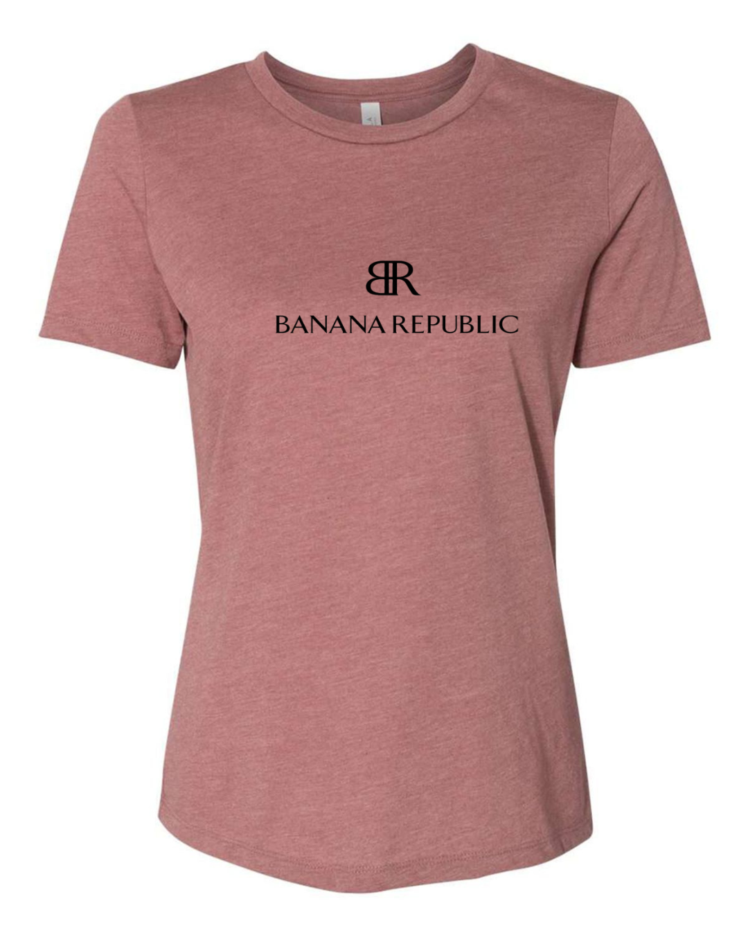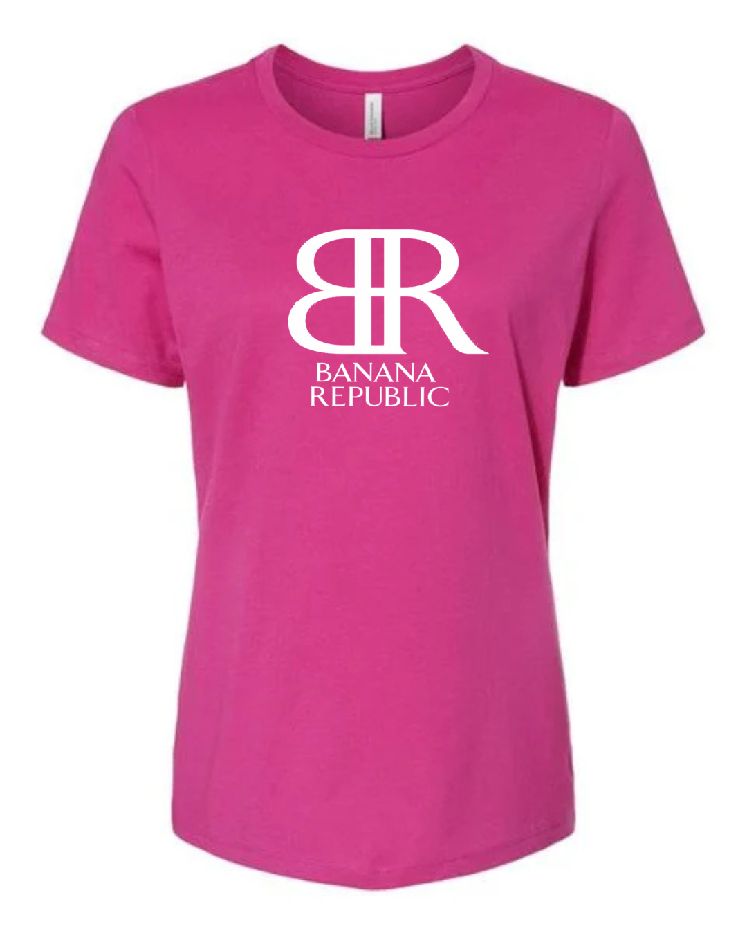 Step into timeless sophistication with this Bella+Canvas women’s t-shirt featuring the iconic Banana Republic monogram logo. Designed for everyday elegance, this tee blends minimalist fashion with premium comfort—perfect for fans of classic American style.