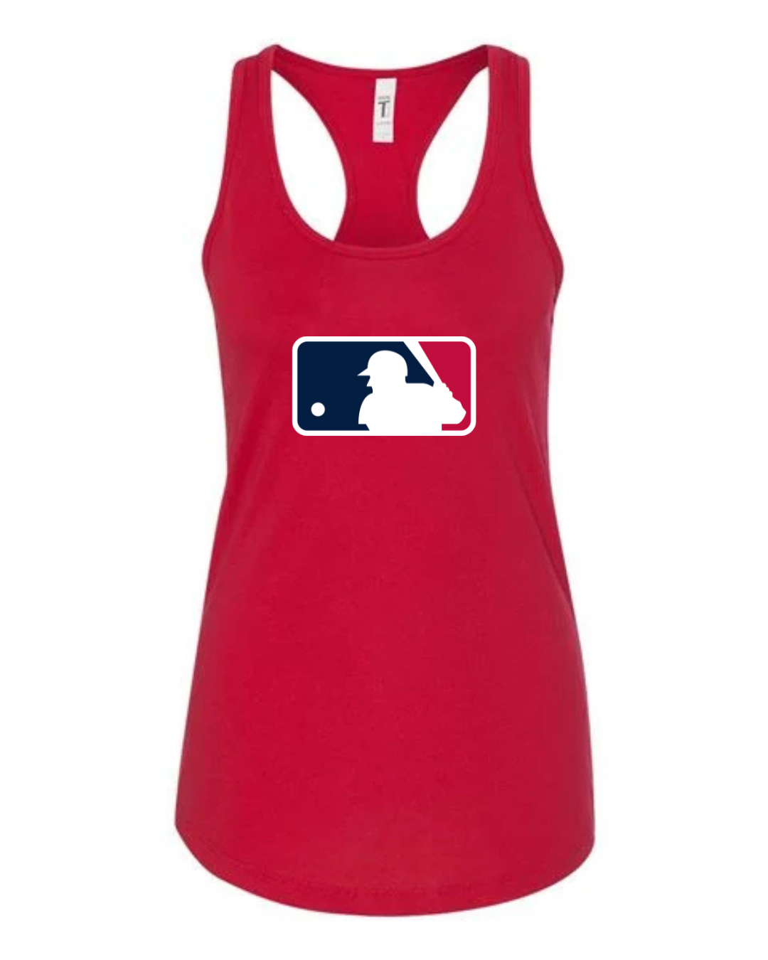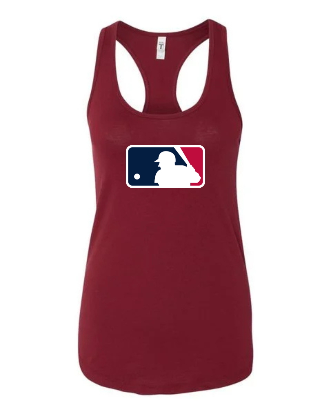 Hit a home run in style with this Baseball League Logo Women’s Racerback Tank Top. Featuring a classic red, white, and blue batter silhouette printed on the chest, this tank delivers a sporty, timeless look perfect for baseball fans and athletes alike. The racerback design provides a flattering fit and full range of motion, while the soft, breathable fabric ensures comfort for workouts, games, or casual everyday wear.