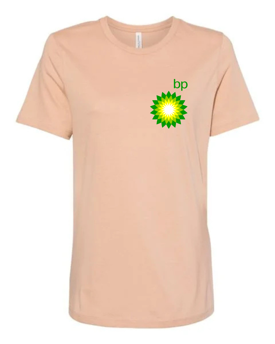 Embrace a bold, clean energy look with this Bella+Canvas women’s t-shirt featuring the recognizable BP (British Petroleum) logo. With its soft fabric and modern fit, this tee is perfect for eco-minded individuals, brand lovers, or those who appreciate iconic logos in streetwear fashion.