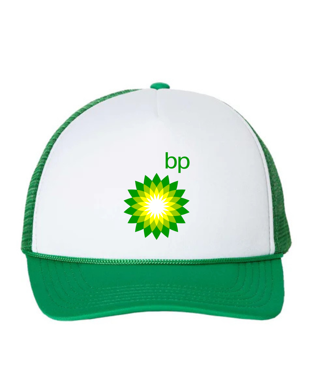 Show your appreciation for classic fuel-brand style with our BP Logo Trucker Cap. Featuring the recognizable green and yellow BP emblem on the structured front panel, this cap brings a clean, bold, and modern look to any outfit. With its breathable mesh back and adjustable snap closure, it offers all-day comfort — perfect for collectors, gas-station brand fans, road-trip lovers, or anyone who enjoys iconic energy-brand designs.