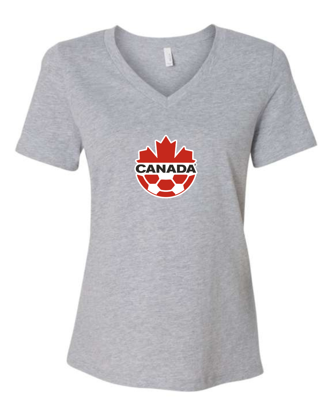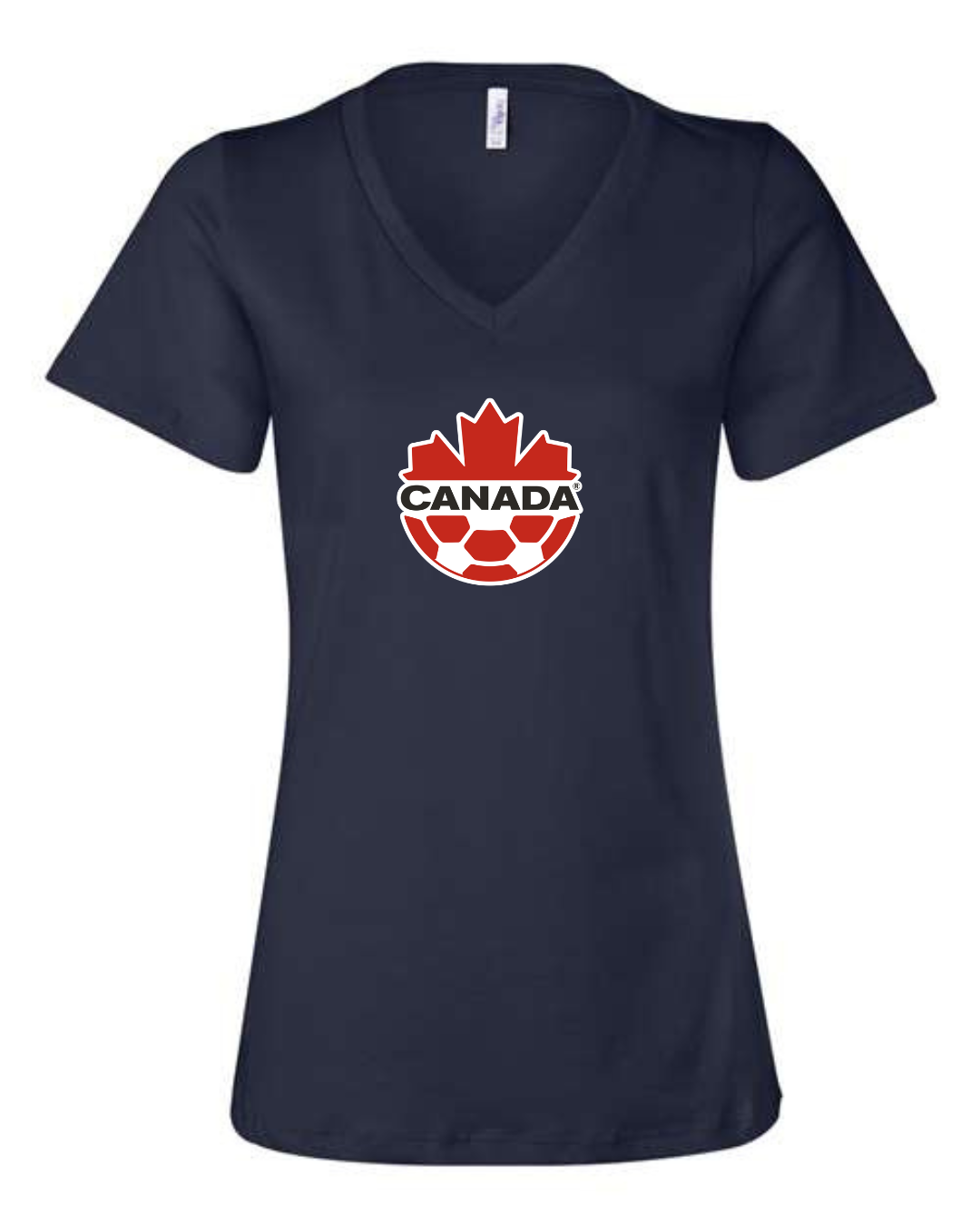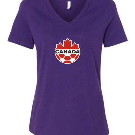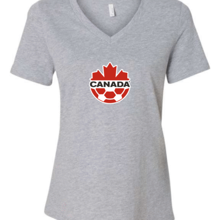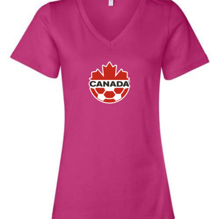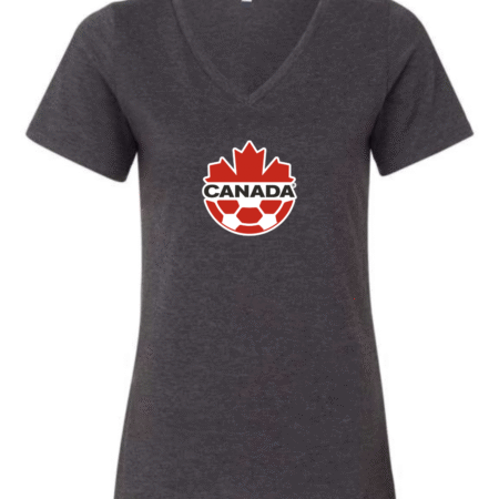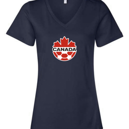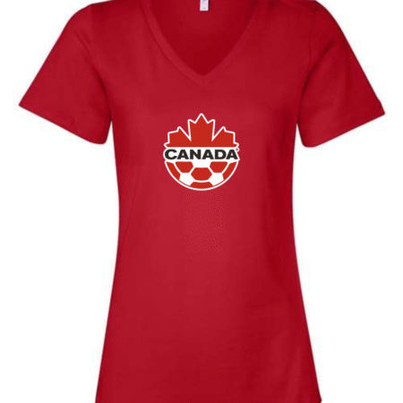 Canada Soccer Women’s V-Neck T-Shirt Maple Leaf Football Crest Fan Tee