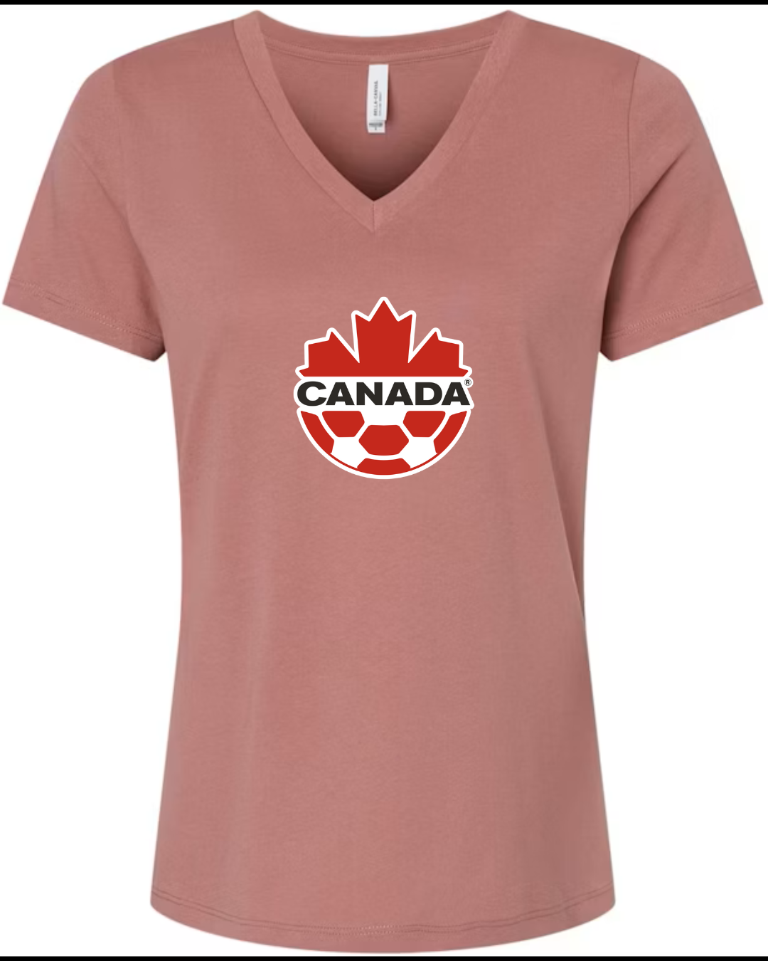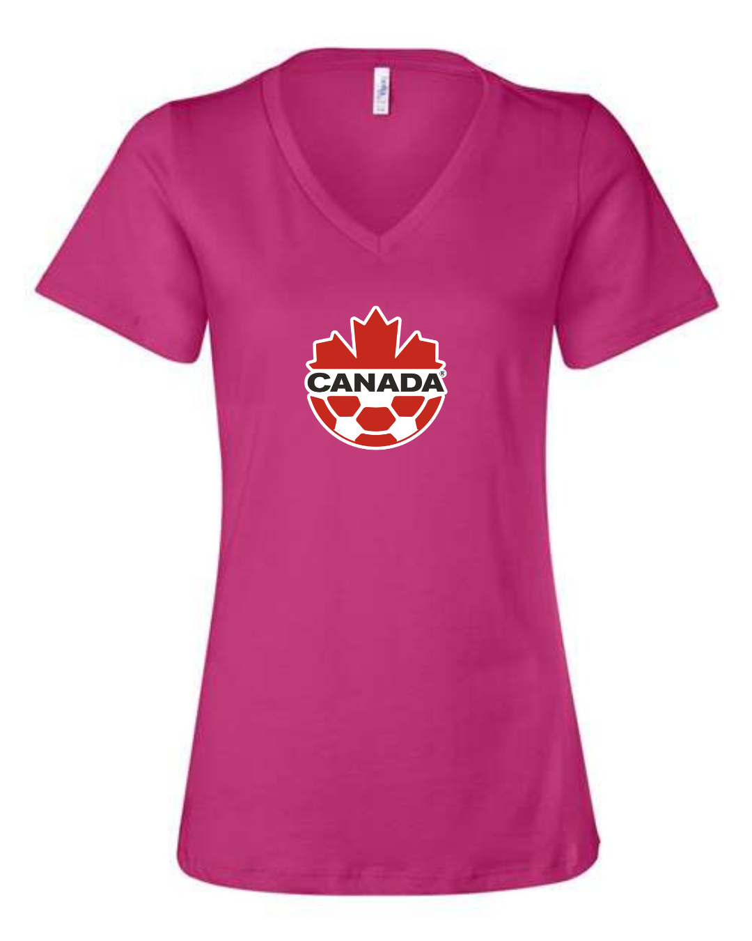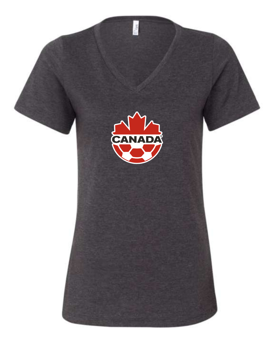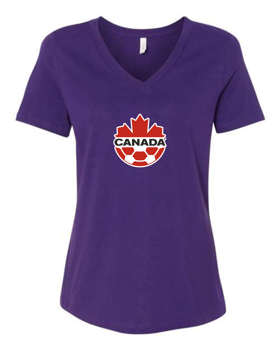 Canada Soccer Women’s V-Neck T-Shirt Maple Leaf Football Crest Fan Tee