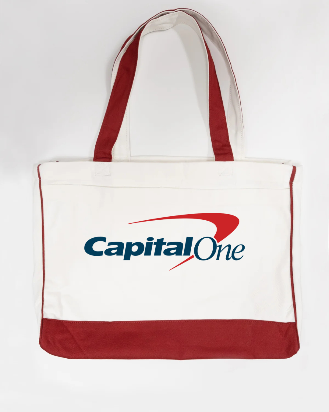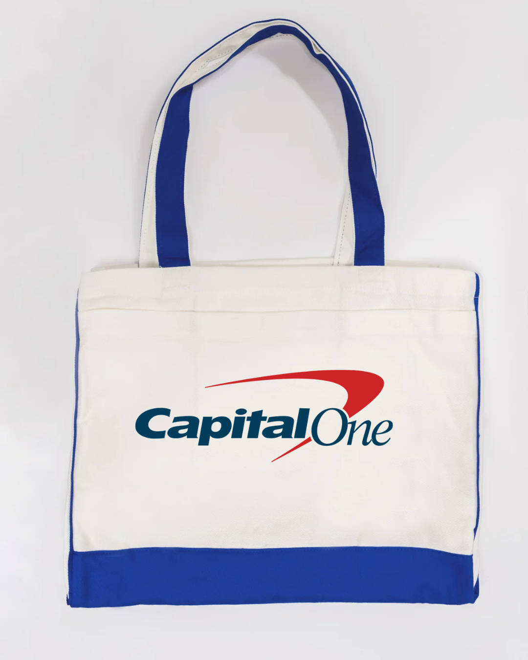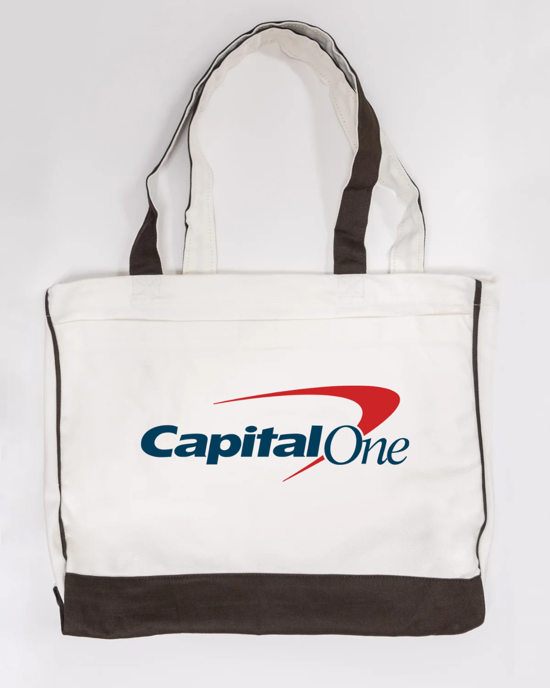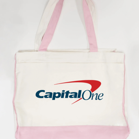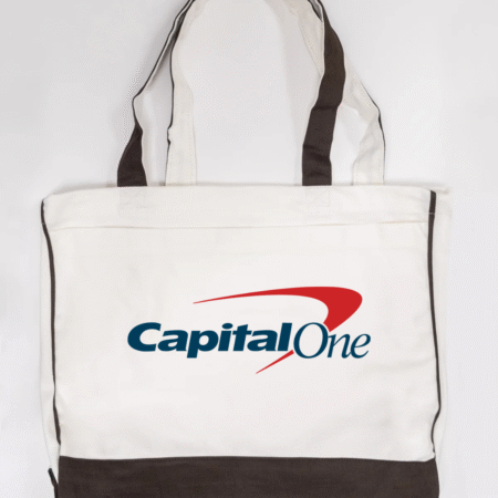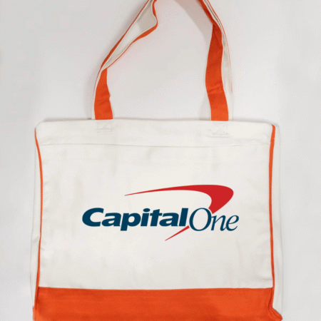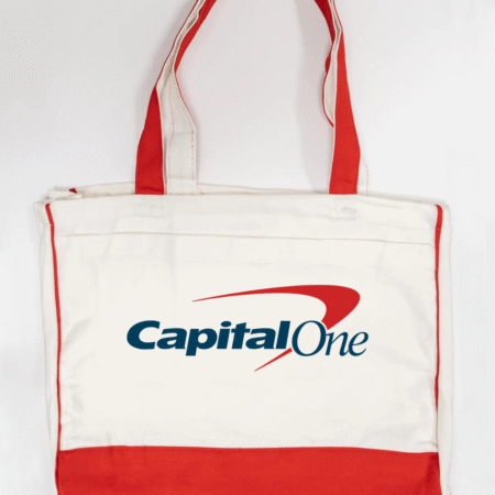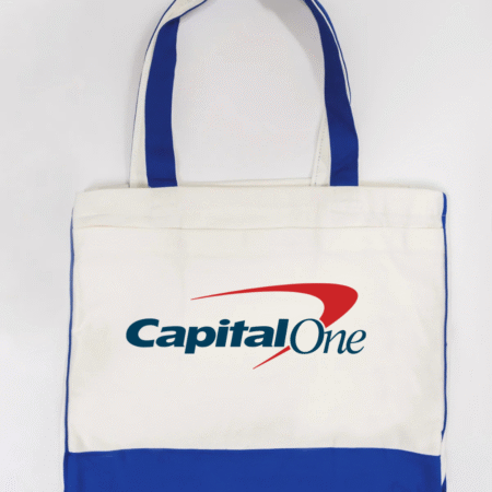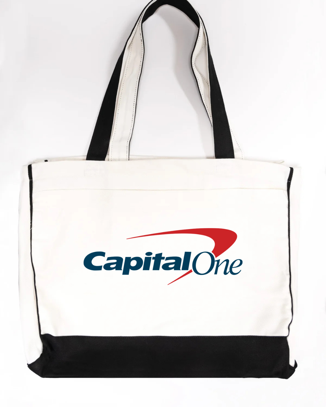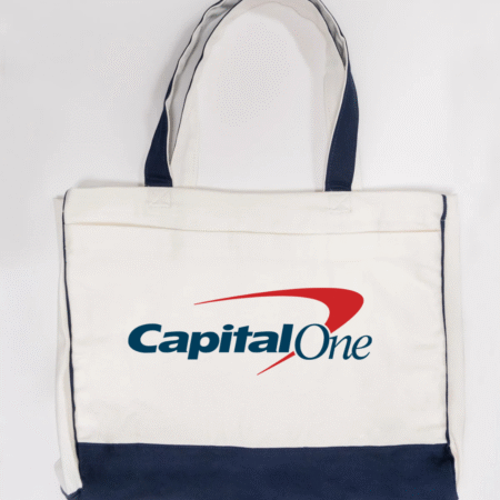 Carry your essentials with a polished, corporate-inspired look using our Capital One Logo Trimmed Tote Bag. Featuring the well-known Capital One–style logo, this tote blends business-friendly style with everyday practicality. Made from durable canvas fabric and accented with sleek black trimming, it offers a roomy interior perfect for work, errands, travel, or daily essentials. Lightweight, sturdy, and refined—this tote is ideal for anyone who appreciates clean branding and reliable design.