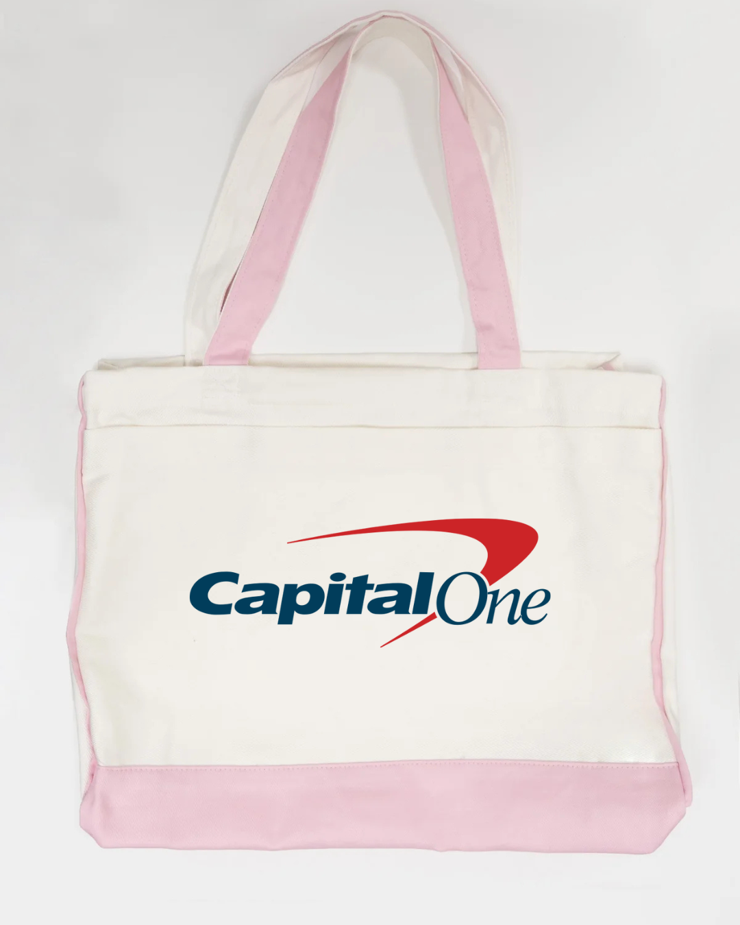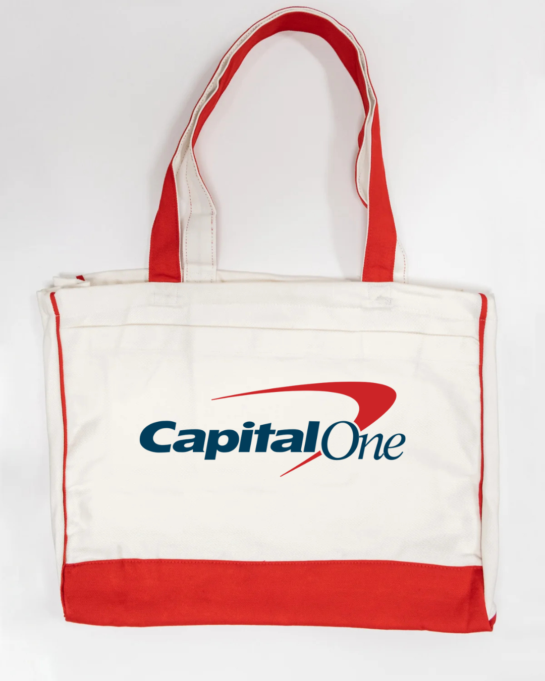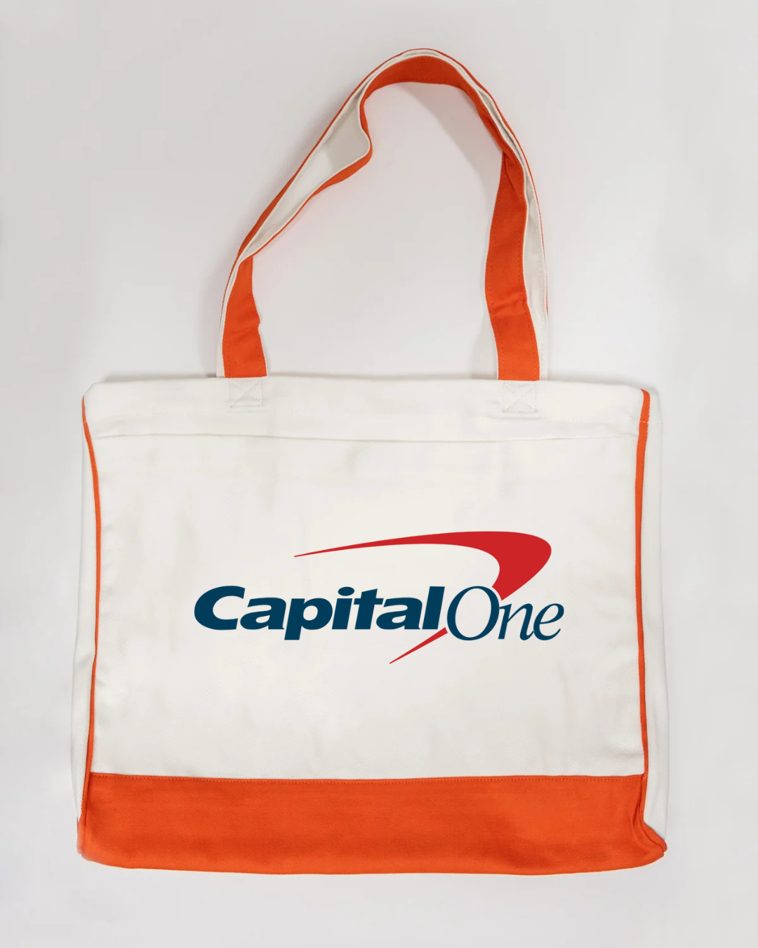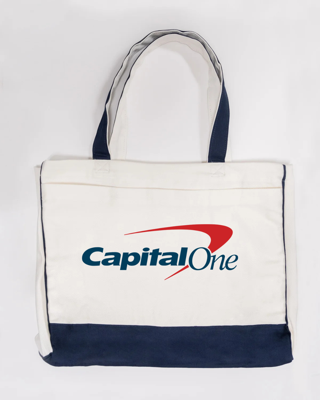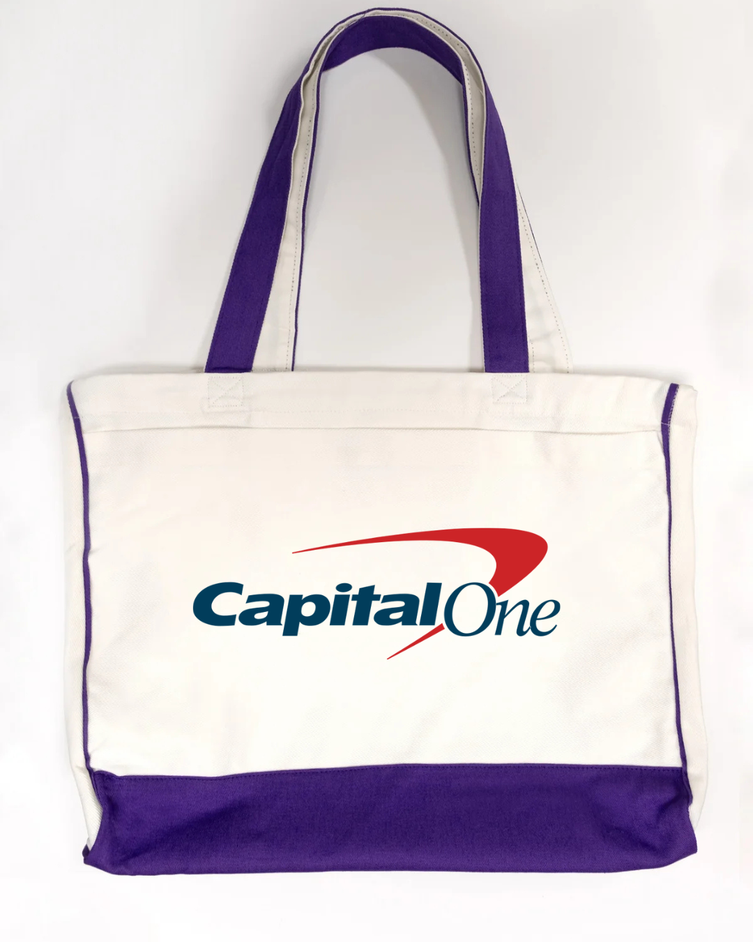 Carry your essentials with a polished, corporate-inspired look using our Capital One Logo Trimmed Tote Bag. Featuring the well-known Capital One–style logo, this tote blends business-friendly style with everyday practicality. Made from durable canvas fabric and accented with sleek black trimming, it offers a roomy interior perfect for work, errands, travel, or daily essentials. Lightweight, sturdy, and refined—this tote is ideal for anyone who appreciates clean branding and reliable design.