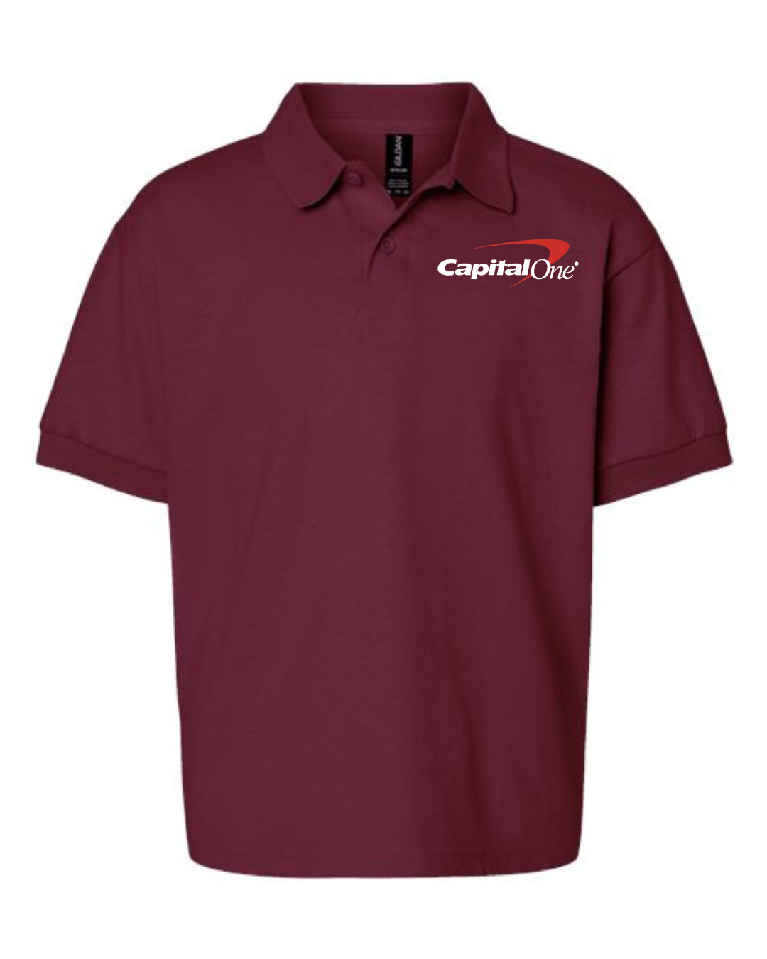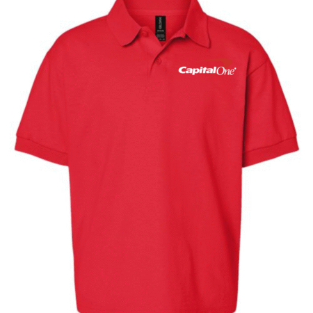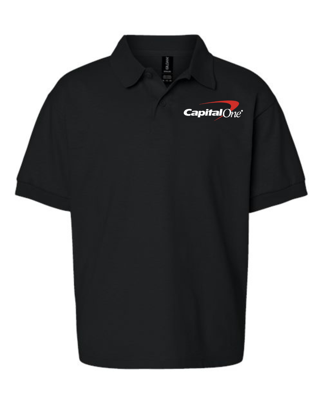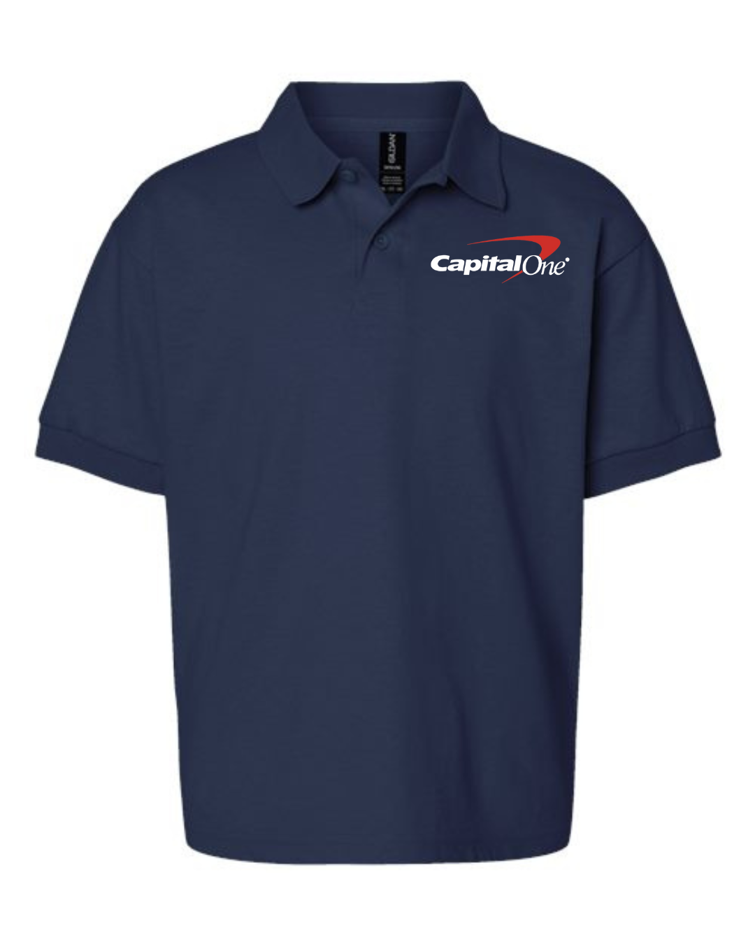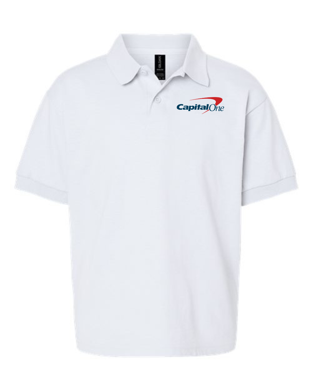 Keep it smart and stylish with our Capital One Logo Youth Polo Shirt. Featuring the sleek Capital One logo with its signature red swoosh, this polo combines a professional look with everyday comfort. Perfect for young fans of the brand or those who appreciate clean, corporate-inspired fashion. Great for school, casual wear, or events. Available in sizes XS to XL.