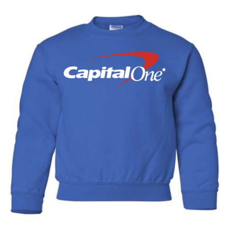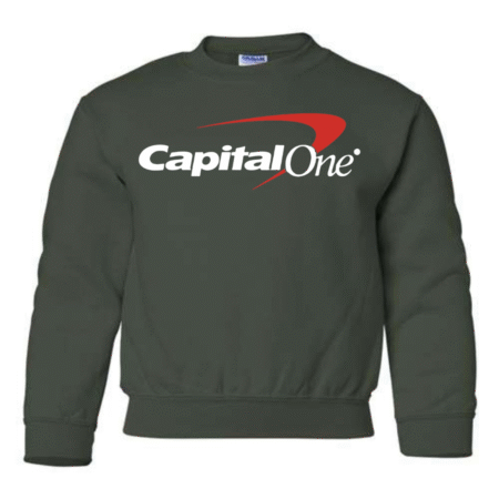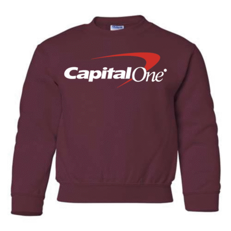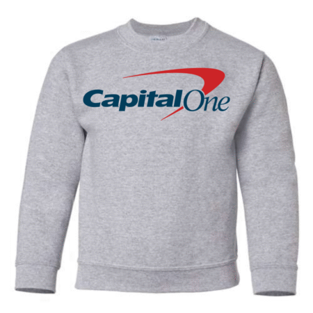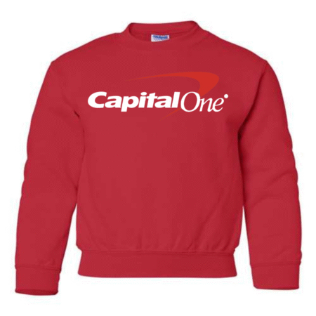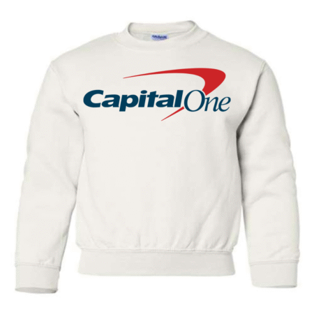 Keep their style smart and modern with the Capital One Logo Youth Sweatshirt. Featuring the bold white text and signature red swoosh, this pullover delivers a clean, professional-inspired look while staying cozy and comfortable. Perfect for school, casual wear, or lounging at home, it’s a great pick for kids who enjoy simple, standout designs. Available in youth sizes XS to XL.