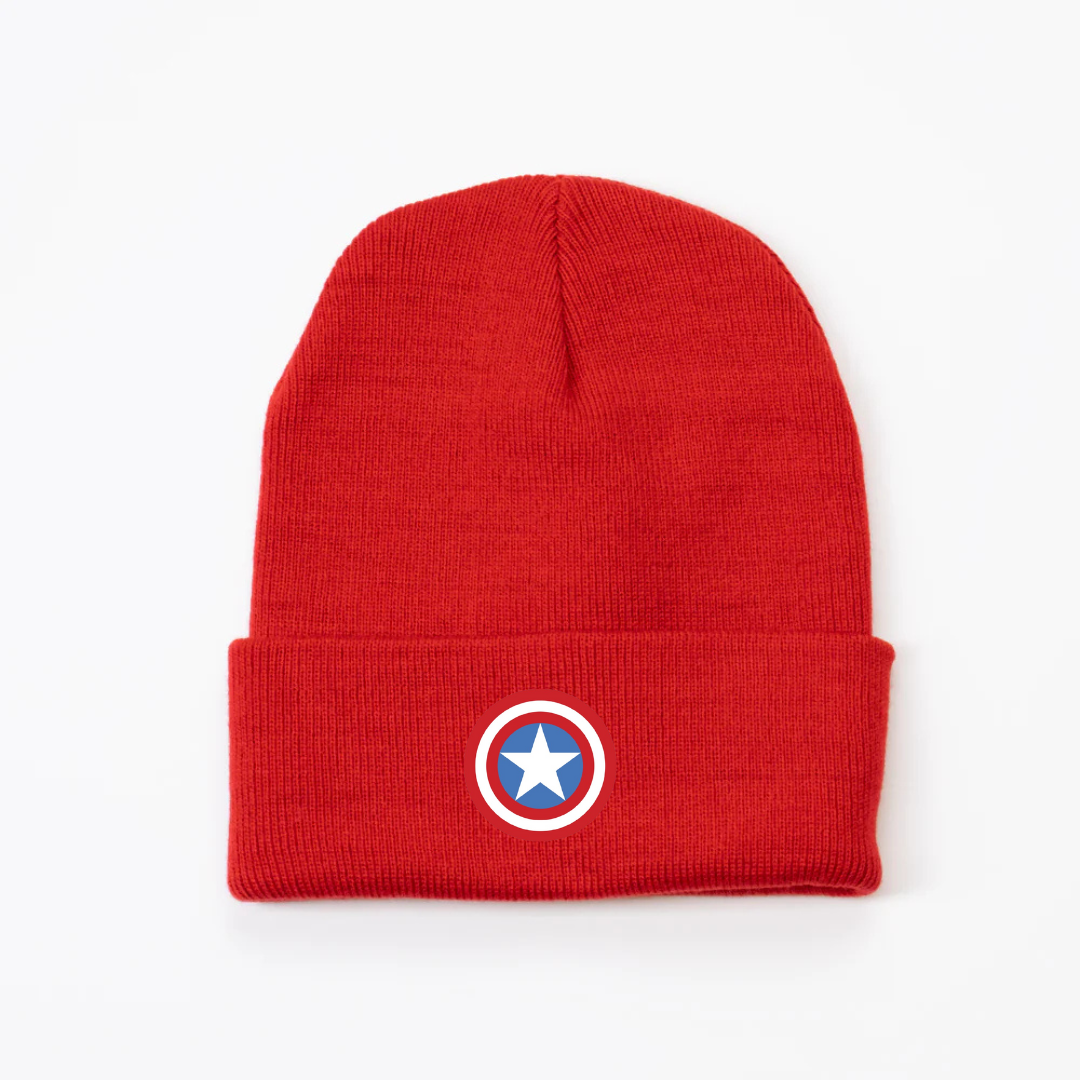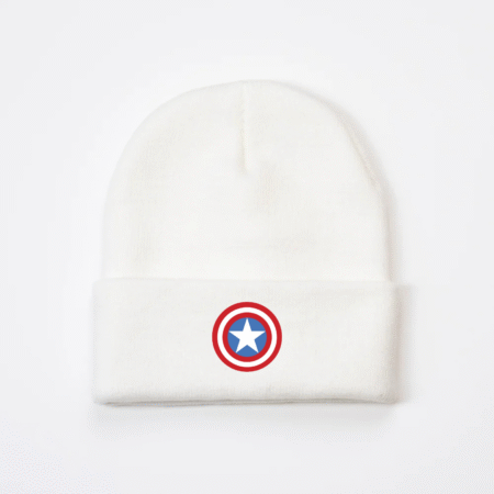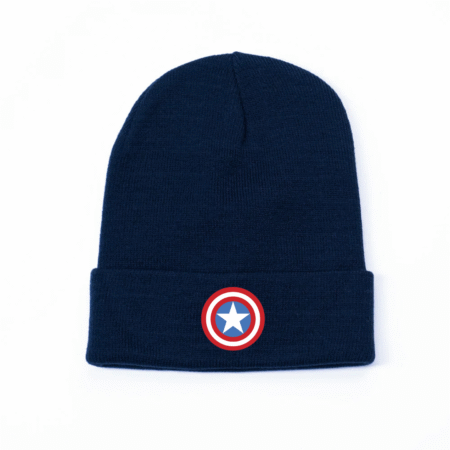 Gear up like a true hero with our Captain America Shield Logo Knit Beanie. Featuring the classic star shield emblem embroidered on the fold-over cuff, this beanie is the perfect mix of style, comfort, and fandom. Made from soft knit fabric, it keeps you warm while letting you proudly rep one of Marvel’s most iconic heroes. Great for casual wear, winter outings, or gifting to a fellow superhero fan.