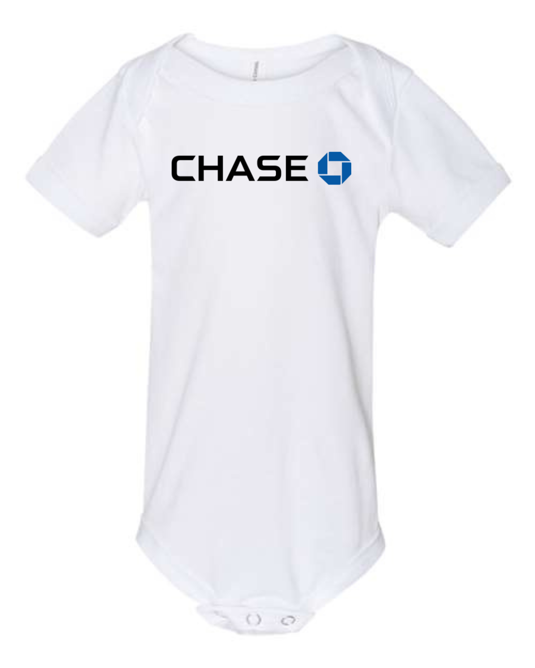 Start building financial style early with our Chase Bank Logo Infant Bodysuit. Featuring the trusted Chase logo front and center, this adorable one-piece is perfect for families in finance or loyal customers of the iconic bank. Soft, breathable, and designed for comfort, it’s a playful nod to big dreams and bright futures. Sizes range from 3M to 24M.
