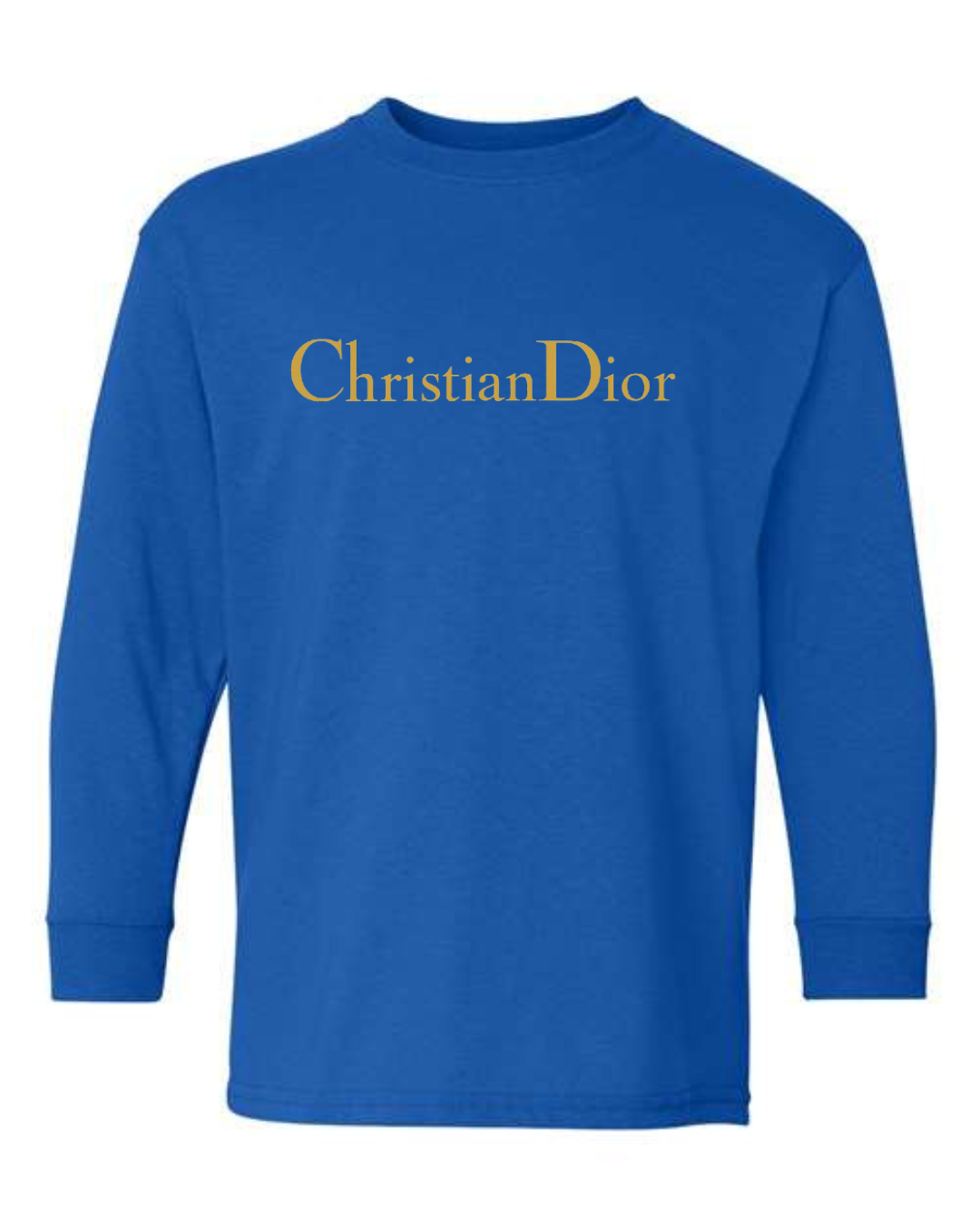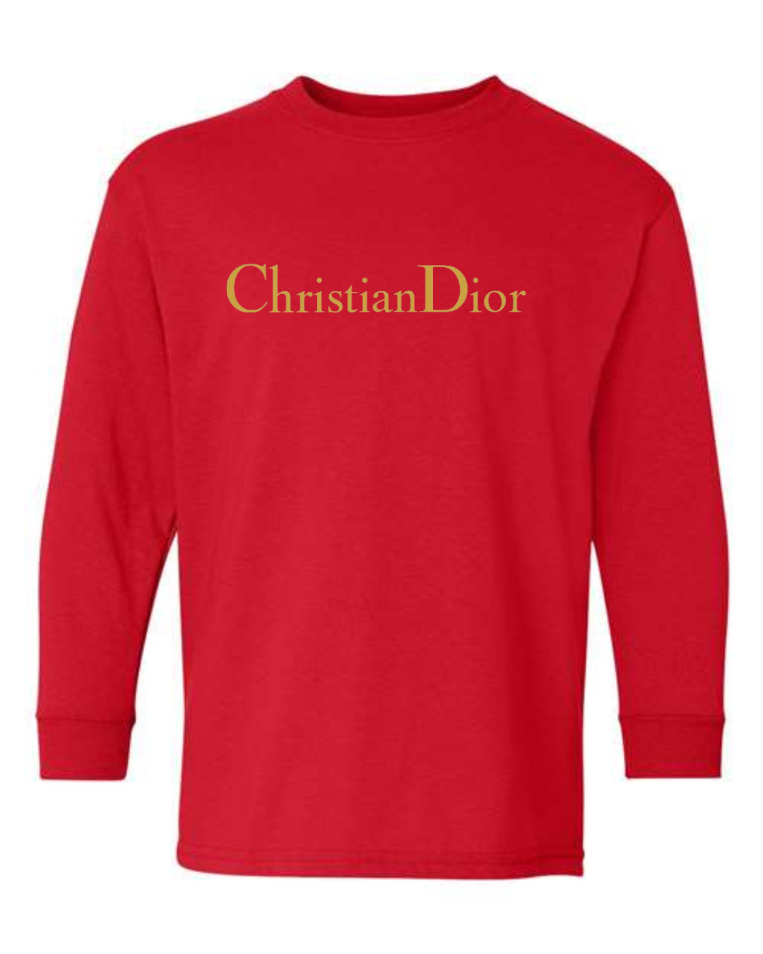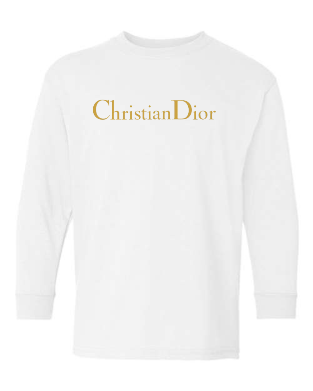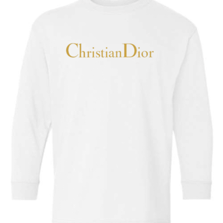 Give their wardrobe a touch of luxury with this Christian Dior Logo Youth Long Sleeve T-Shirt. Featuring the elegant gold Christian Dior wordmark, this tee blends simplicity with high-end fashion flair. Made from a soft cotton-blend fabric and finished with ribbed cuffs, it delivers comfort, durability, and a stylish upscale look perfect for school, outings, or everyday wear.