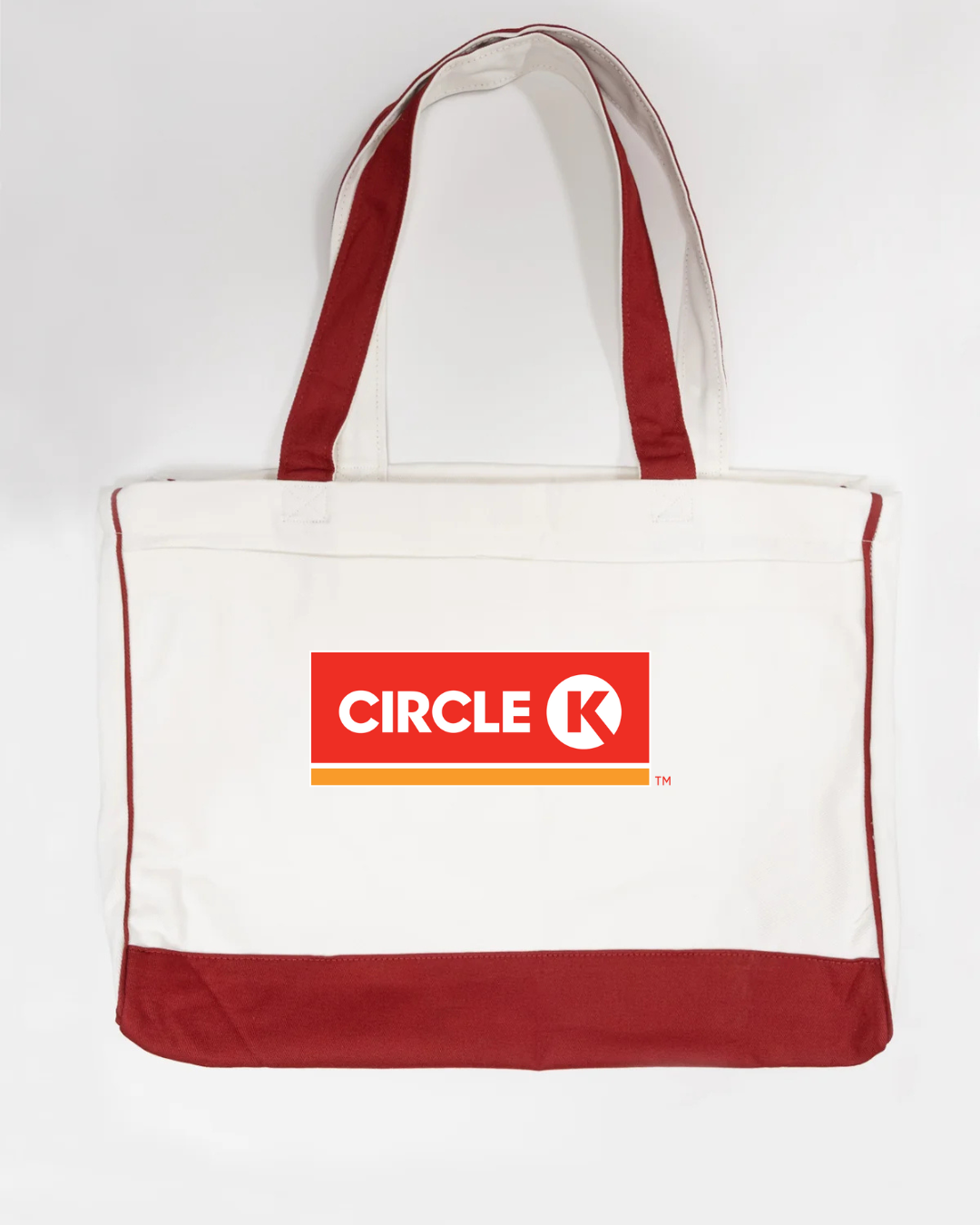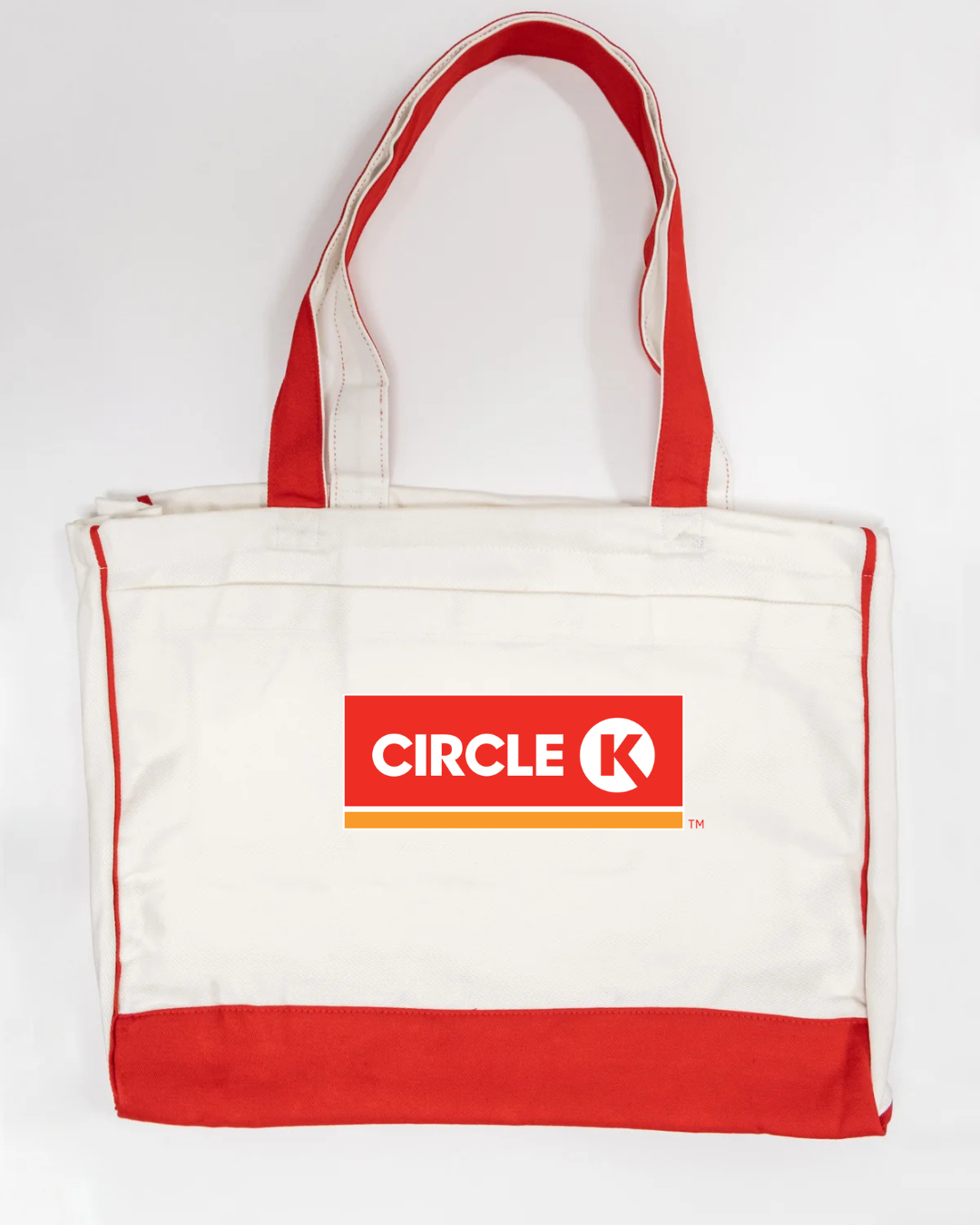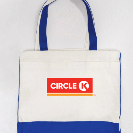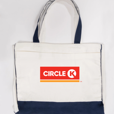 Carry everyday essentials with classic convenience-store style using our Circle K Logo Trimmed Tote Bag. Featuring the bold and recognizable Circle K logo, this tote blends simple branding with practical functionality. Made from durable canvas fabric and accented with sleek black trimming, it offers a spacious interior ideal for errands, work, school, travel, or daily use. Lightweight, sturdy, and eye-catching—perfect for anyone who appreciates iconic, clean branding.