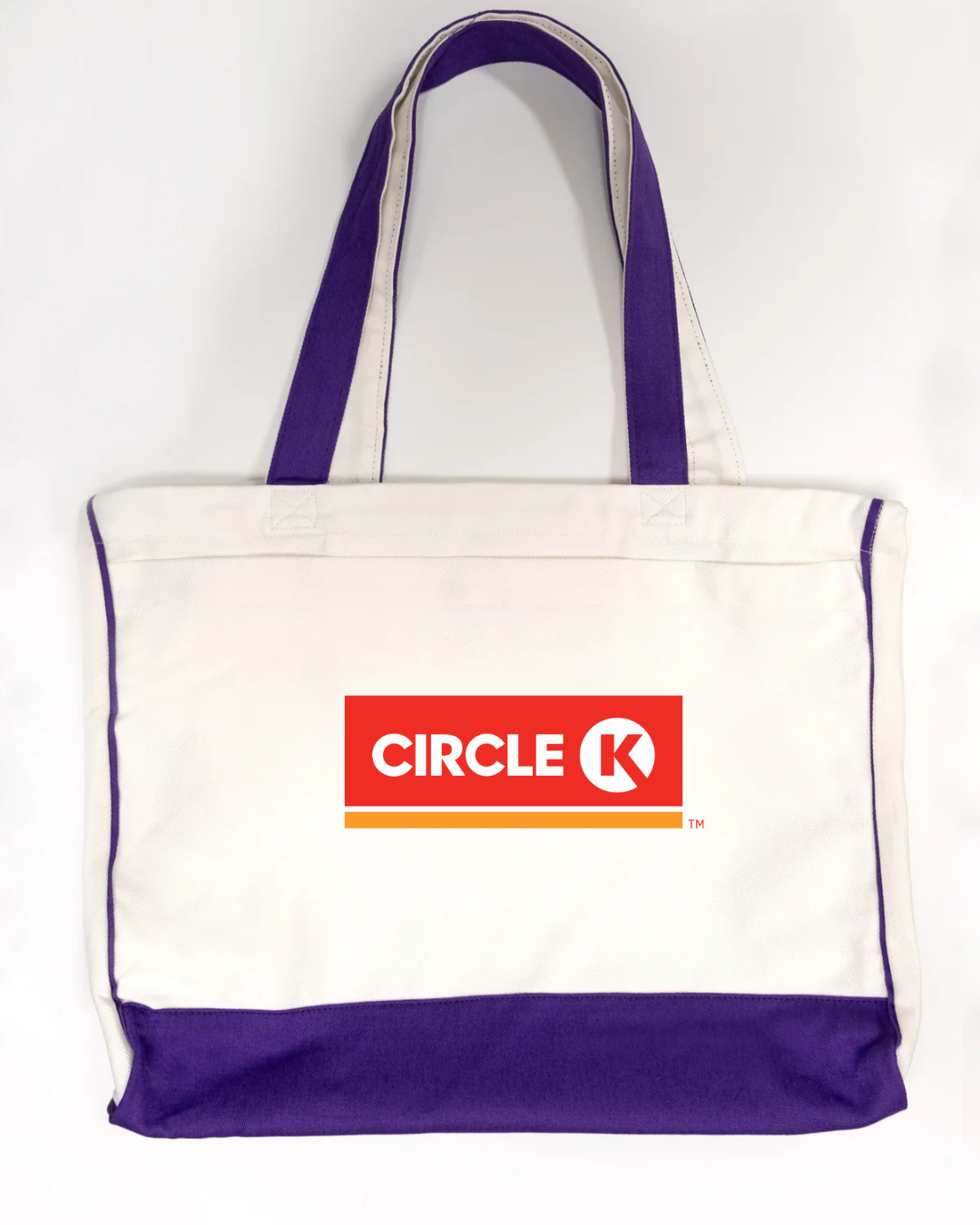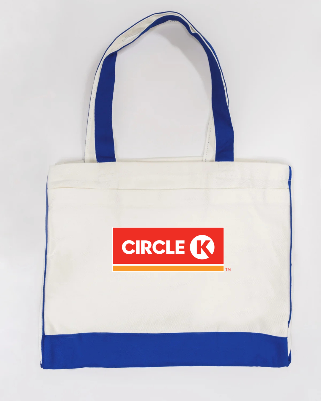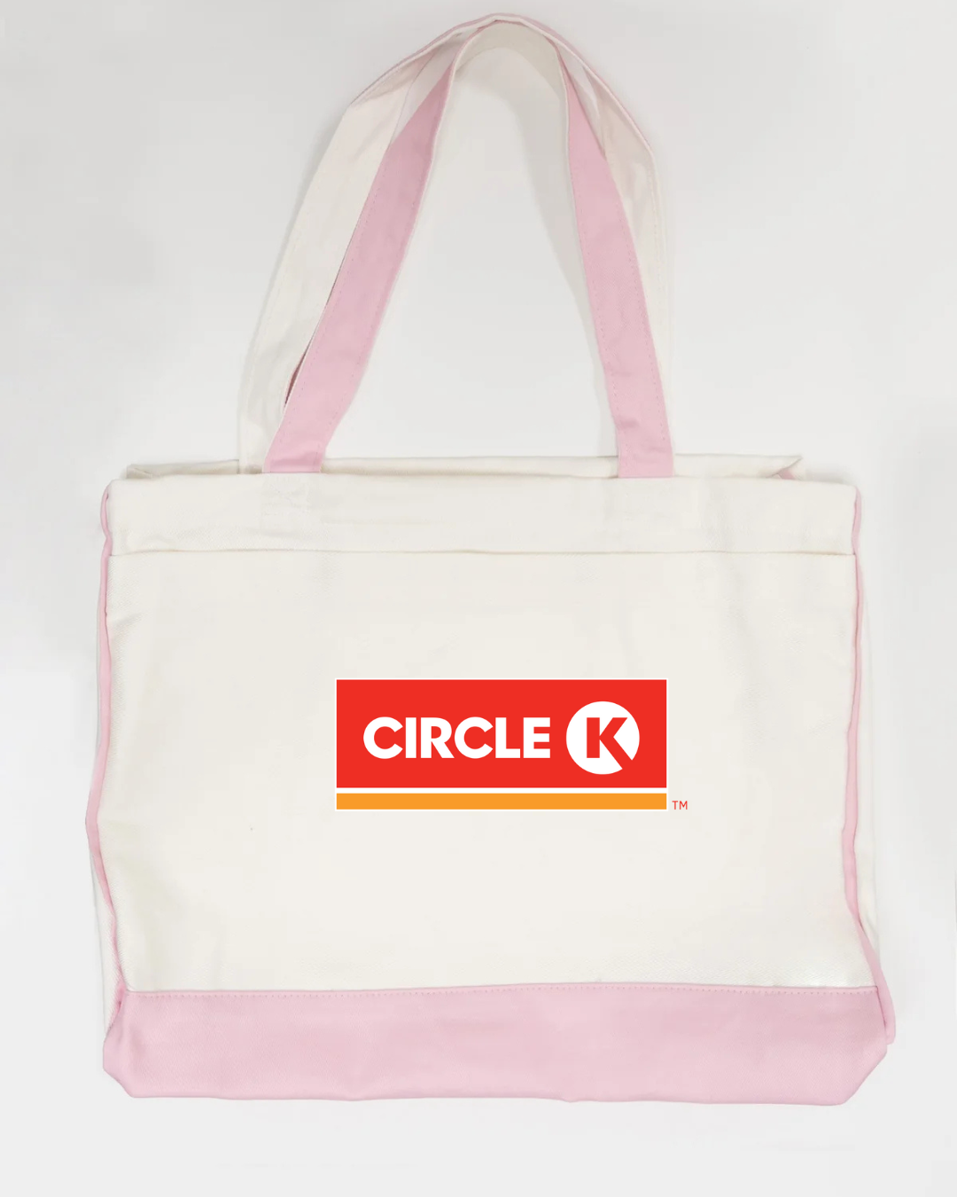 Carry everyday essentials with classic convenience-store style using our Circle K Logo Trimmed Tote Bag. Featuring the bold and recognizable Circle K logo, this tote blends simple branding with practical functionality. Made from durable canvas fabric and accented with sleek black trimming, it offers a spacious interior ideal for errands, work, school, travel, or daily use. Lightweight, sturdy, and eye-catching—perfect for anyone who appreciates iconic, clean branding.