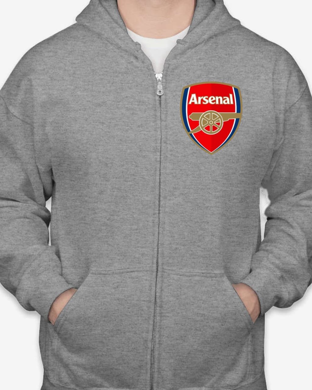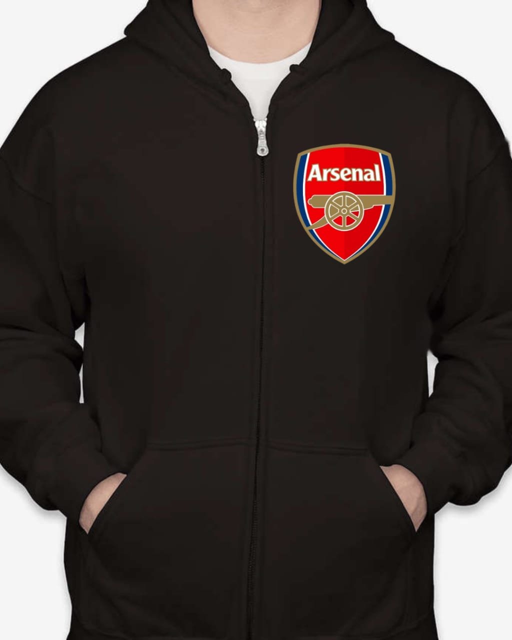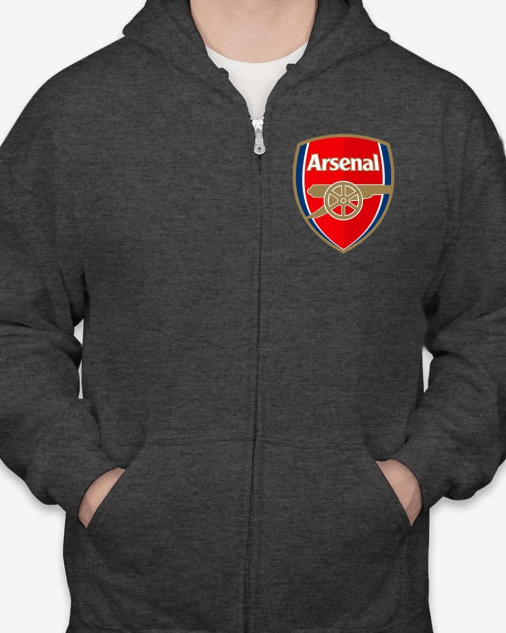 Show your Gunners pride with our Classic Arsenal FC Logo Unisex Full-Zip Hoodie. Featuring the iconic Arsenal crest on the chest, this hoodie is a must-have for true supporters of North London’s finest. With its soft fleece interior and full-zip convenience, it’s perfect for match day, training sessions, or repping your favorite Premier League club wherever you go. Available in sizes S to 2XL.