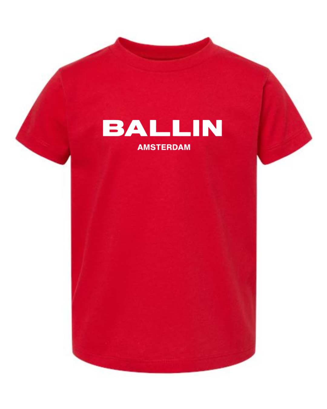 Keep their look crisp with our Classic BALLIN Amsterdam Logo Toddler T-Shirt. Featuring the bold “BALLIN” text with “AMSTERDAM” beneath, this clean, street-style graphic pairs modern flair with soft, everyday comfort—perfect for playdates, photos, and mini trendsetters. Available in sizes 2T to 5T.
