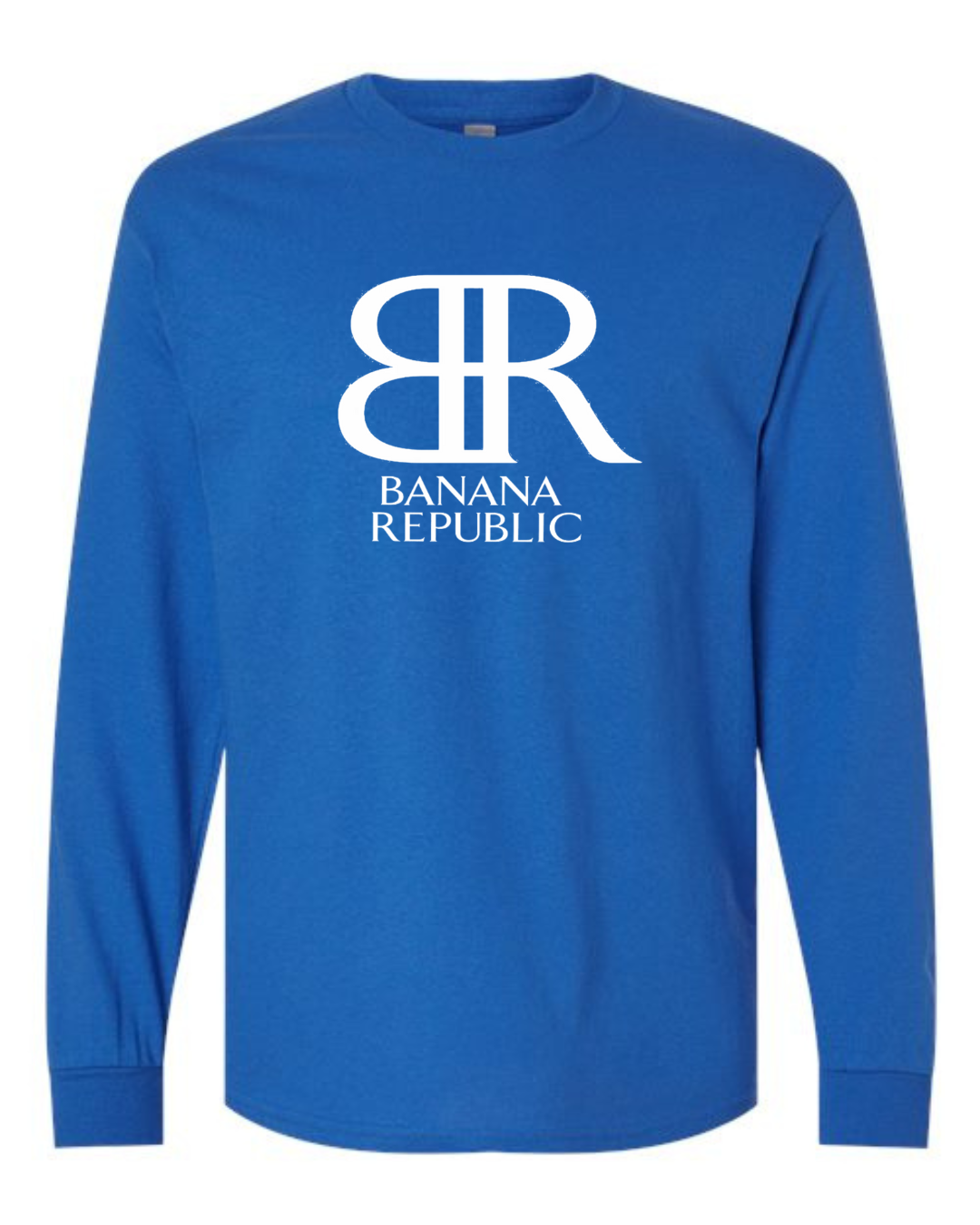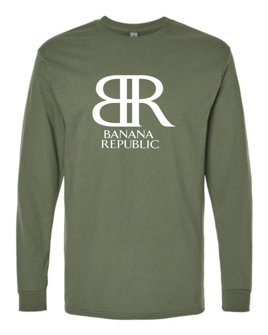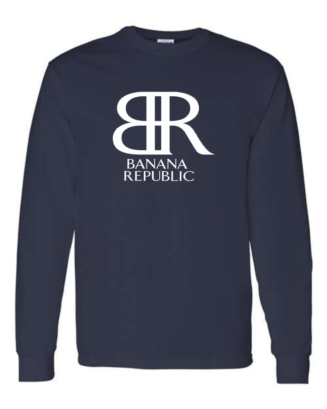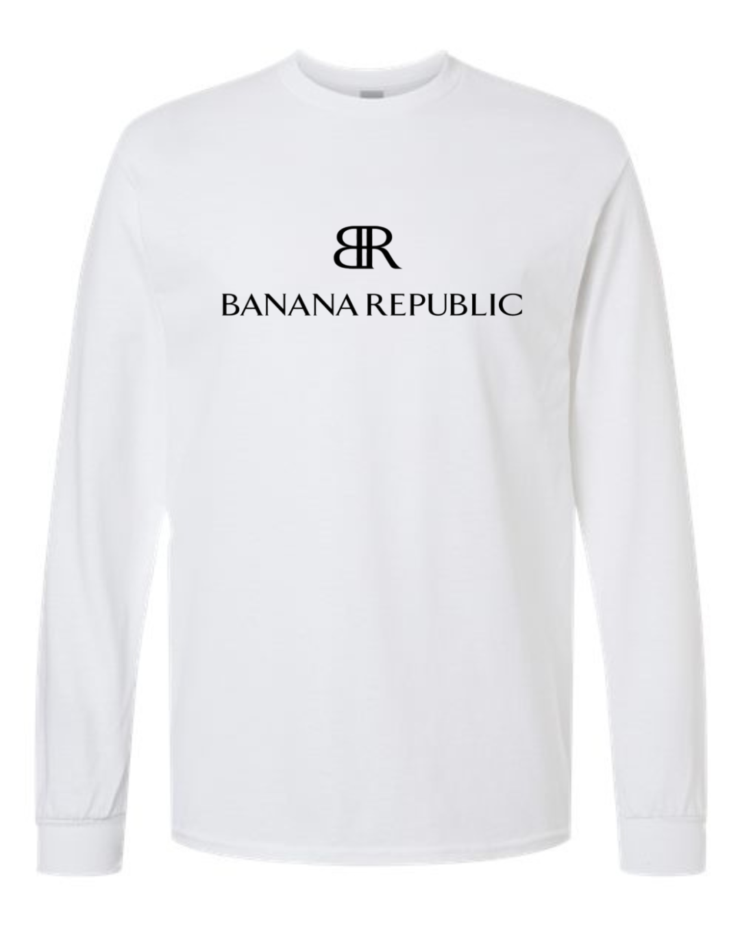 Bring clean, modern style to your wardrobe with the Classic Banana Republic Logo Men’s Long Sleeve T-Shirt. Featuring the elegant “BR” monogram and BANANA REPUBLIC text, this design offers a polished, upscale look inspired by timeless fashion. Made from premium Gildan cotton, it ensures softness, breathability, and durability—perfect for casual outfits, office-casual days, or fans of sophisticated brand-inspired apparel.