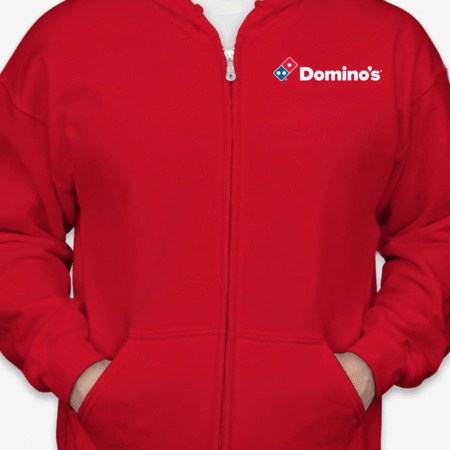 Stay warm while repping your favorite pizza chain with our Classic Domino’s Pizza Logo Unisex Full-Zip Hoodie. Featuring the iconic red and blue Domino’s logo on the chest, this hoodie is perfect for delivery drivers, pizza lovers, or anyone who’s all about hot, fresh comfort. Built for daily wear with a cozy fleece interior and full-zip front, it’s a slice of style you’ll want in your wardrobe. Available in sizes S to 2XL.