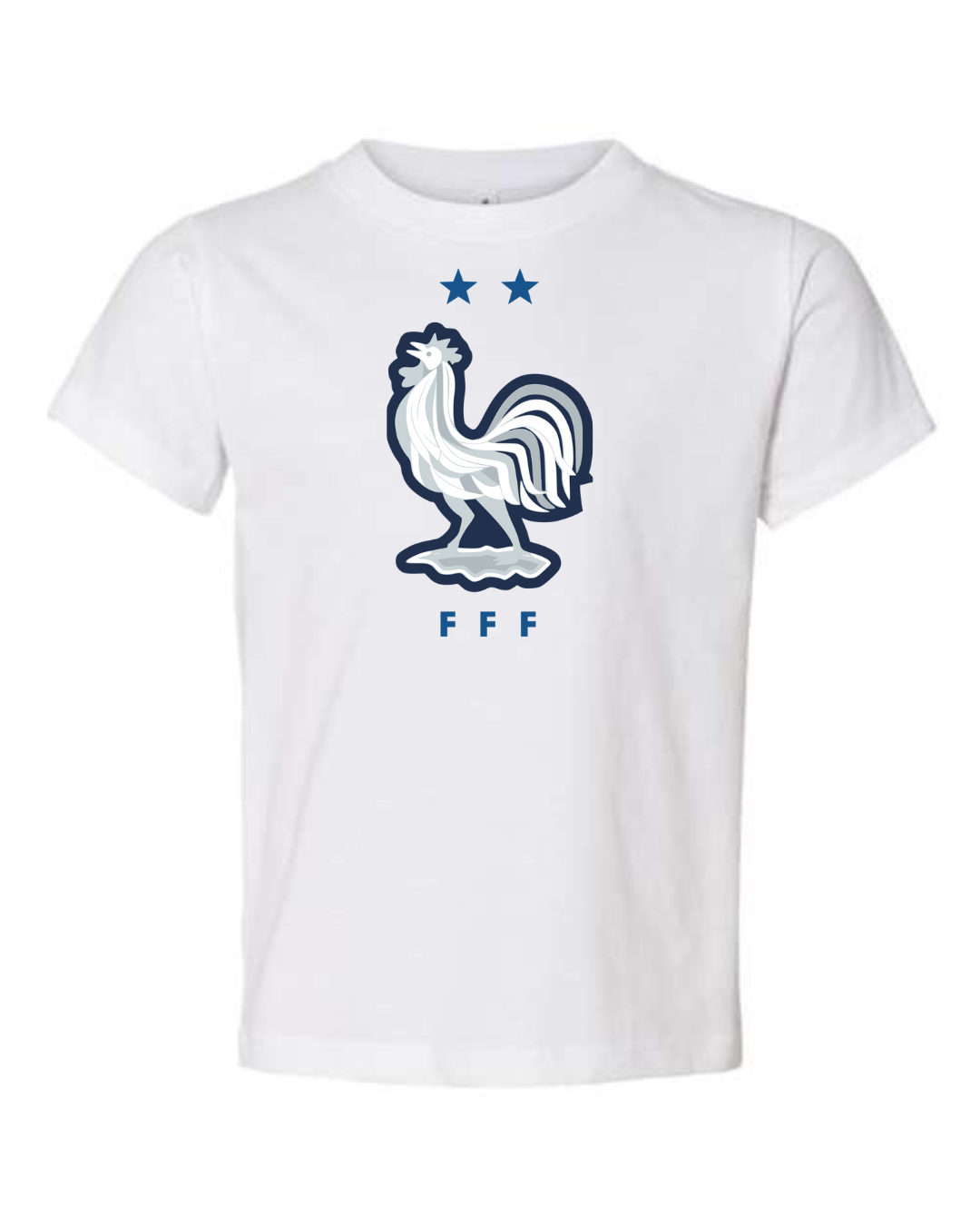 Kick off Les Bleus pride early with our Classic France FFF Rooster Crest Toddler T-Shirt. Featuring the proud rooster with two champion stars and “FFF” beneath, this tee blends national team spirit with soft, everyday comfort—perfect for match days, playgrounds, and cheering with the family. Available in sizes 2T to 5T.