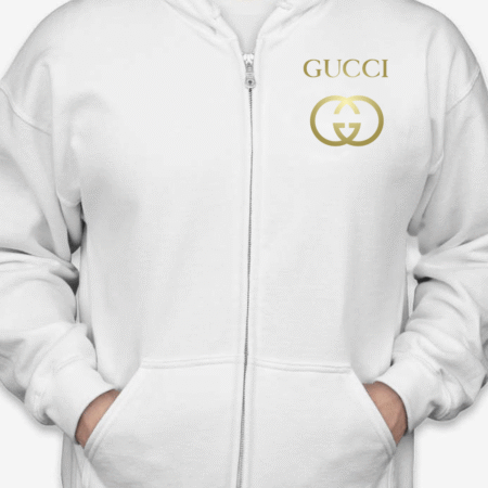 Add a touch of designer edge to your everyday look with our Classic Gucci-Inspired Double G Logo Unisex Full-Zip Hoodie. Featuring the elegant double G emblem and GUCCI wordmark on the chest, this hoodie blends streetwear comfort with iconic fashion flair. Whether you’re dressing up or laying low, the fleece interior and sleek zip-up fit deliver effortless style. Available in sizes S to 2XL.