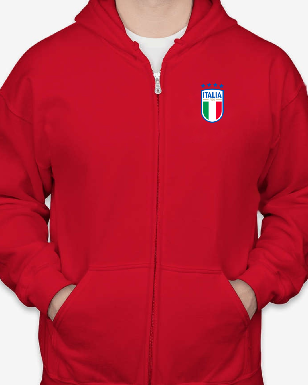 Show your Azzurri pride in bold style with our Classic Italia Soccer Crest Unisex Full-Zip Hoodie in red. Featuring the official Italian national team badge on the chest, this hoodie is a must-have for passionate fans of Italy’s world-class football legacy. Made with a soft fleece interior and easy full-zip front, it’s perfect for match days, training sessions, or stylish everyday wear. Available in sizes S to 2XL.