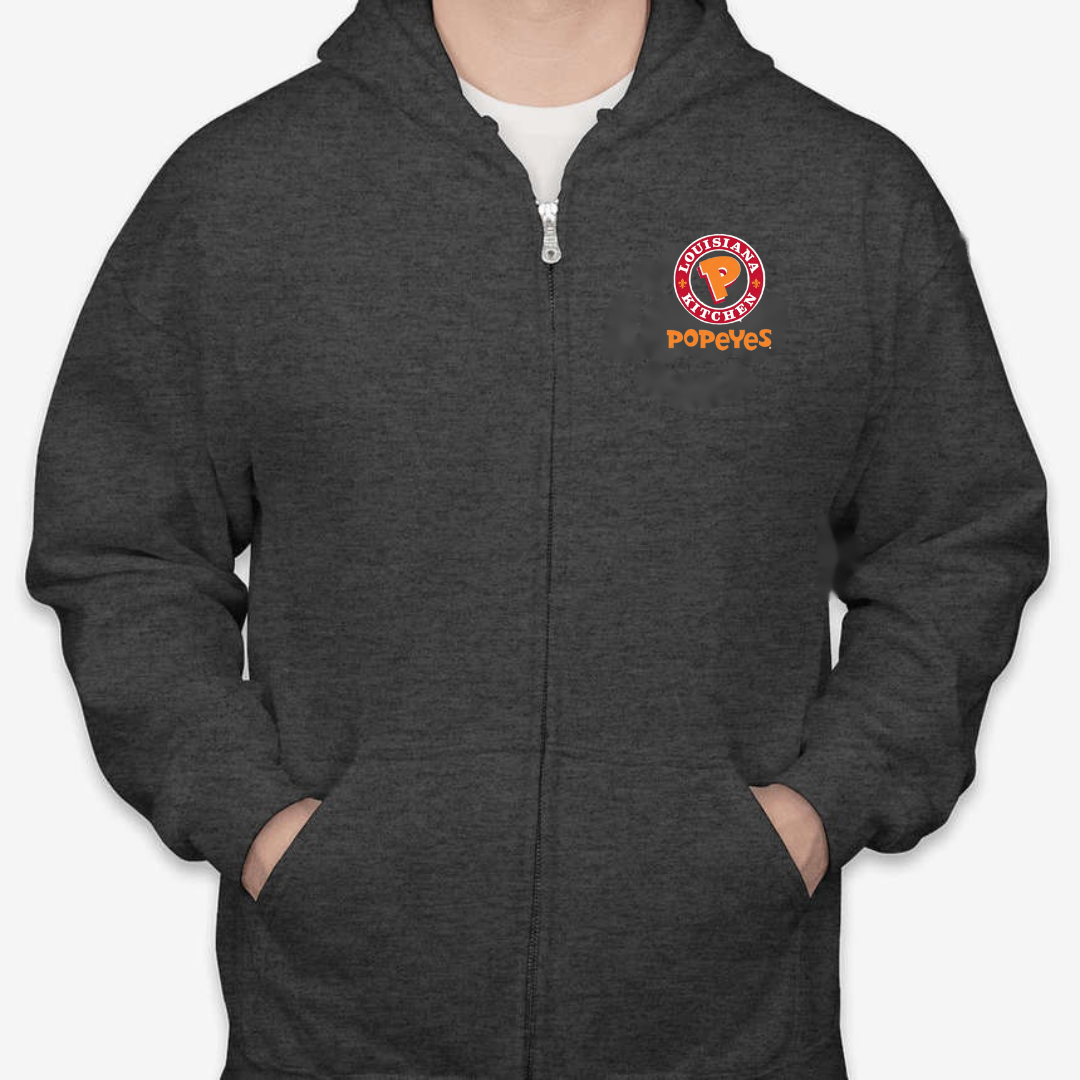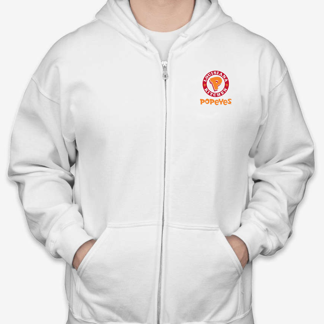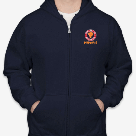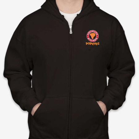 Bring the heat with our Classic Popeyes Chicken Logo Unisex Full-Zip Hoodie. Featuring the bold and flavorful Popeyes logo on the chest, this hoodie is perfect for fans of the iconic Southern-style fast-food chain. Whether you’re an employee, foodie, or just love the brand’s spicy energy, this fleece-lined hoodie offers unbeatable comfort and vibrant style. Available in sizes S to 2XL.