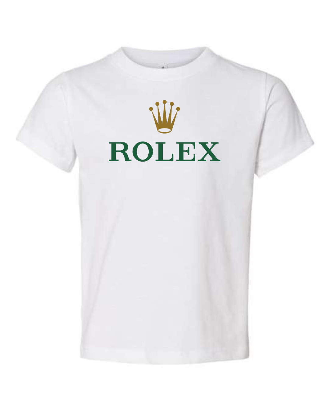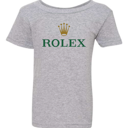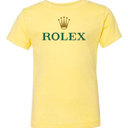 Give their look a touch of luxury with our Classic Rolex Logo Toddler T-Shirt. Featuring the iconic crown and ROLEX wordmark front and center, this tee blends timeless style with soft, everyday comfort—perfect for photos, outings, or mini trendsetters who love premium vibes. Available in sizes 2T to 5T.
