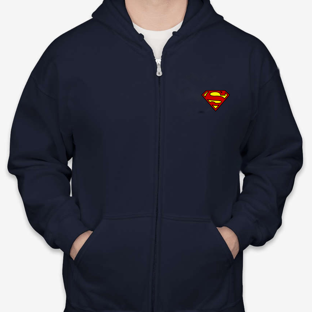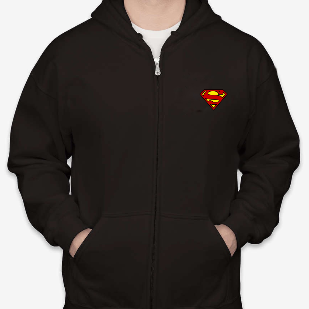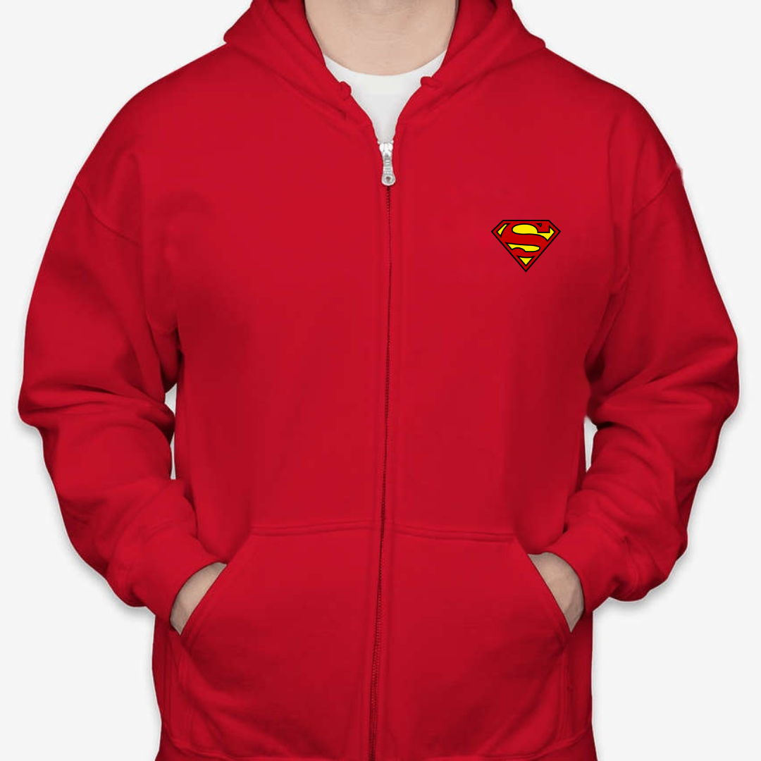 Channel your inner hero with our Classic Superman Logo Unisex Full-Zip Hoodie. Featuring the legendary “S” emblem on the chest, this hoodie brings iconic superhero energy to your everyday wardrobe. Whether you’re staying cozy at home or stepping out with style, this zip-up offers the perfect blend of comfort, warmth, and comic book nostalgia. A must-have for fans of the Man of Steel. Available in sizes S to 2XL.