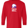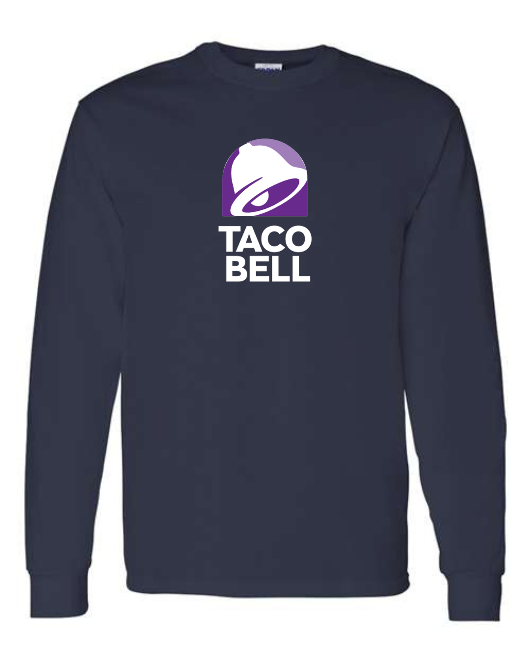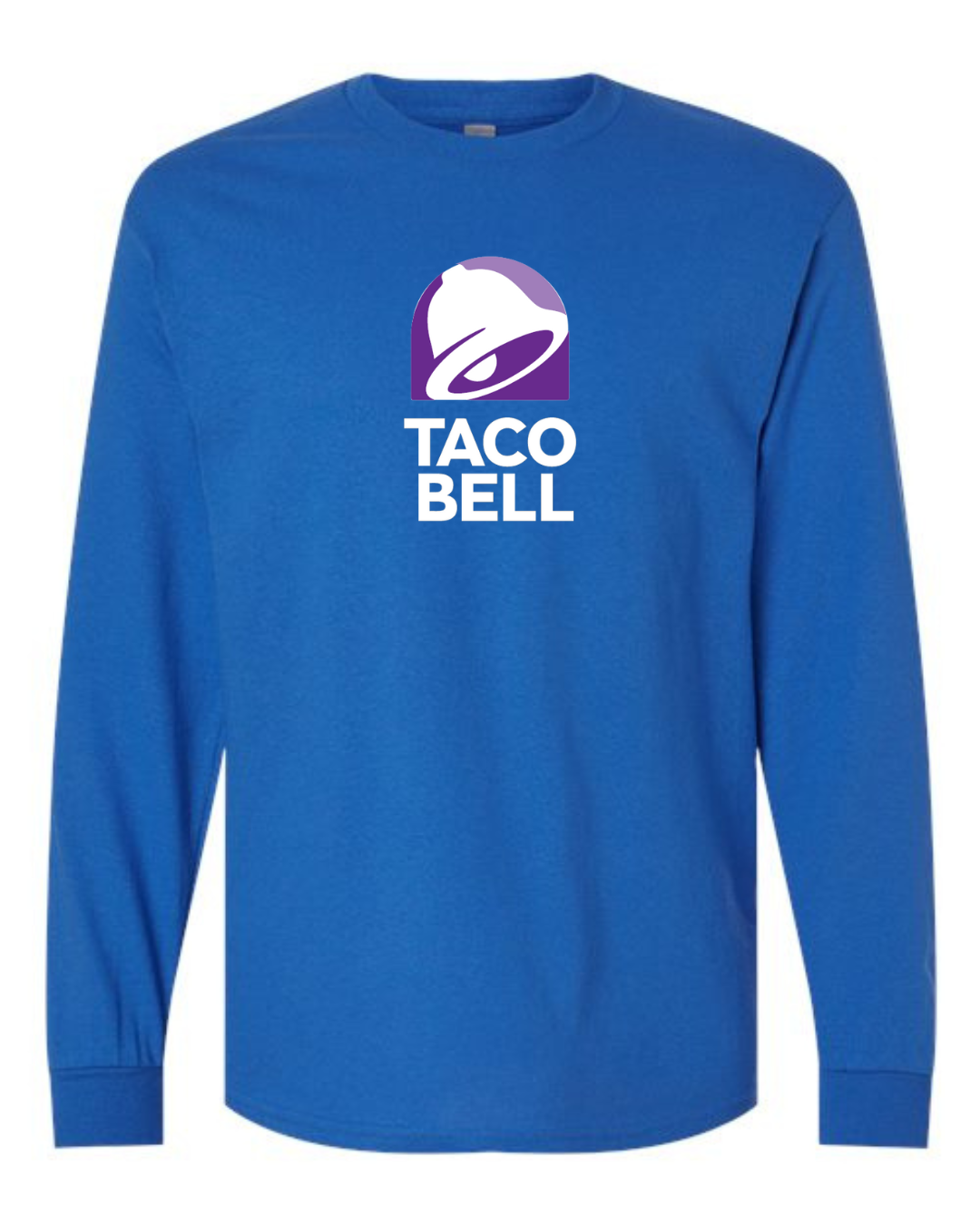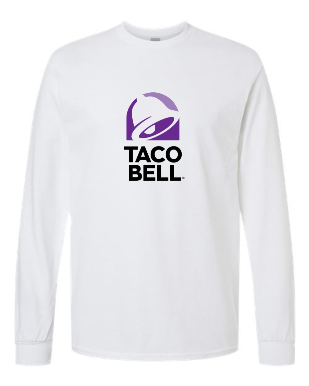 Bring bold flavor to your style with the Classic Taco Bell Logo Men’s Long Sleeve T-Shirt. Featuring the iconic purple Taco Bell bell emblem and clean text logo, this shirt is perfect for fans of the legendary fast-food chain. Made from premium Gildan cotton, it provides softness, comfort, and durability—ideal for casual wear, work, or anyone who loves fun, recognizable brand apparel.