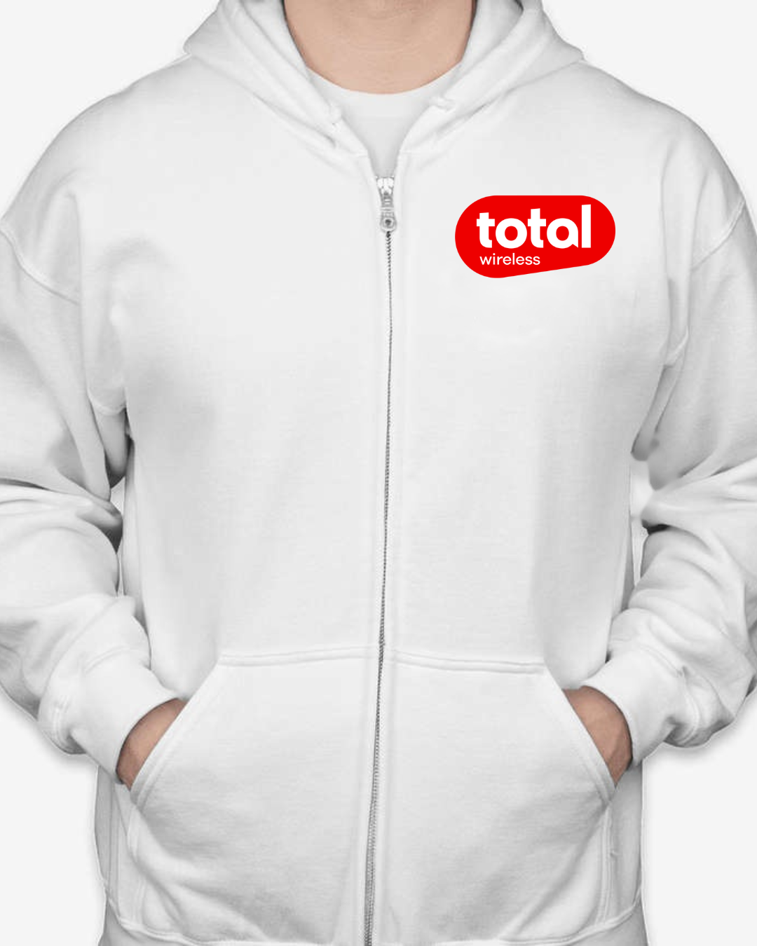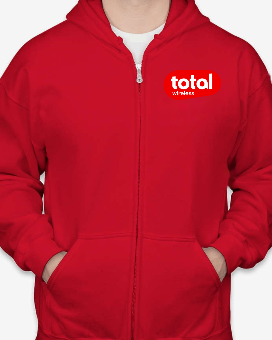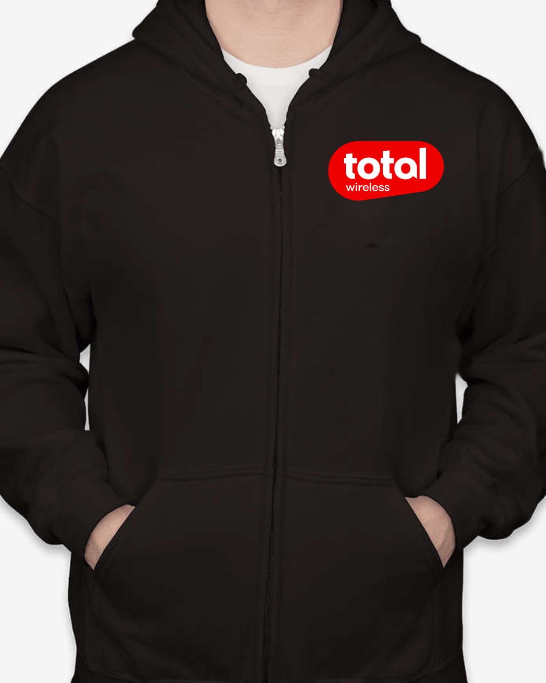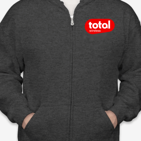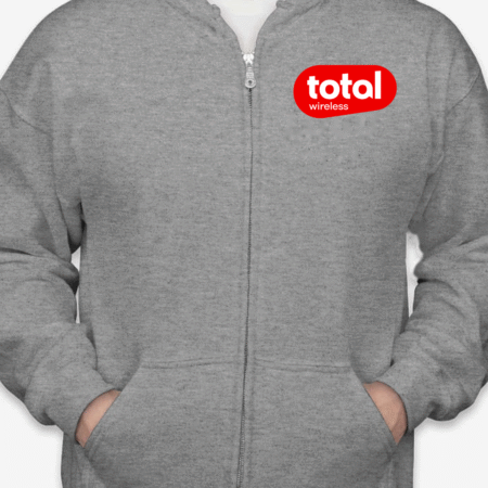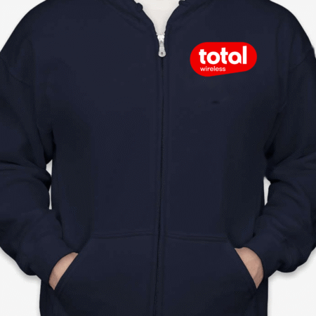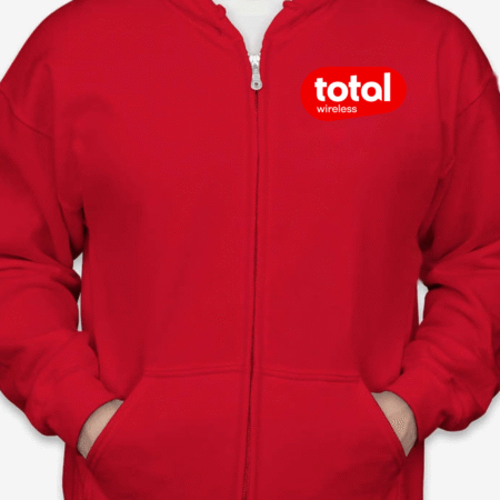 Stay connected in comfort with our Classic Total Wireless Logo Unisex Full-Zip Hoodie. Featuring the bold red Total Wireless logo on the chest, this hoodie is a stylish pick for wireless industry pros, brand enthusiasts, or fans of sleek minimalist design. The cozy fleece interior and full-zip functionality make it ideal for chilly workdays, tech events, or everyday errands. Available in sizes S to 2XL.