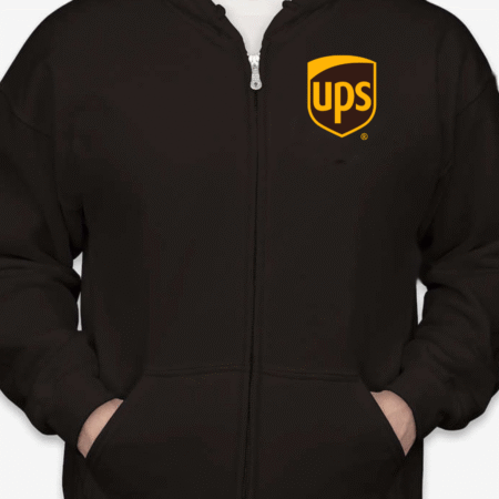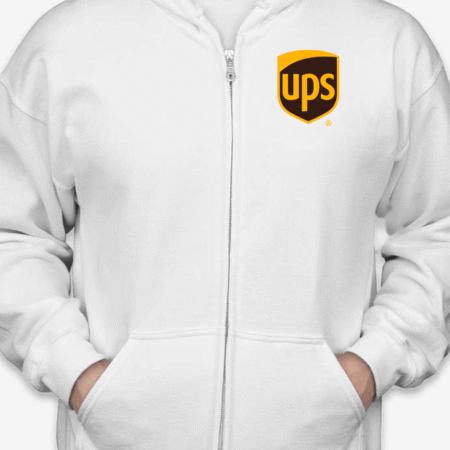 Deliver warmth and work-ready comfort with our Classic UPS Logo Unisex Full-Zip Hoodie. Featuring the trusted brown-and-gold UPS shield on the chest, this hoodie is perfect for employees, fans of the brand, or anyone who appreciates dependable service and clean design. Made with soft fleece lining and a full-zip front, it’s ideal for cool shifts, off-duty style, or everyday wear. Available in sizes S to 2XL.