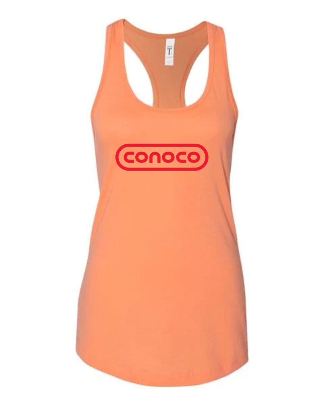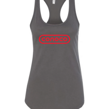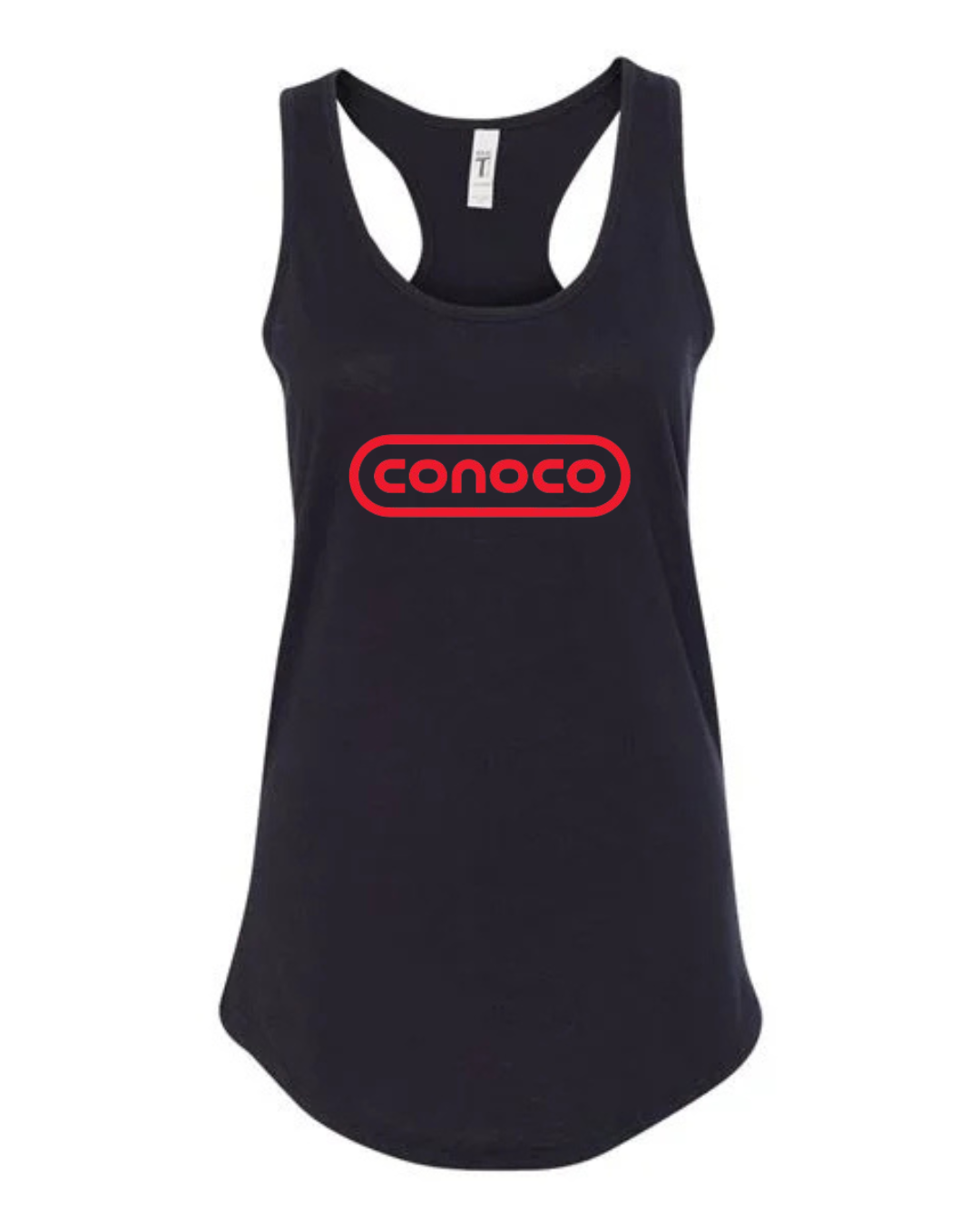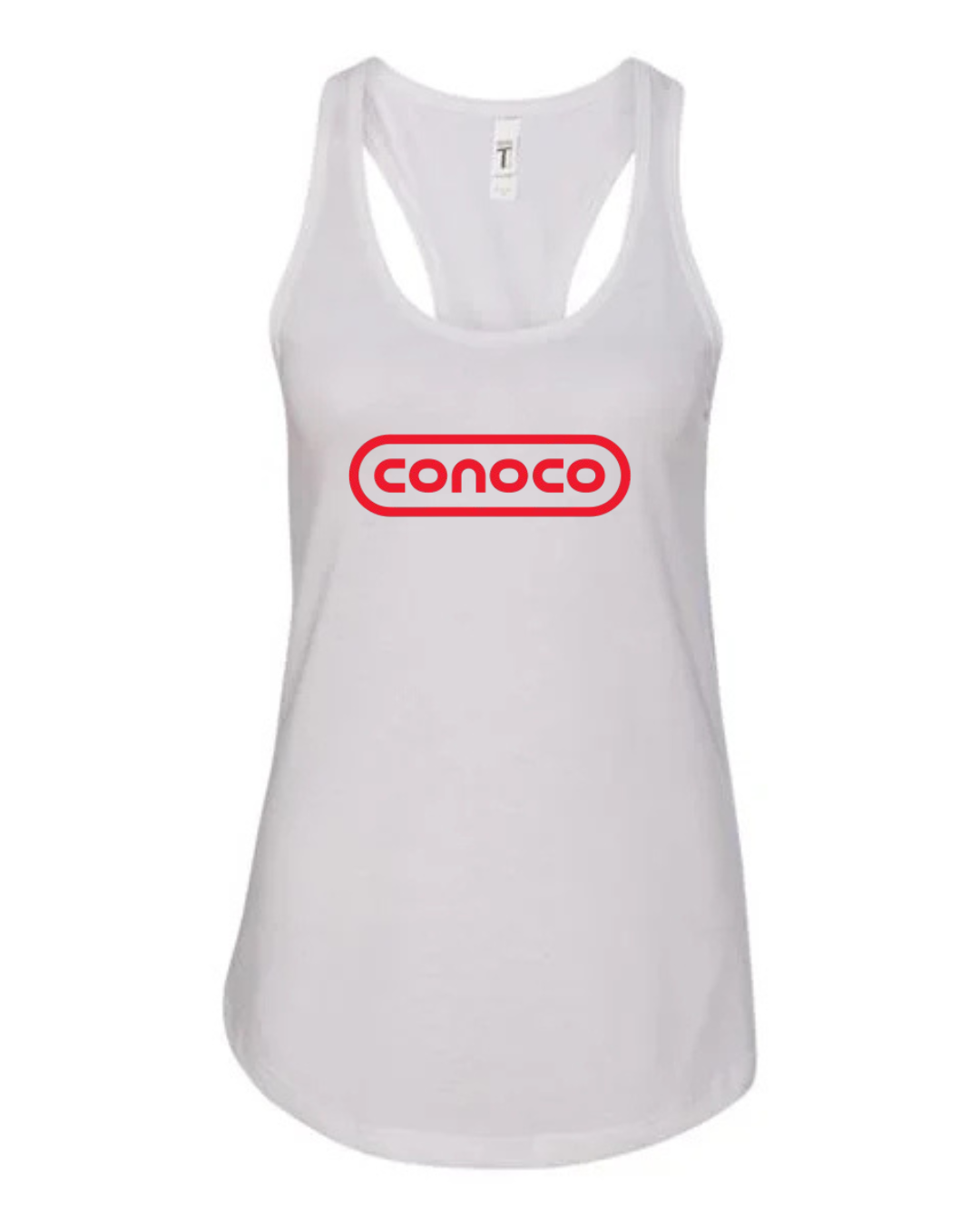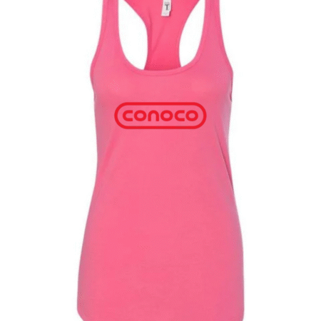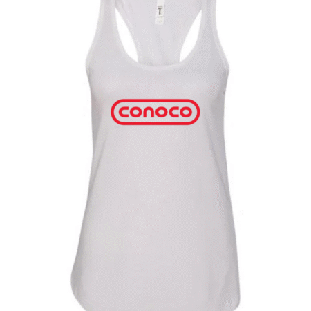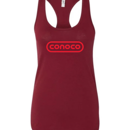 Fuel your everyday style with this Conoco Logo Women’s Racerback Tank Top. Featuring the iconic Conoco logo boldly printed on the chest, this tank delivers a clean, classic look inspired by automotive and fuel industry heritage. The racerback cut offers a flattering athletic fit, while the soft, breathable fabric ensures all-day comfort whether you’re out and about, at the gym, or relaxing casually.