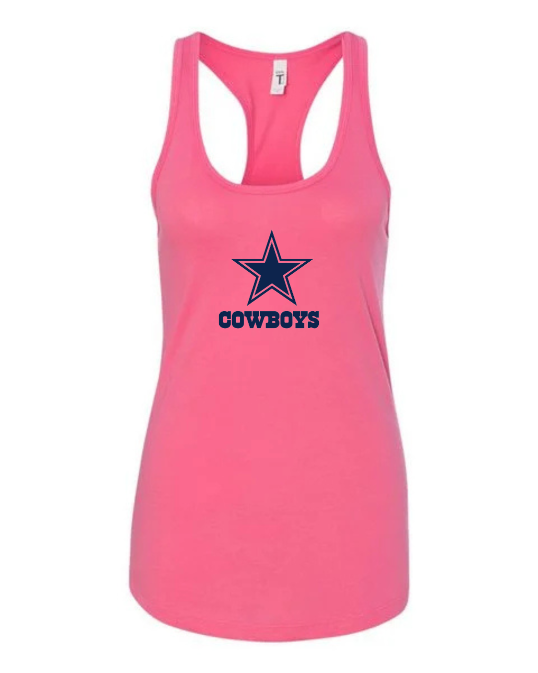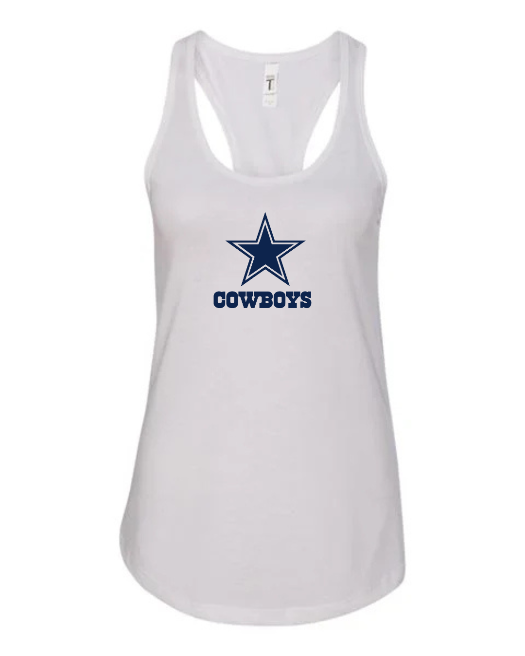 Show your team pride with this Dallas Cowboys Logo Women’s Racerback Tank Top. Featuring the iconic Cowboys star logo with bold team lettering printed on the chest, this tank delivers a classic and instantly recognizable NFL-inspired look. The racerback cut provides a flattering athletic fit, while the soft, breathable fabric keeps you comfortable during workouts, game days, tailgates, or everyday casual wear. Perfect for dedicated Cowboys fans who want to represent America’s Team in style.