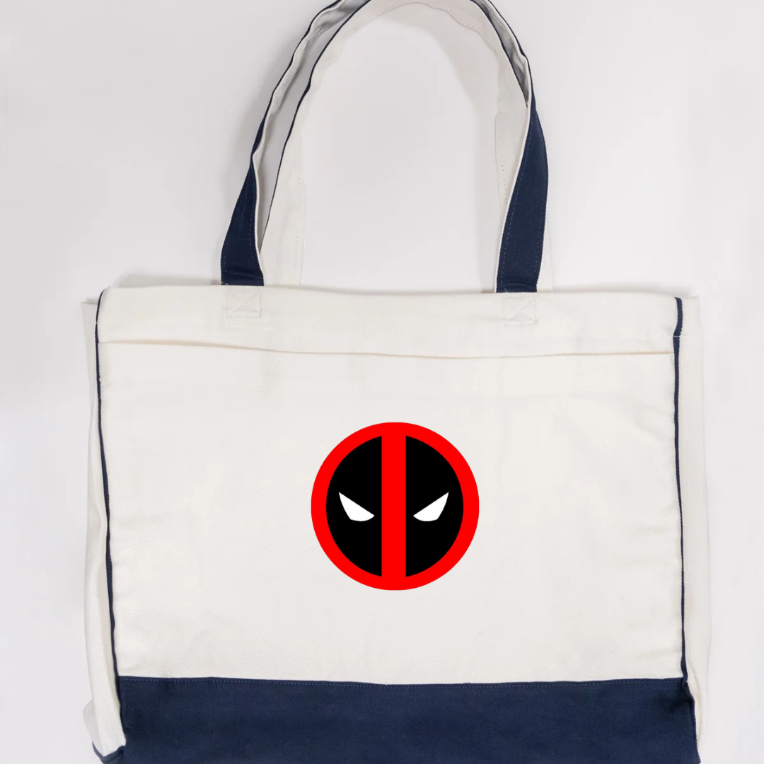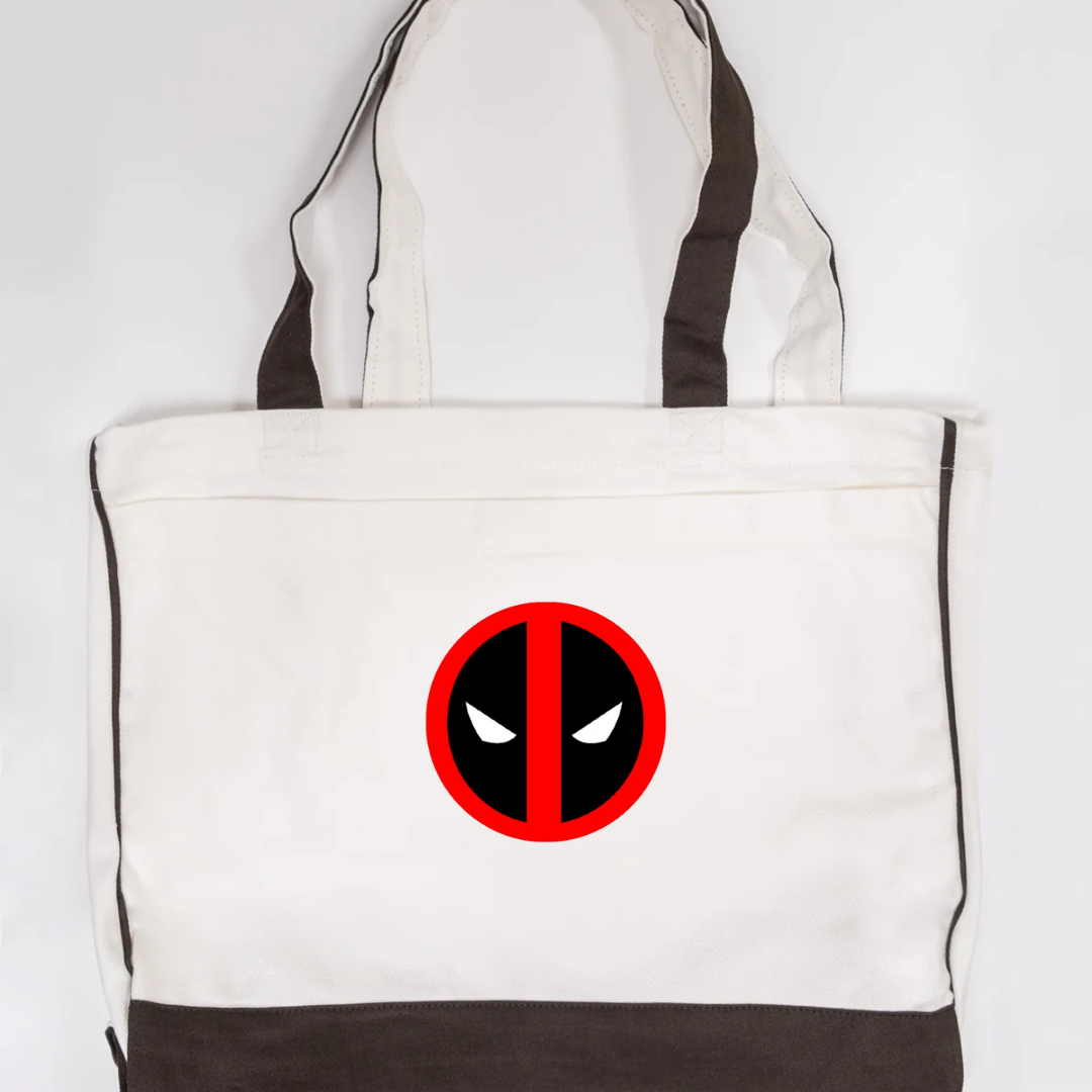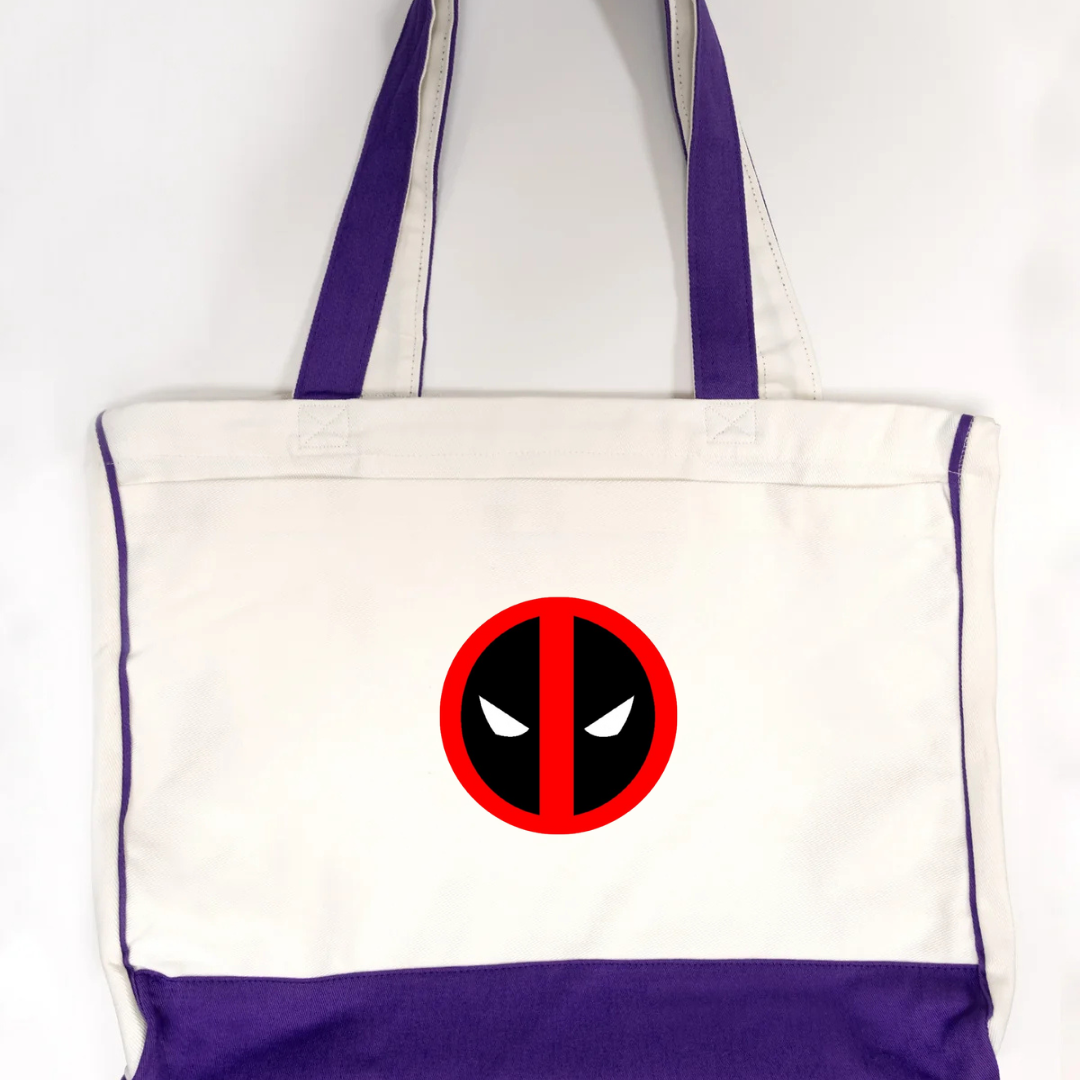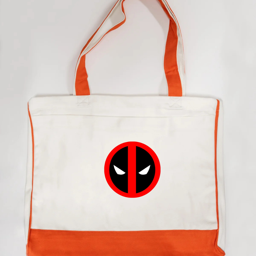Add some attitude to your everyday carry with our Deadpool Logo Trimmed Tote Bag. Featuring the iconic red and black Deadpool-inspired emblem, this tote brings superhero flair to a functional design. Crafted from durable canvas fabric and accented with soft pink trimming, it’s perfect for errands, travel, school, or casual outings. Lightweight, strong, and unmistakably bold—this tote is made for fans who love style with personality.