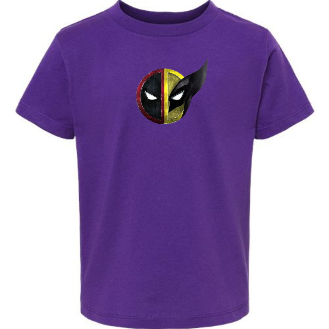 Turn heads with our Deadpool & Wolverine Mask Mashup Toddler T-Shirt. The bold split-face graphic blends two fan-favorite anti-hero vibes into one standout design—perfect for little comic lovers with big personality. Soft, breathable, and comfy for playground adventures, parties, or photo-ready moments. Available in sizes 2T to 5T.