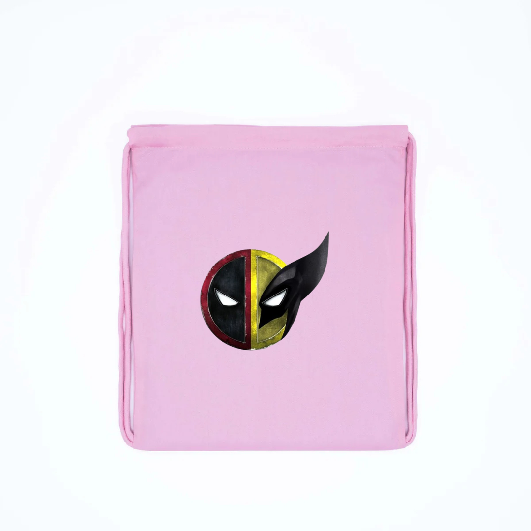 Show off your love for two legendary heroes with this Deadpool & Wolverine Mask Split Logo Drawstring Backpack. Featuring a striking half-and-half mask design β the classic red Deadpool side blended with the fierce yellow-and-black Wolverine side β this lightweight yet durable bag delivers a powerful, fan-favorite look. The easy drawstring closure offers quick access while keeping your essentials secure, making it perfect for school, gym sessions, travel, or everyday outings.