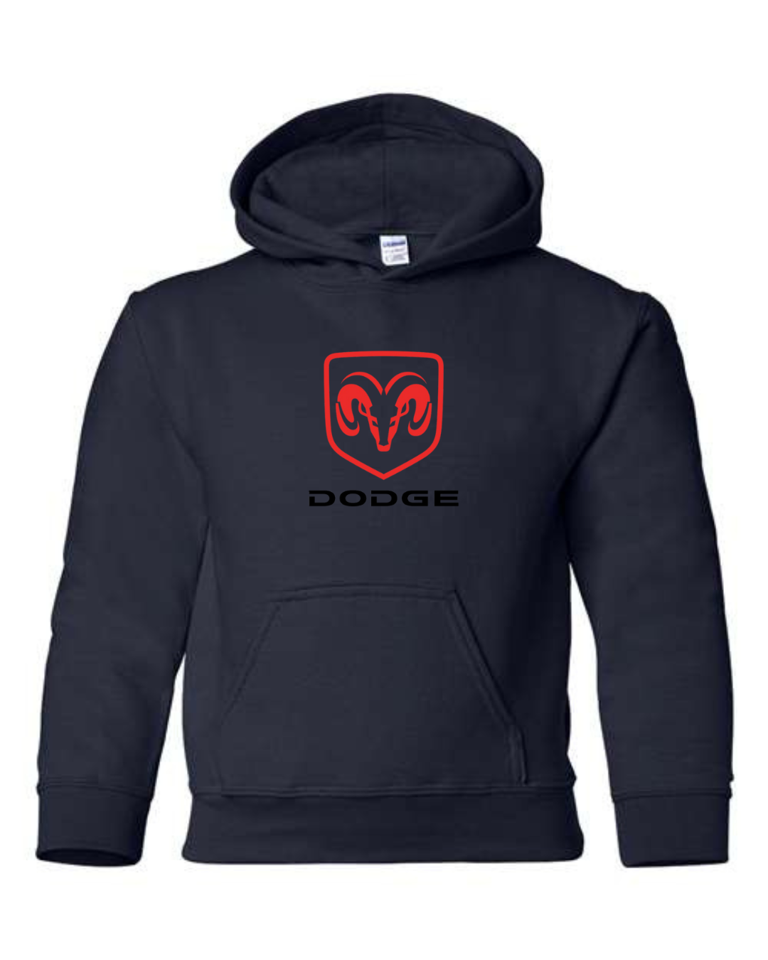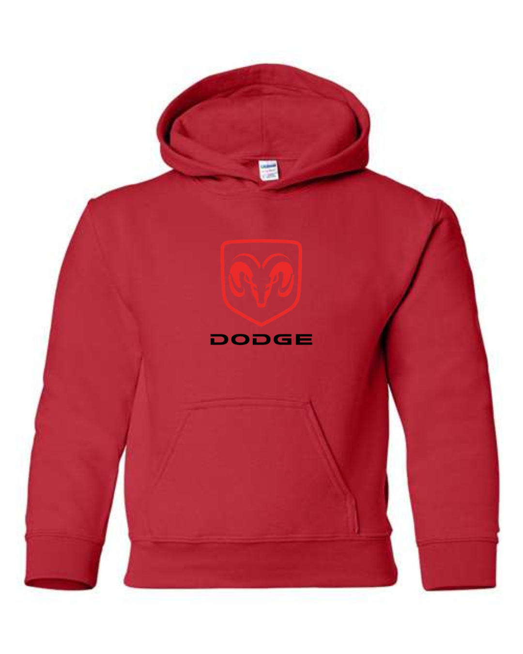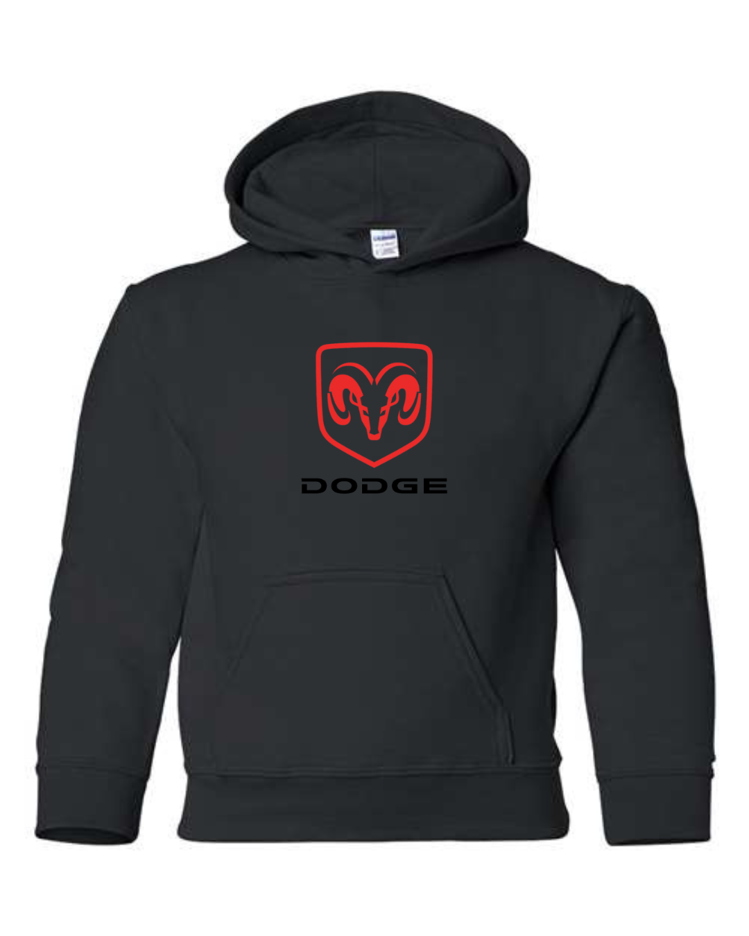 Bold and powerful, the Dodge Ram Logo Youth Hoodie features the iconic Ram head emblem with the Dodge wordmark. Perfect for young truck and muscle car fans, this hoodie delivers a strong automotive look while keeping kids warm, comfortable, and ready for everyday wear at school or on the go.