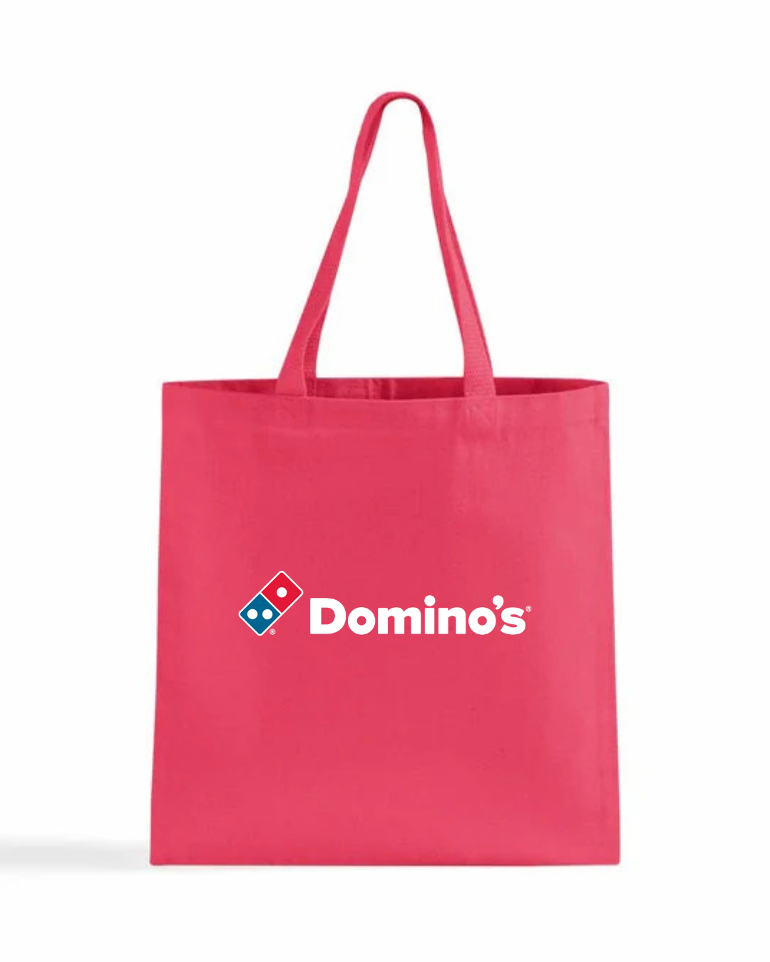 Show off bold, fun style with the Domino’s Logo Canvas Tote Bag, featuring the classic red-and-blue Domino’s tile and clean wordmark. This tote adds a playful, recognizable touch to your everyday carry while offering plenty of space for groceries, books, work essentials, or daily errands. Made from durable cotton canvas, it’s lightweight, reusable, and comfortable to carry thanks to its sturdy shoulder straps—perfect for pizza fans, food lovers, or anyone who enjoys iconic brand designs.