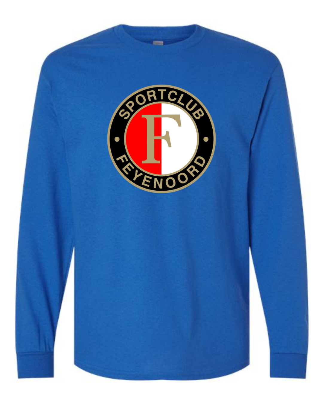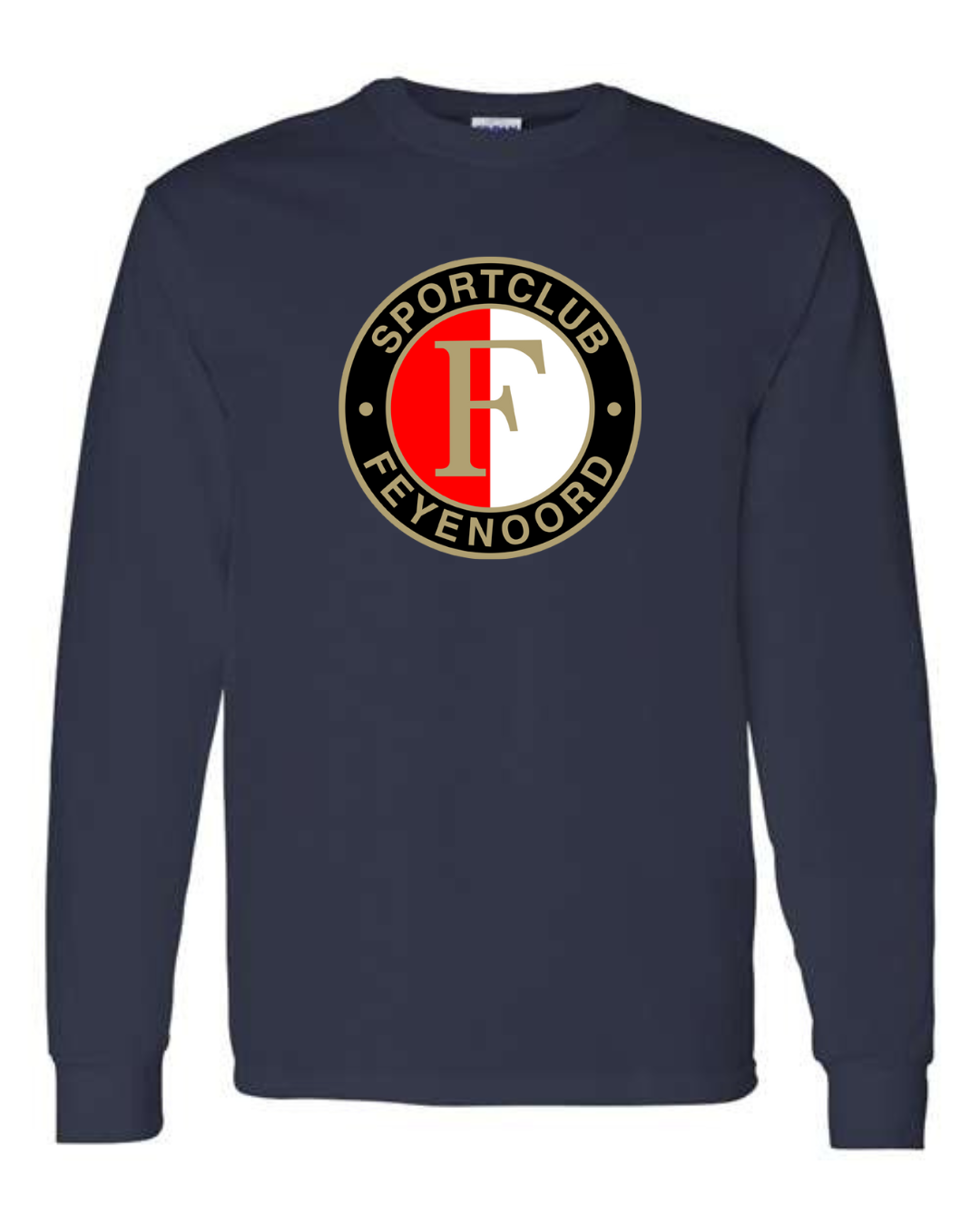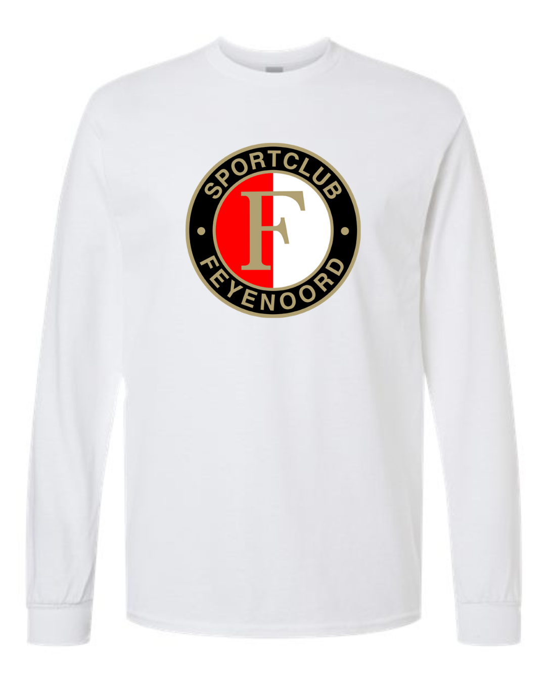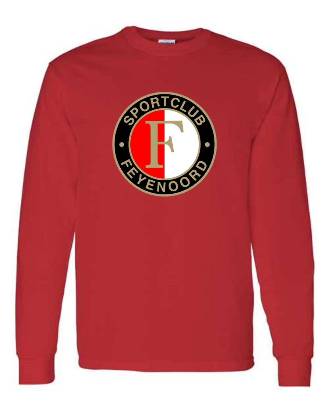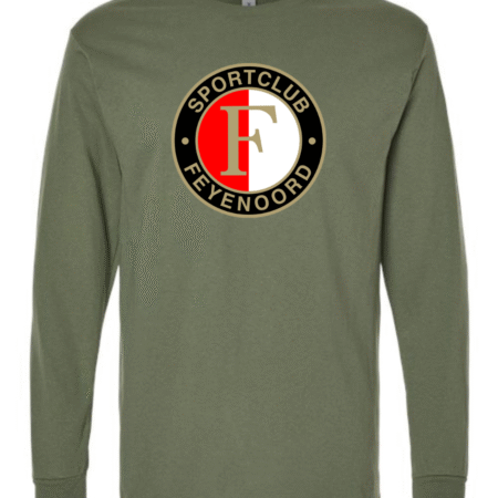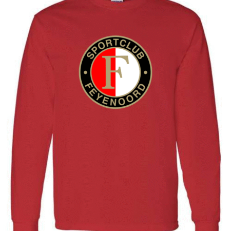 Show your team spirit with the Classic Feyenoord Logo Men’s Long Sleeve T-Shirt. Featuring the bold Sportclub Feyenoord crest, this shirt is perfect for dedicated fans of the Dutch football club. Made from premium Gildan cotton, it provides comfort, breathability, and durability, making it an ideal choice for match days, casual outings, or everyday wear. A must-have for true Feyenoord supporters.
