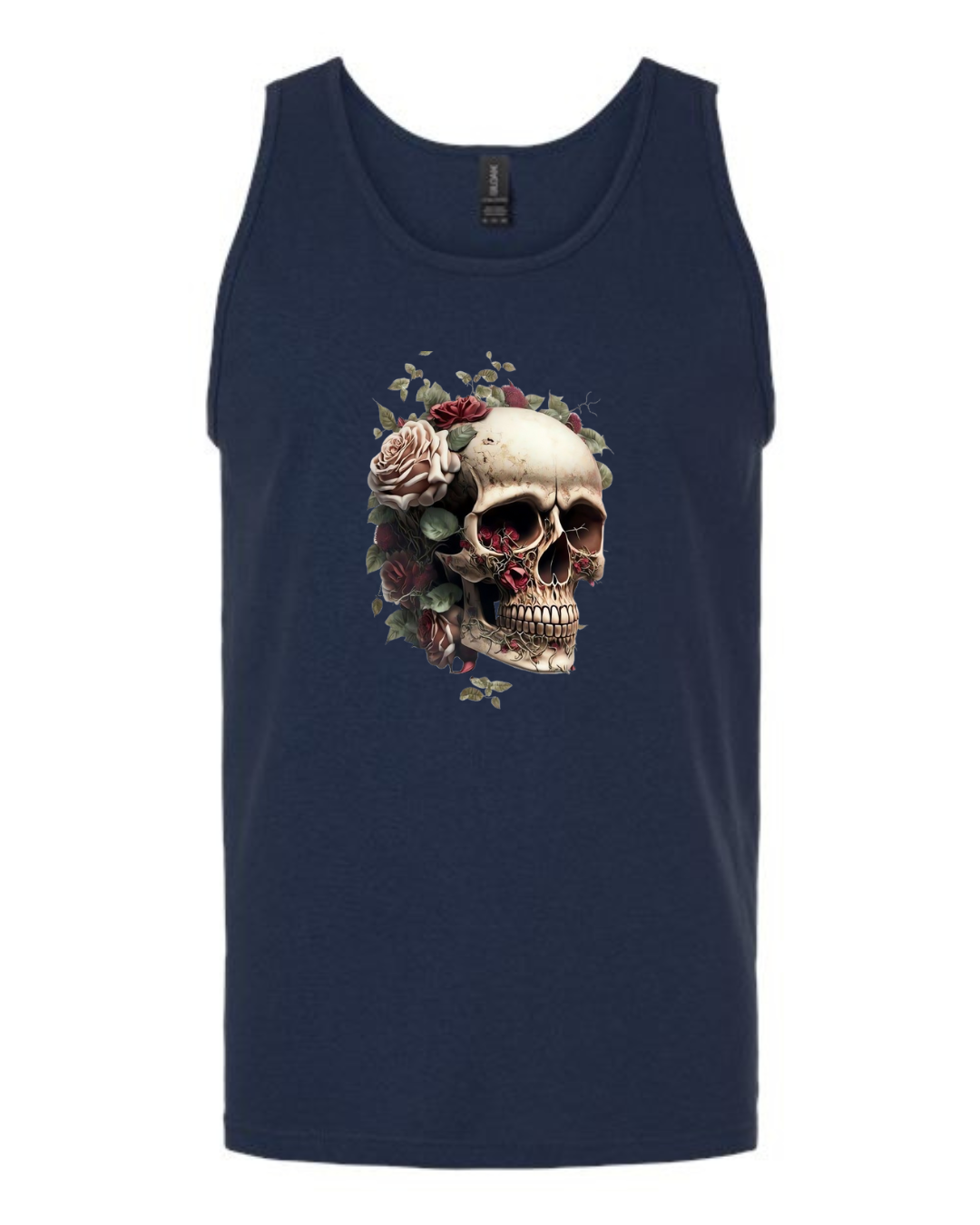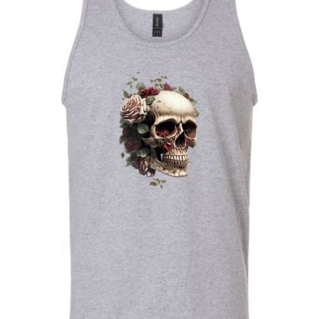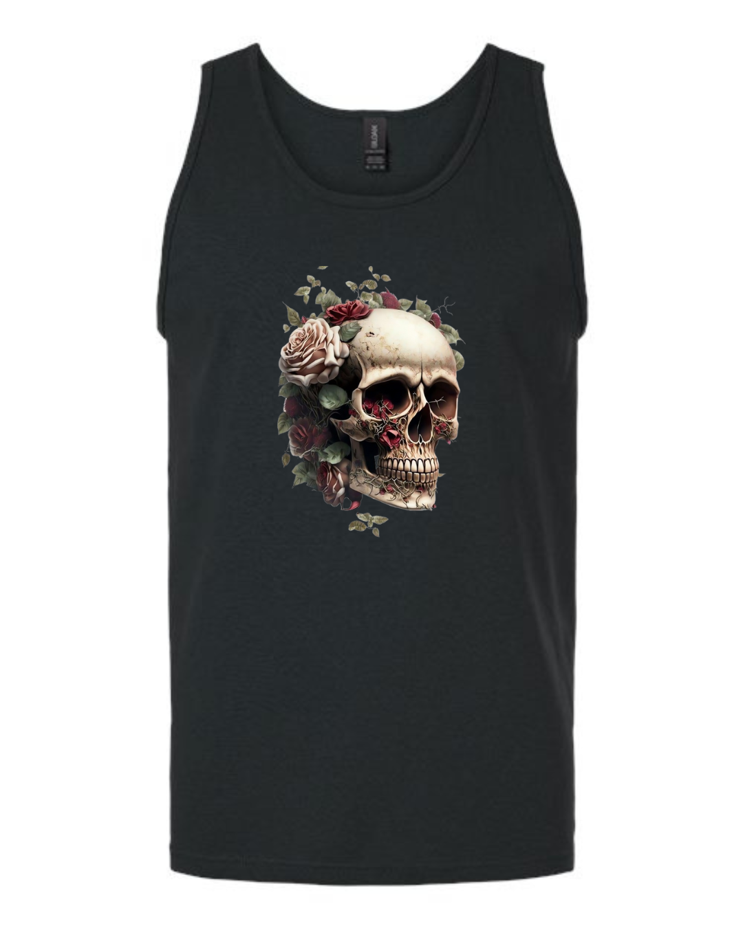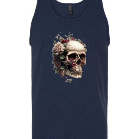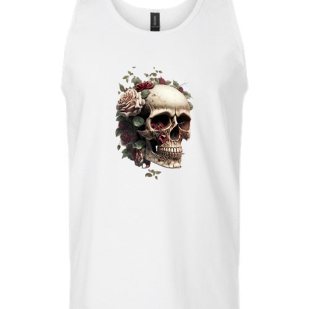 Add an edgy twist to your style with our Floral Skull Art Black Men’s Tank Top. Featuring a striking skull design surrounded by detailed roses and foliage, this tank blends dark aesthetics with artistic elegance. Crafted from soft, breathable cotton-blend fabric, it’s perfect for concerts, casual wear, or anyone who loves bold statement graphics. Available in sizes S to 2XL.