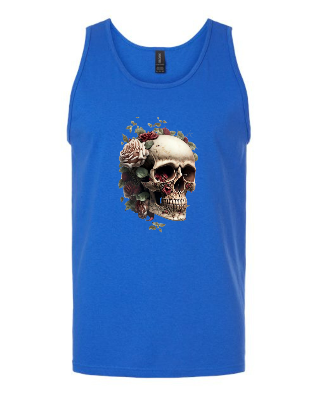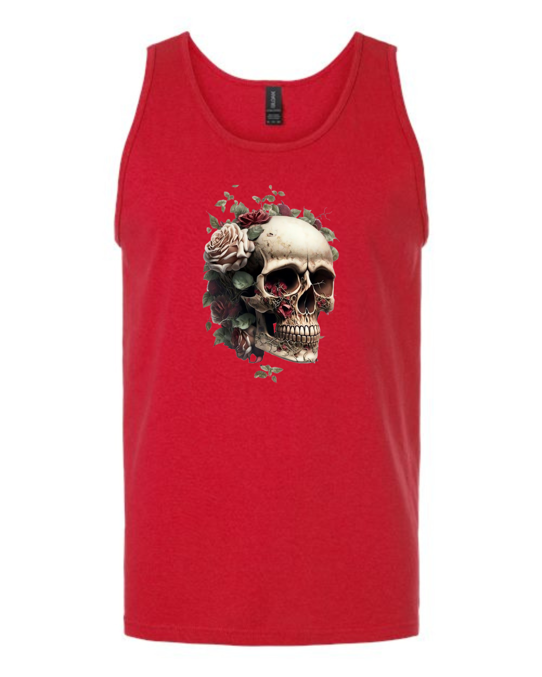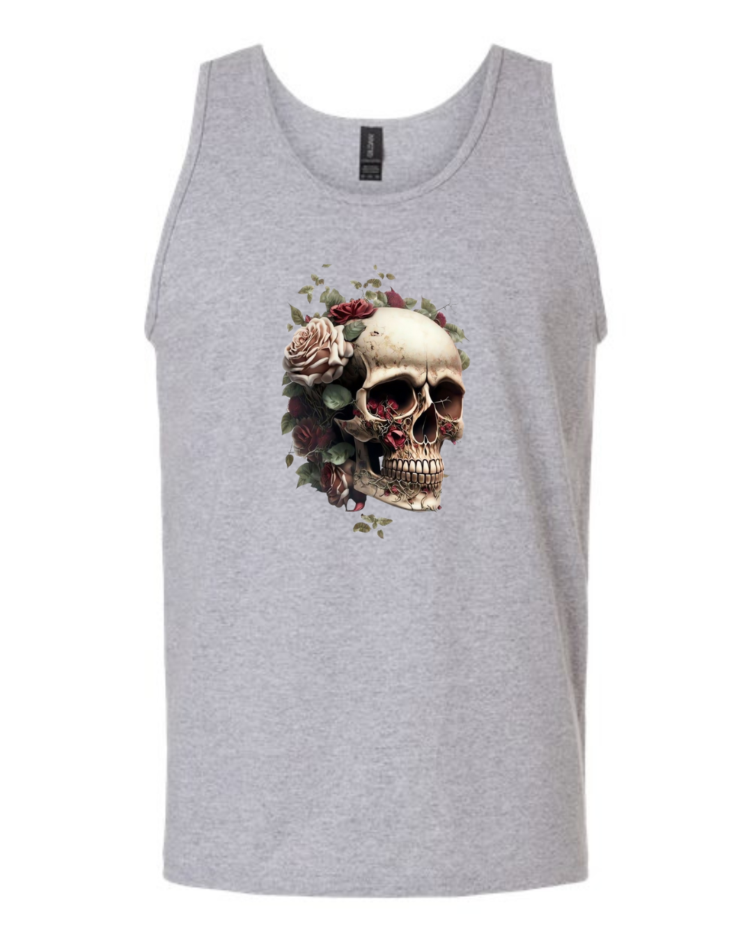 Add an edgy twist to your style with our Floral Skull Art Black Men’s Tank Top. Featuring a striking skull design surrounded by detailed roses and foliage, this tank blends dark aesthetics with artistic elegance. Crafted from soft, breathable cotton-blend fabric, it’s perfect for concerts, casual wear, or anyone who loves bold statement graphics. Available in sizes S to 2XL.