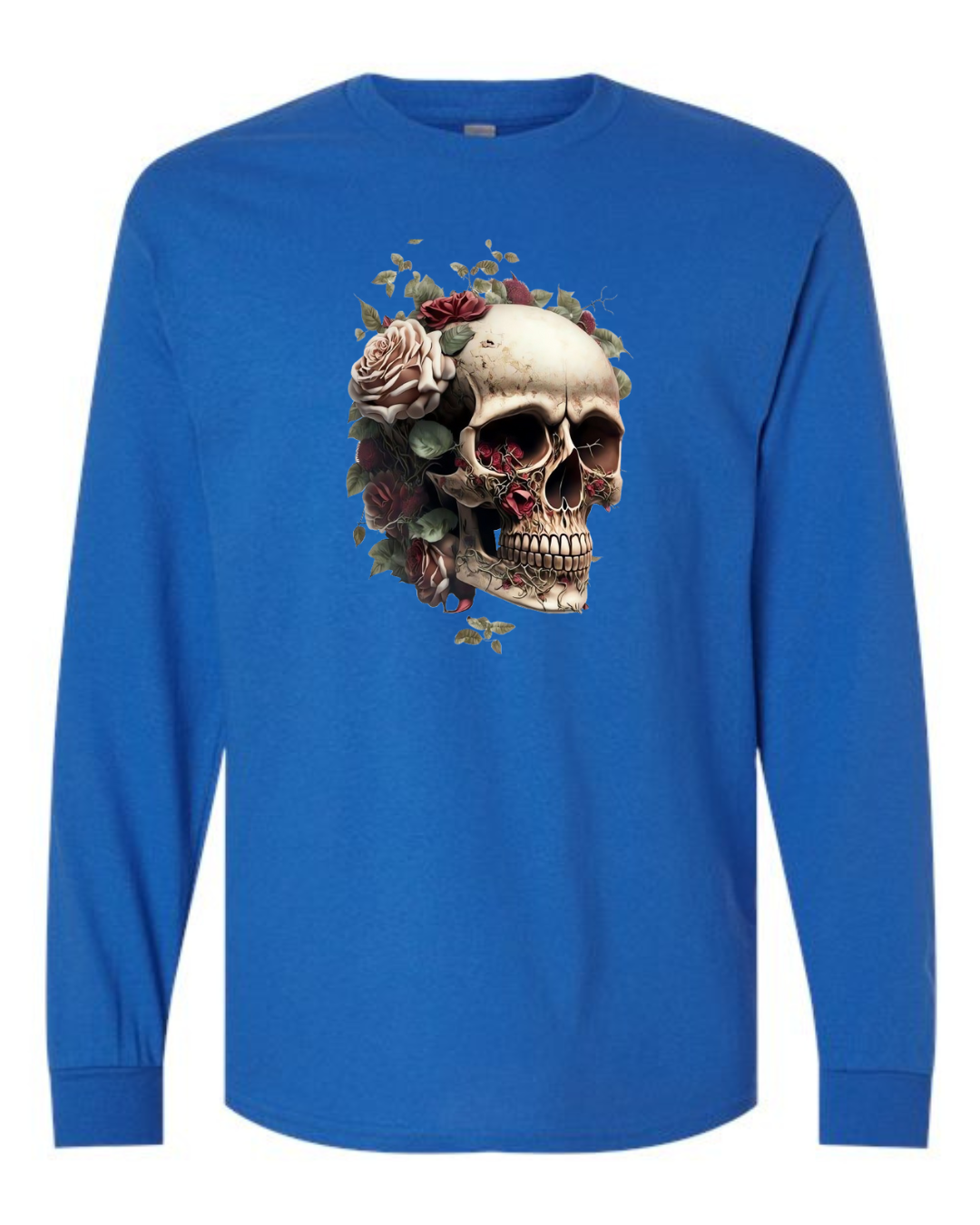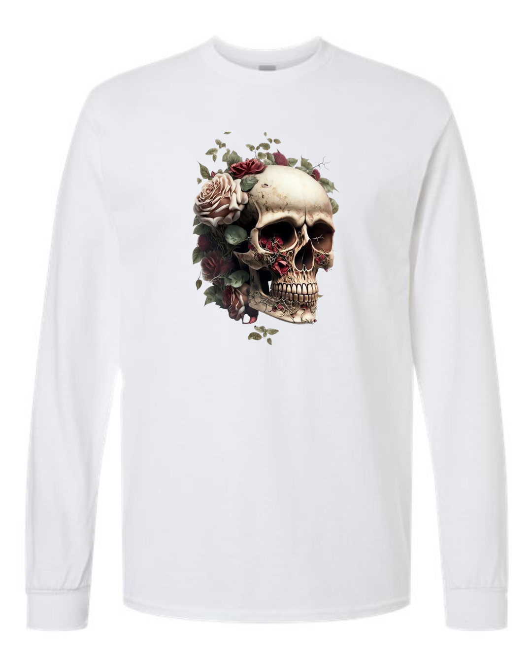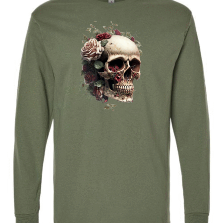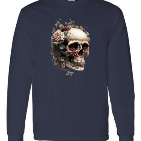 Make a bold statement with the Floral Skull Art Men’s Long Sleeve T-Shirt. Featuring a detailed skull design surrounded by blooming roses, this shirt blends edgy gothic style with artistic elegance. Crafted from premium Gildan cotton, it offers breathable comfort and durability, making it perfect for casual wear, concerts, or streetwear fashion. A striking piece for anyone who loves dark yet stylish designs.