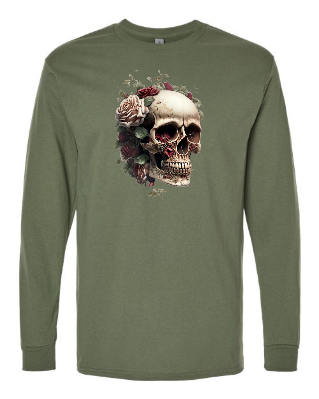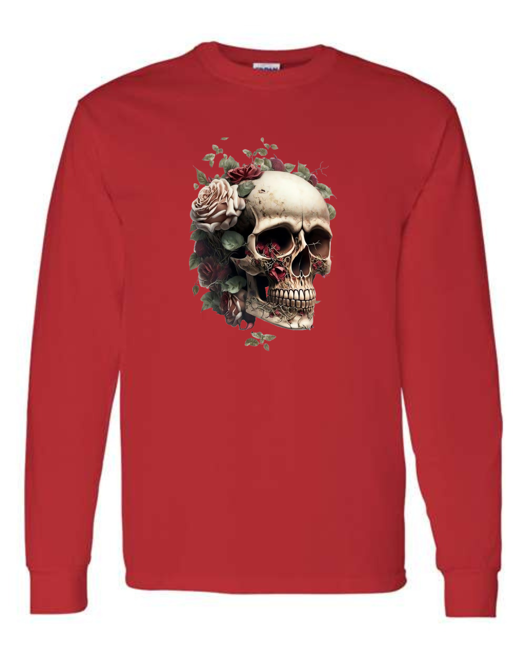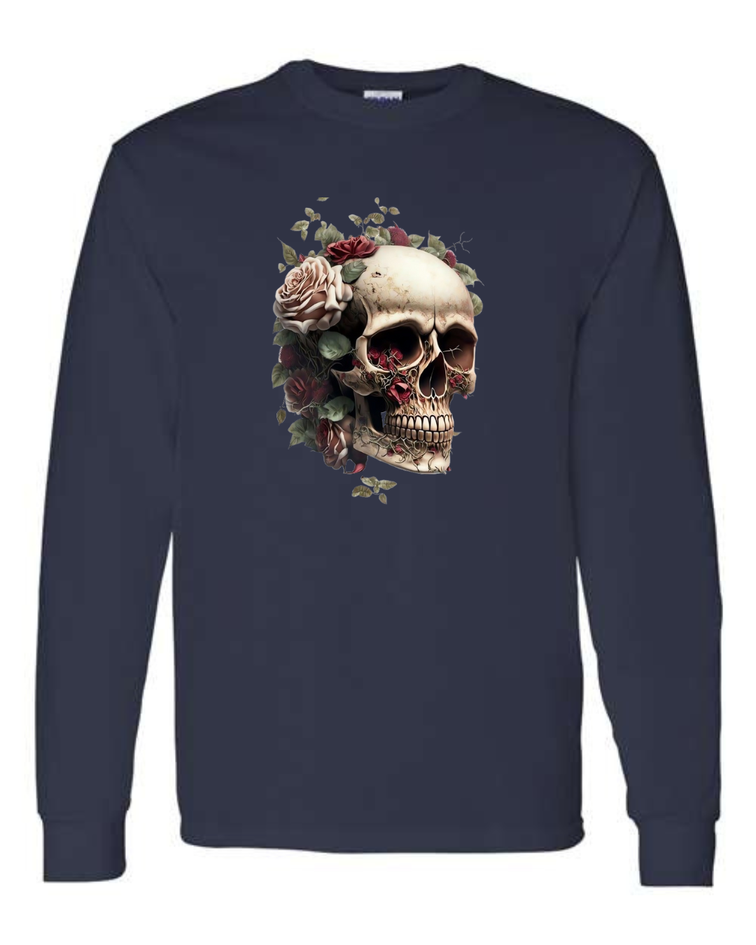 Make a bold statement with the Floral Skull Art Men’s Long Sleeve T-Shirt. Featuring a detailed skull design surrounded by blooming roses, this shirt blends edgy gothic style with artistic elegance. Crafted from premium Gildan cotton, it offers breathable comfort and durability, making it perfect for casual wear, concerts, or streetwear fashion. A striking piece for anyone who loves dark yet stylish designs.