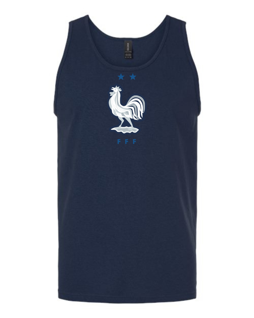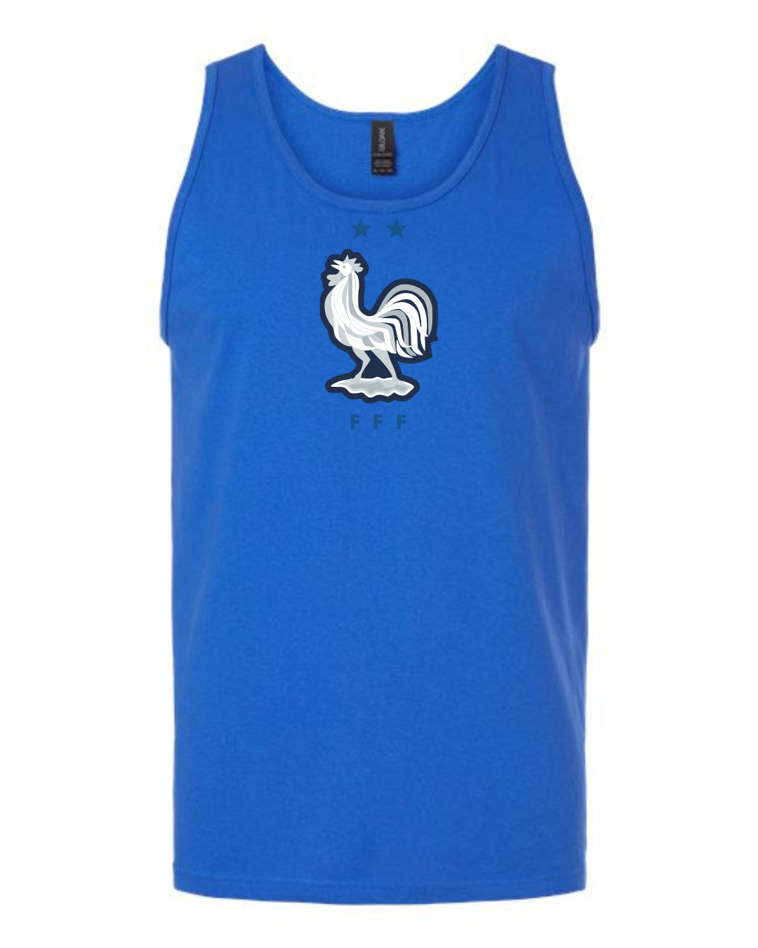 Show your pride for Les Bleus with our France FFF Rooster Emblem Men’s Tank Top. Featuring the iconic French Football Federation rooster, complete with two stars above and “FFF” below, this tank brings clean national football style to a comfortable everyday fit. Crafted from soft, breathable cotton-blend fabric, it’s perfect for match days, training sessions, or casual wear for true France supporters. Available in sizes S to 2XL.