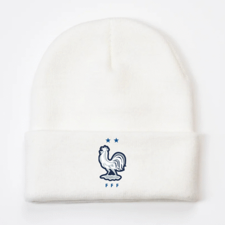 Stay warm while showing your support for Les Bleus with our France National Football Team Rooster Logo Knit Beanie. Featuring the iconic FFF rooster emblem embroidered on the front, this beanie delivers a sleek, sporty look perfect for true fans of the French national team. Crafted from soft knit fabric, it provides lasting warmth and comfort — ideal for match days, winter outings, or everyday casual wear.