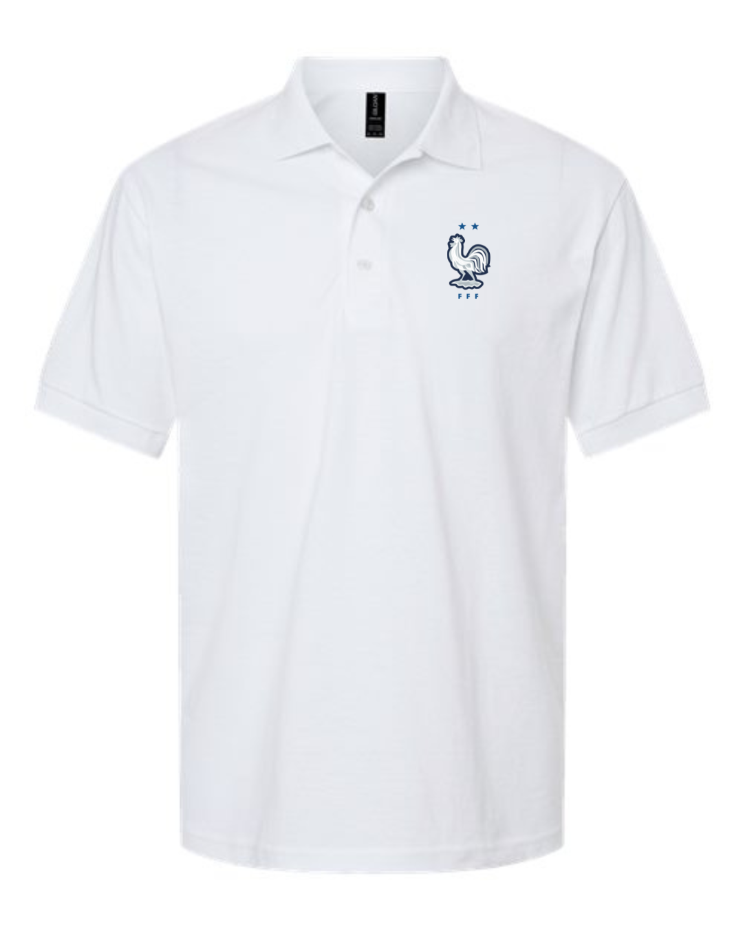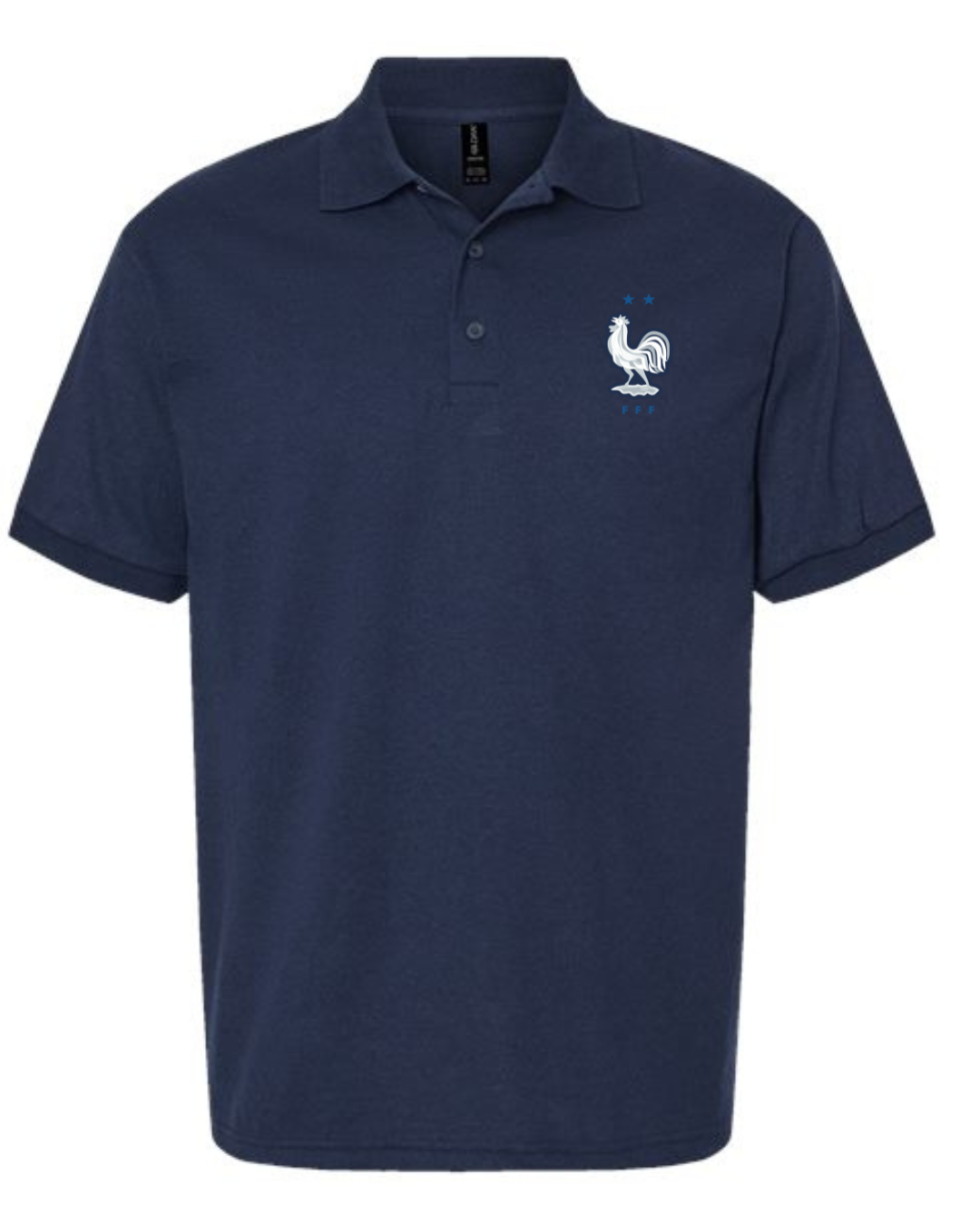 Show your support for Les Bleus with the France National Football Team Rooster Logo Men’s Polo Shirt. Featuring the classic rooster emblem with stars above it, this polo delivers a clean and stylish way to represent French football pride. Perfect for match days, fan gatherings, or everyday casual wear, it blends comfort, tradition, and national spirit.