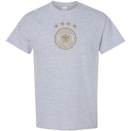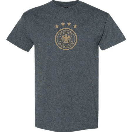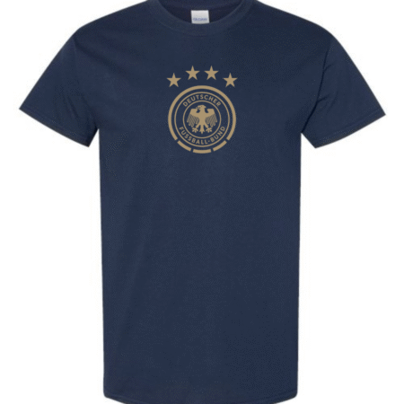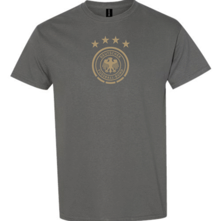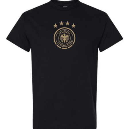 Back Die Mannschaft in style with the Germany DFB Eagle Crest Men’s T-Shirt. Featuring the classic federation eagle within a circular badge topped by four championship stars, this tee blends clean football aesthetics with everyday comfort perfect for match days, training, or casual wear.
