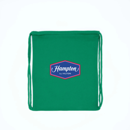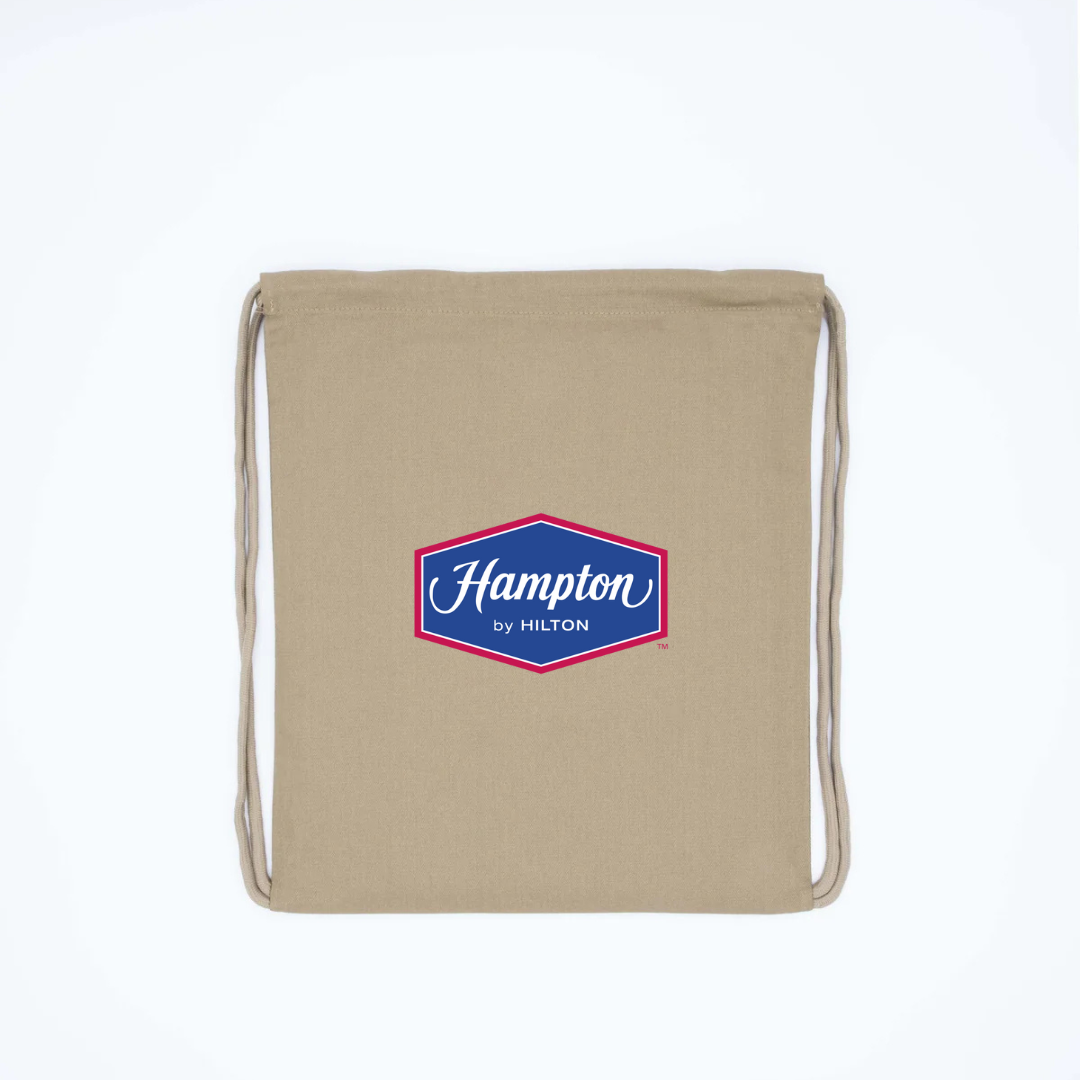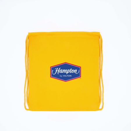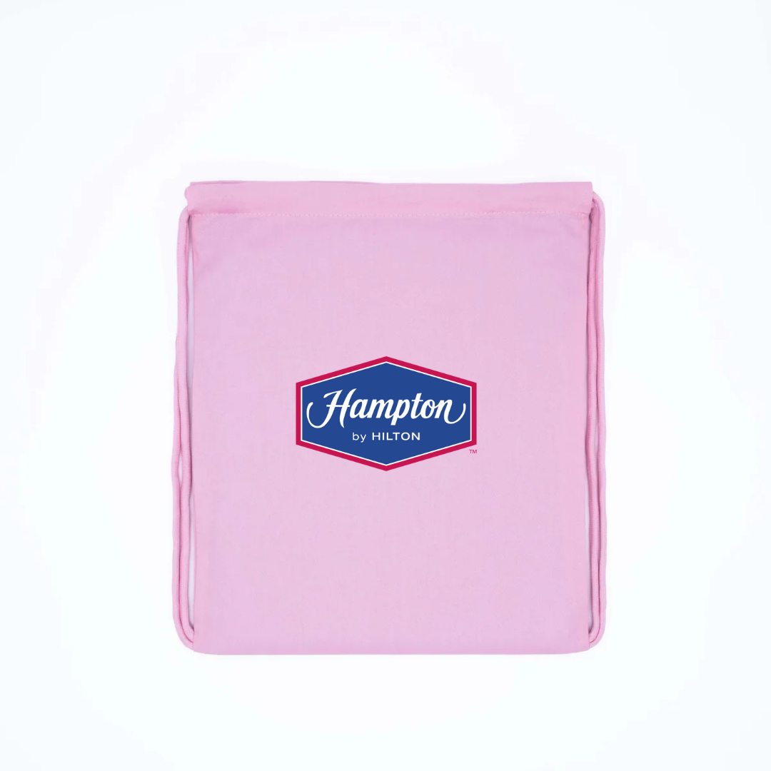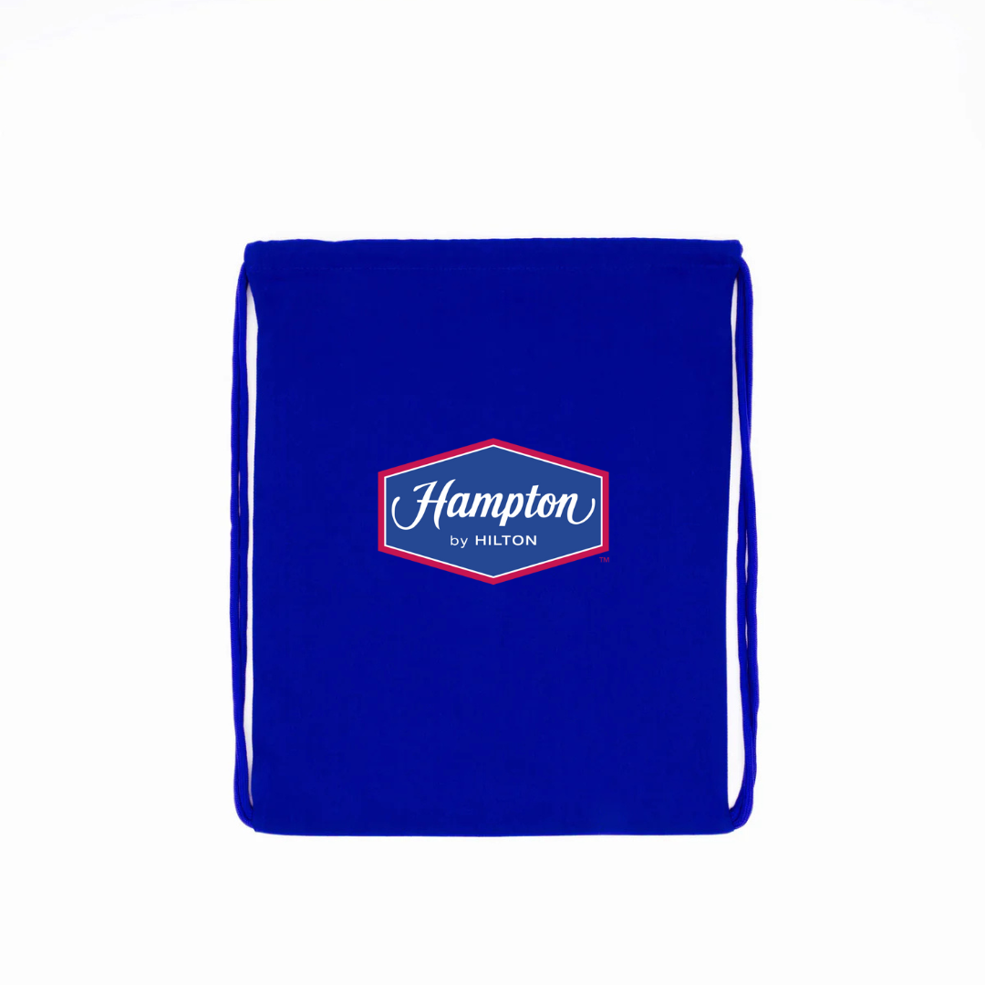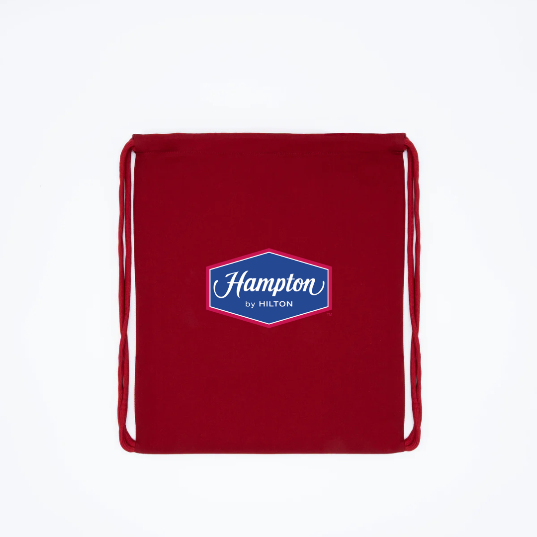 Travel light with the Hampton by Hilton Logo Drawstring Backpack. Featuring the signature Hampton by Hilton emblem, this lightweight and durable bag is perfect for everyday use, gym sessions, or casual outings. Its convenient drawstring closure ensures easy access while keeping your essentials secure, making it a stylish and functional choice for hotel guests and brand fans alike.